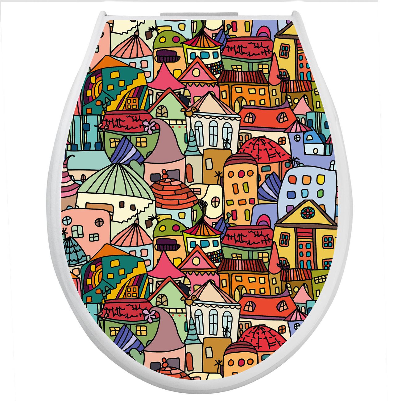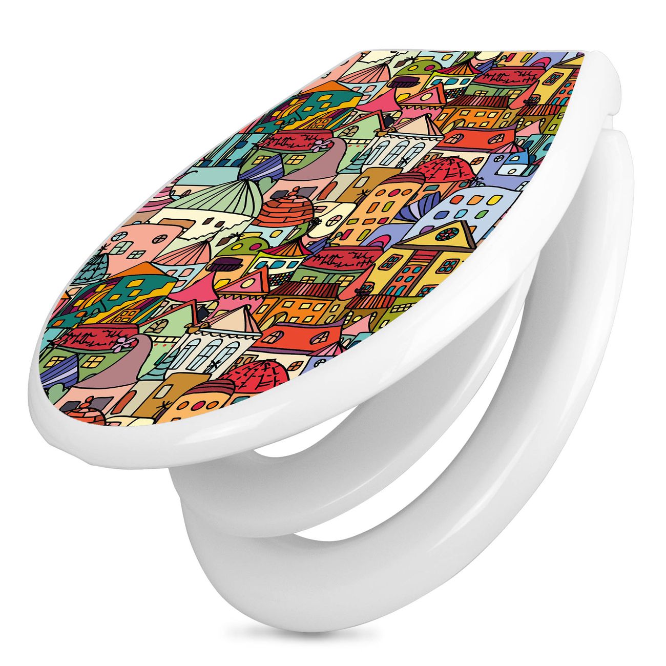 Toilettendeckel weiß mit Absenkautomatik Motiv Funky Town