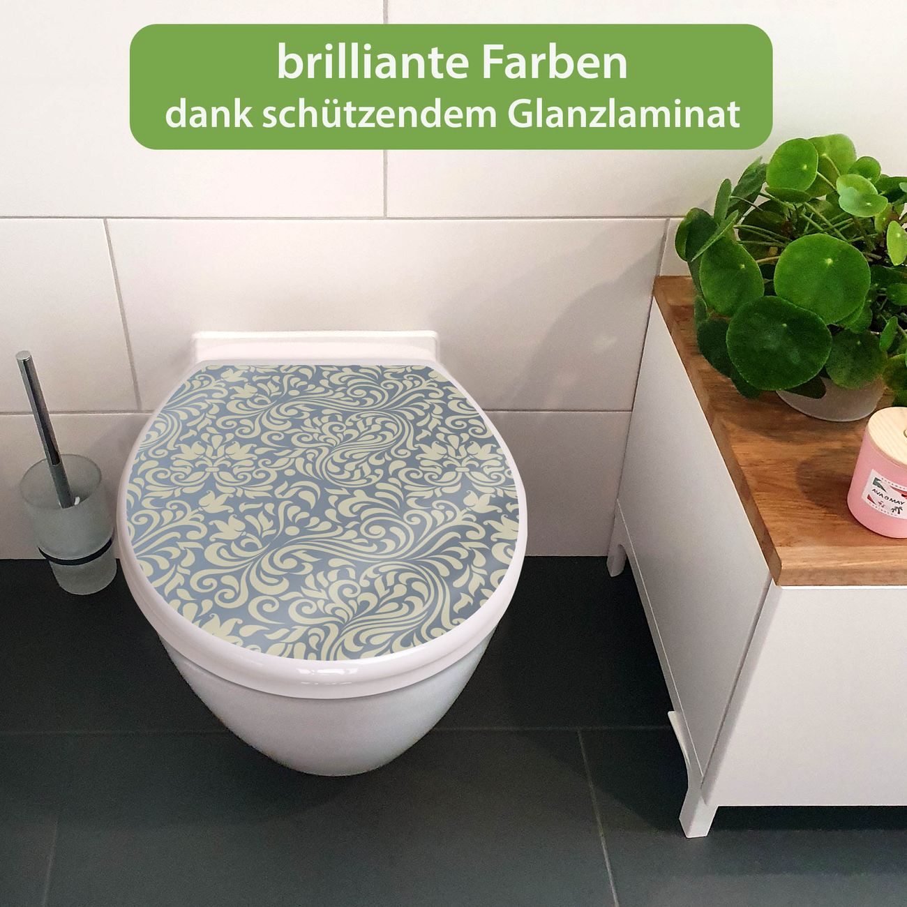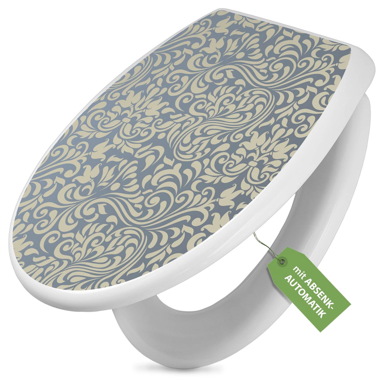 Toilettendeckel weiß mit Absenkautomatik Motiv Blaues Ornament