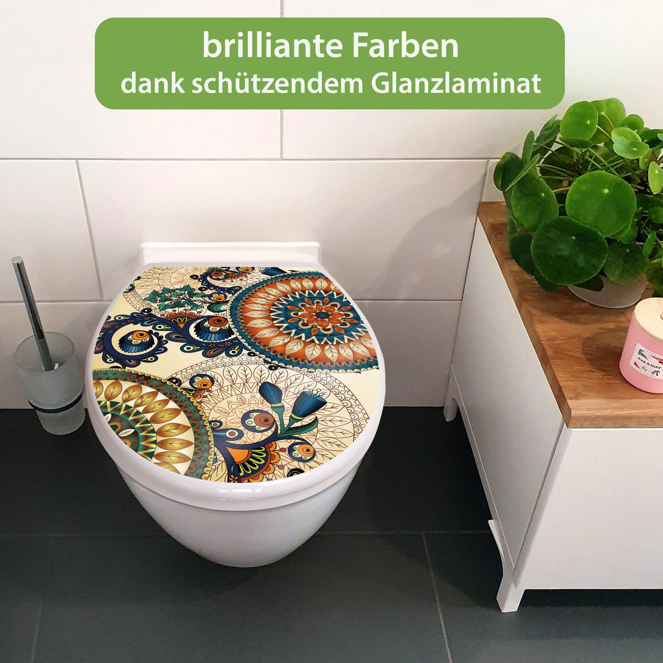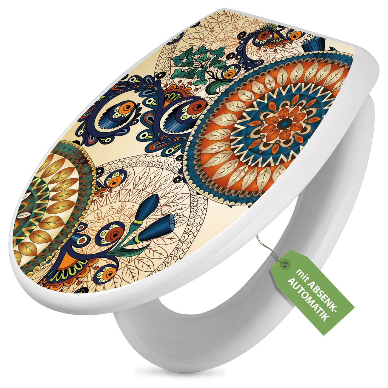Toilettendeckel weiß mit Absenkautomatik Motiv Modernes Mandala