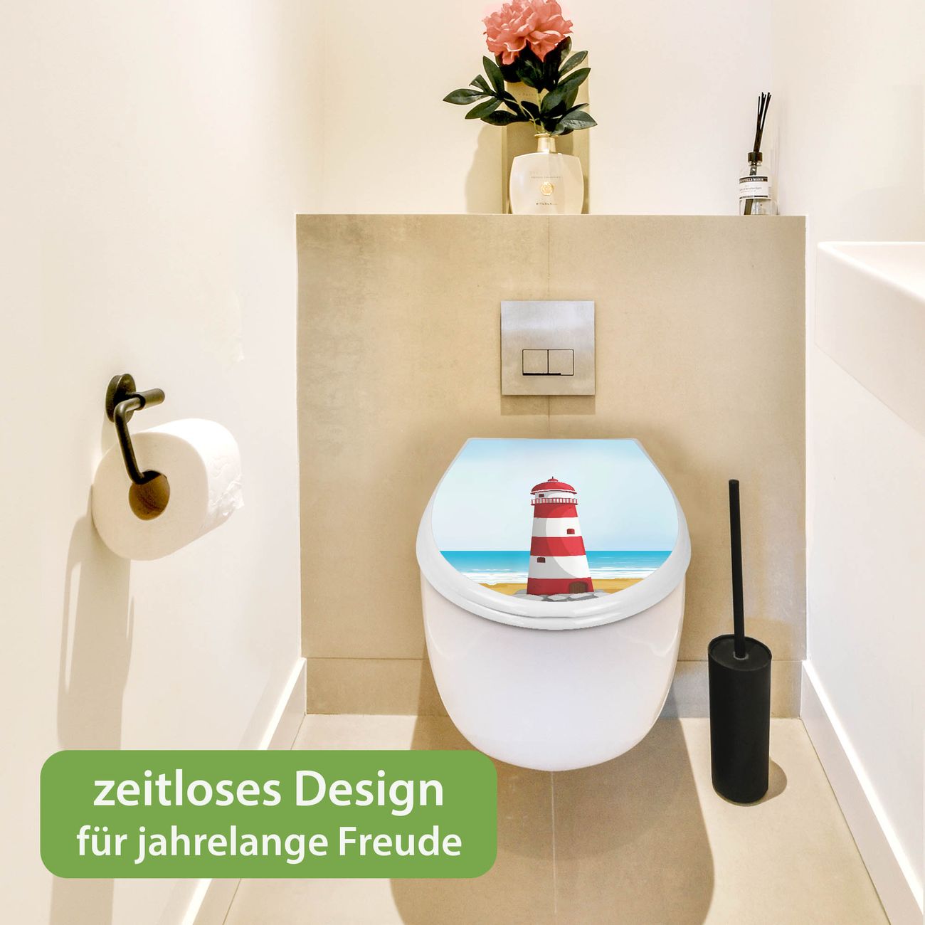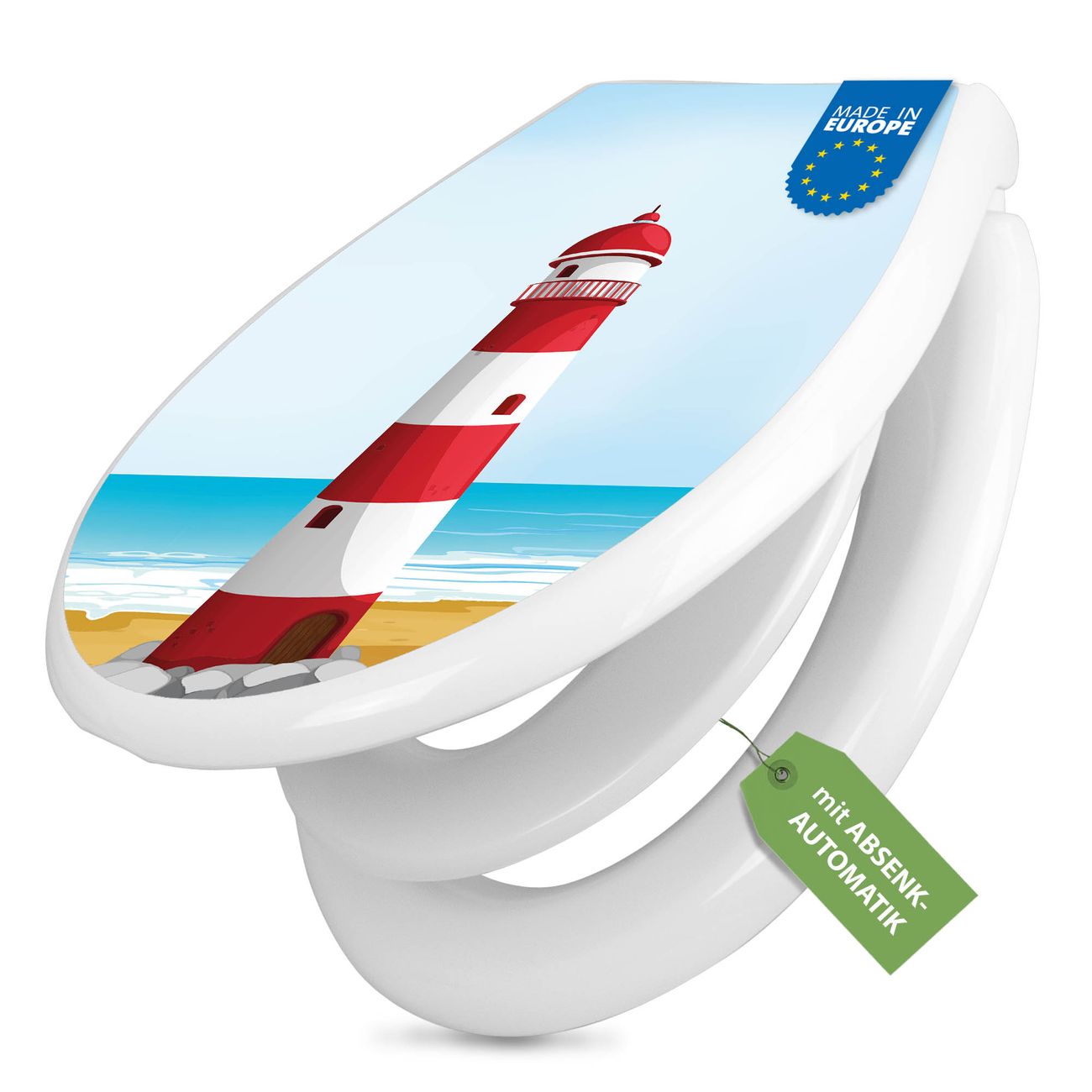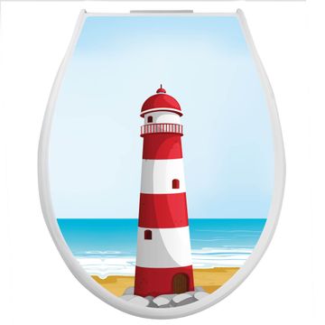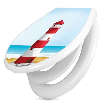 Toilettendeckel weiß mit Absenkautomatik Motiv Leuchtturm Illustration
