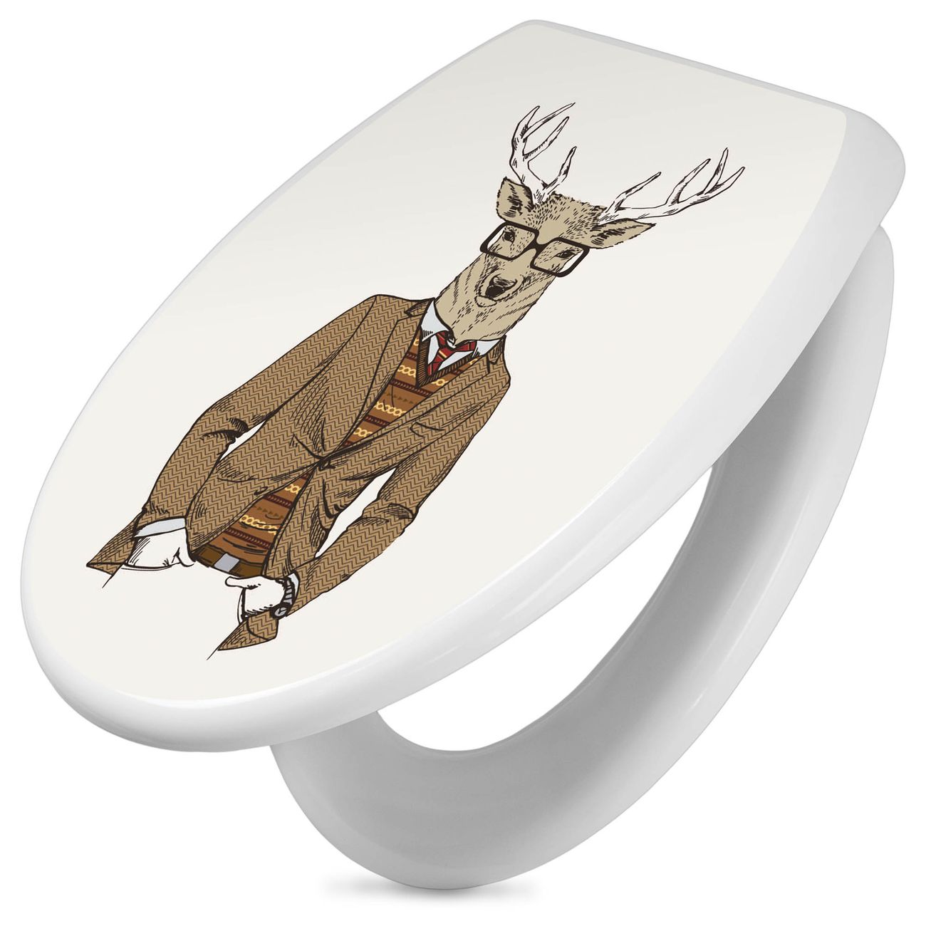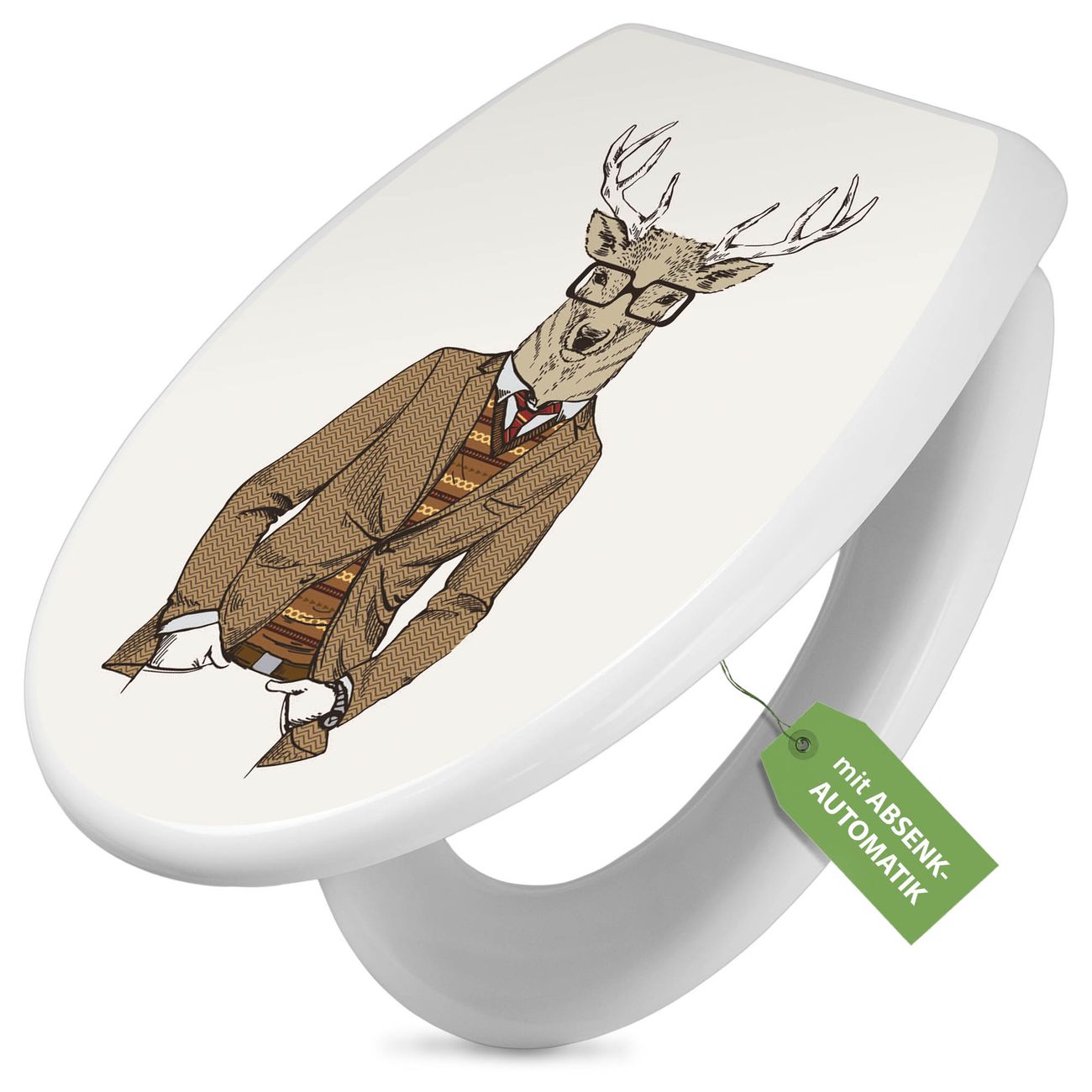Toilettendeckel weiß mit Absenkautomatik Motiv Doktor Hirsch