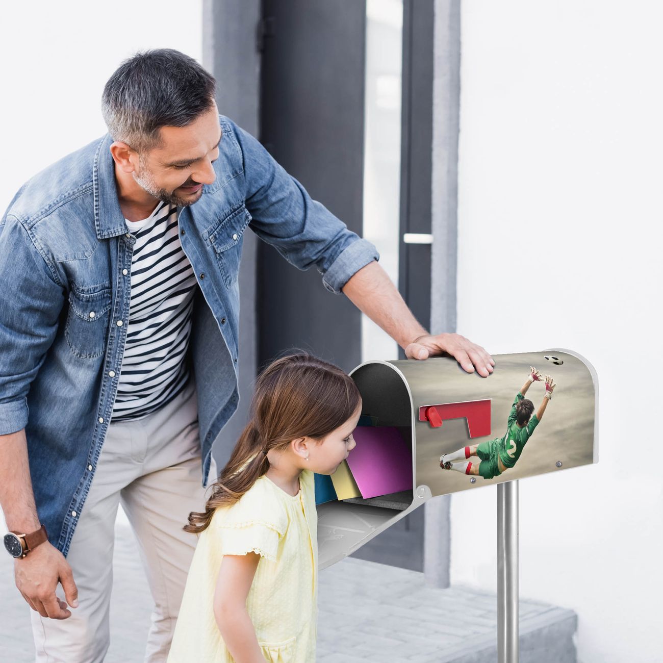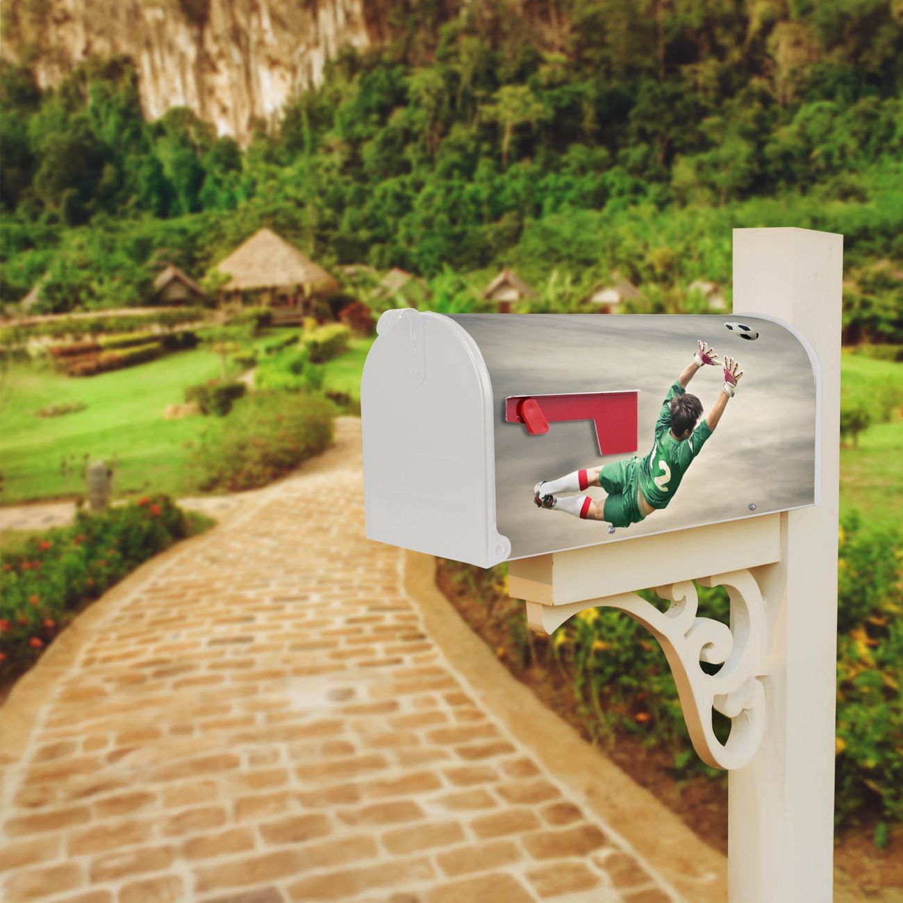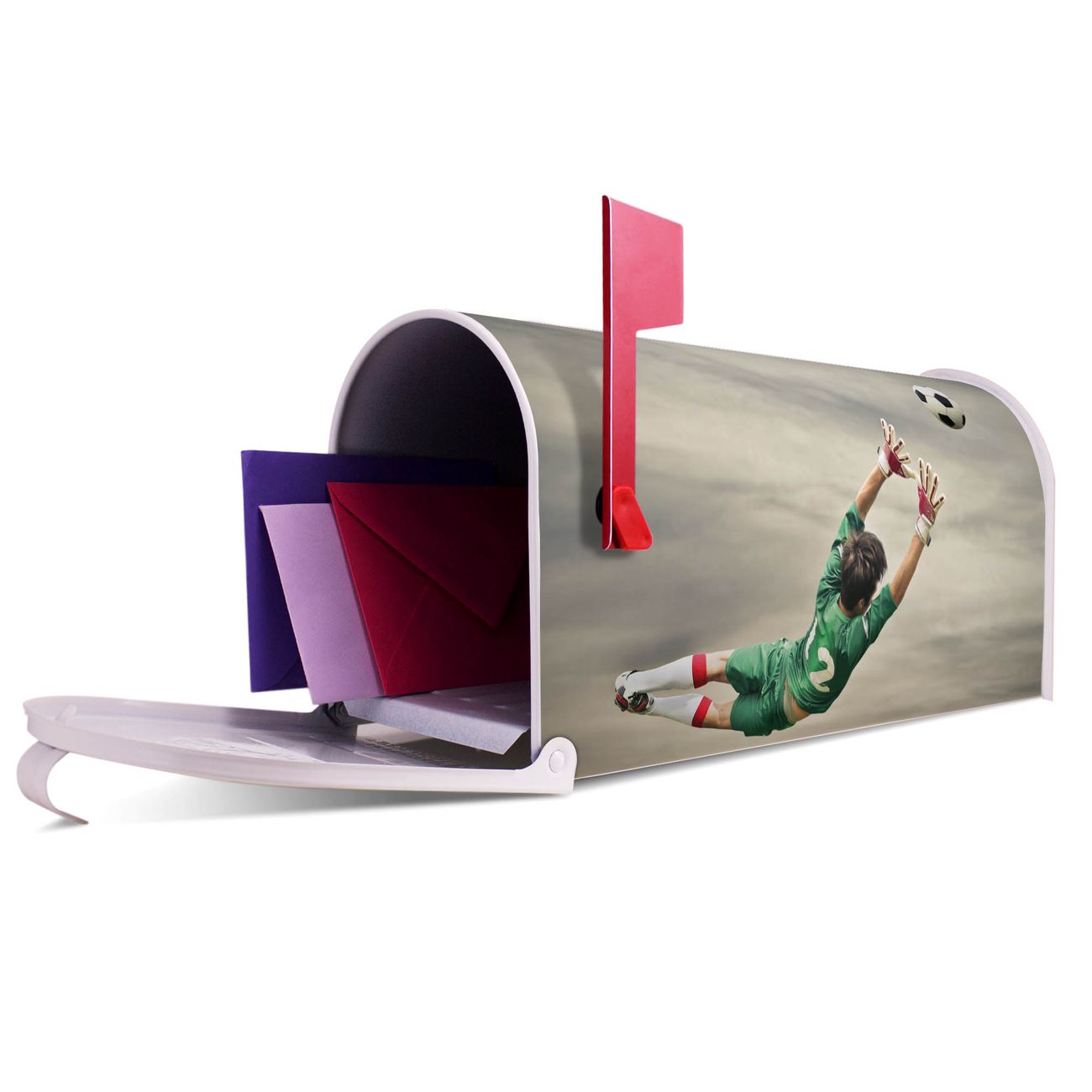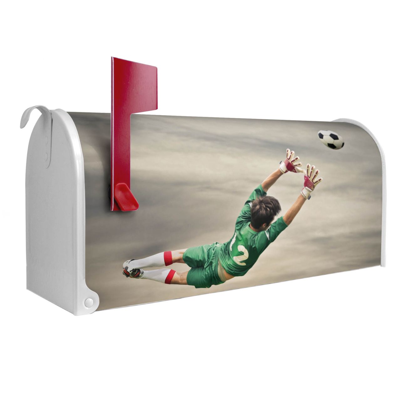 Unser amerikanischer Briefkasten mit dem Motiv Abgewehrt hat ein sehr ansprechendes und ausgefallenes Design, ist in der Grundfarbe weiß, grün oder schwarz erhältlich. Damit entlocken Sie Ihren Nachbarn und dem Postboten immer wieder ein Lächeln. Die Mailbox ist ein Original Import aus Mississippi USA und wird von unserer kleinen Manufaktur in Sachsen von Hand veredelt. Die US-Mailbox bietet ausreichend Platz auch für große Sendungen, eine Fahne die Ihnen Post anzeigt, wetterfestes und äußerst stabiles Material - so macht Post empfangen Freude.