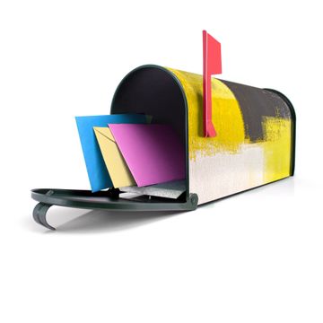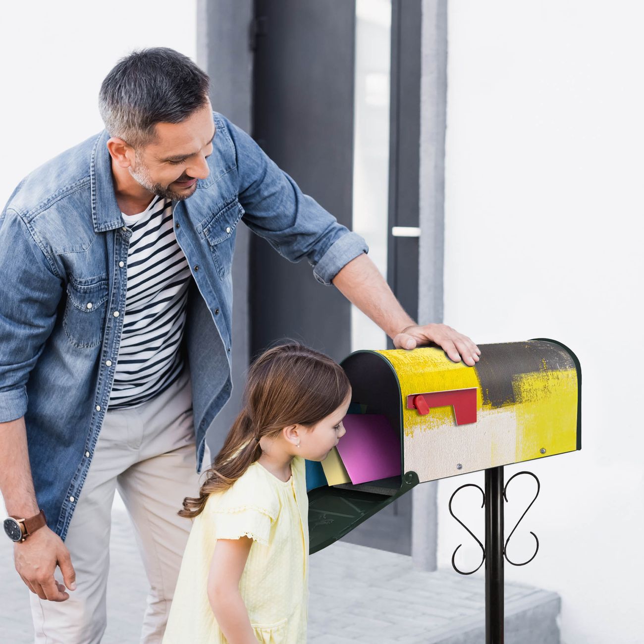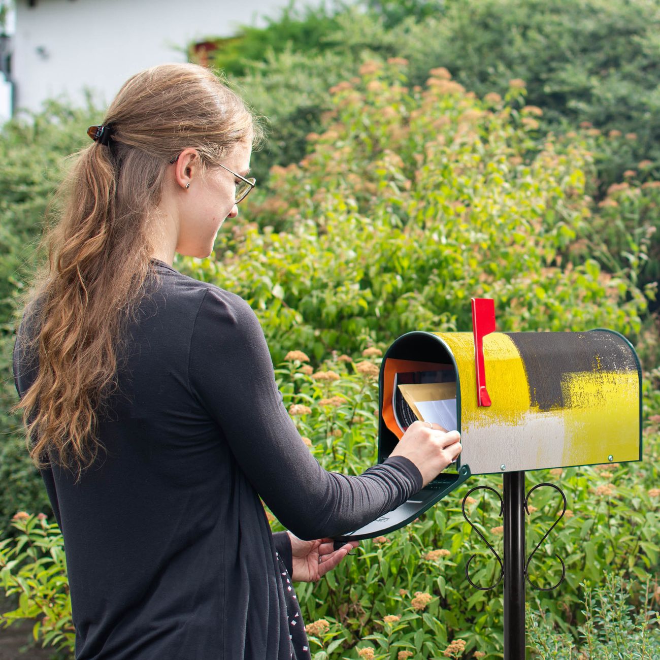 Unser amerikanischer Briefkasten mit dem Motiv Abstrakt Gelb hat ein sehr ansprechendes und ausgefallenes Design, ist in der Grundfarbe weiß, grün oder schwarz erhältlich. Damit entlocken Sie Ihren Nachbarn und dem Postboten immer wieder ein Lächeln. Die Mailbox ist ein Original Import aus Mississippi USA und wird von unserer kleinen Manufaktur in Sachsen von Hand veredelt. Die US-Mailbox bietet ausreichend Platz auch für große Sendungen, eine Fahne die Ihnen Post anzeigt, wetterfestes und äußerst stabiles Material - so macht Post empfangen Freude.