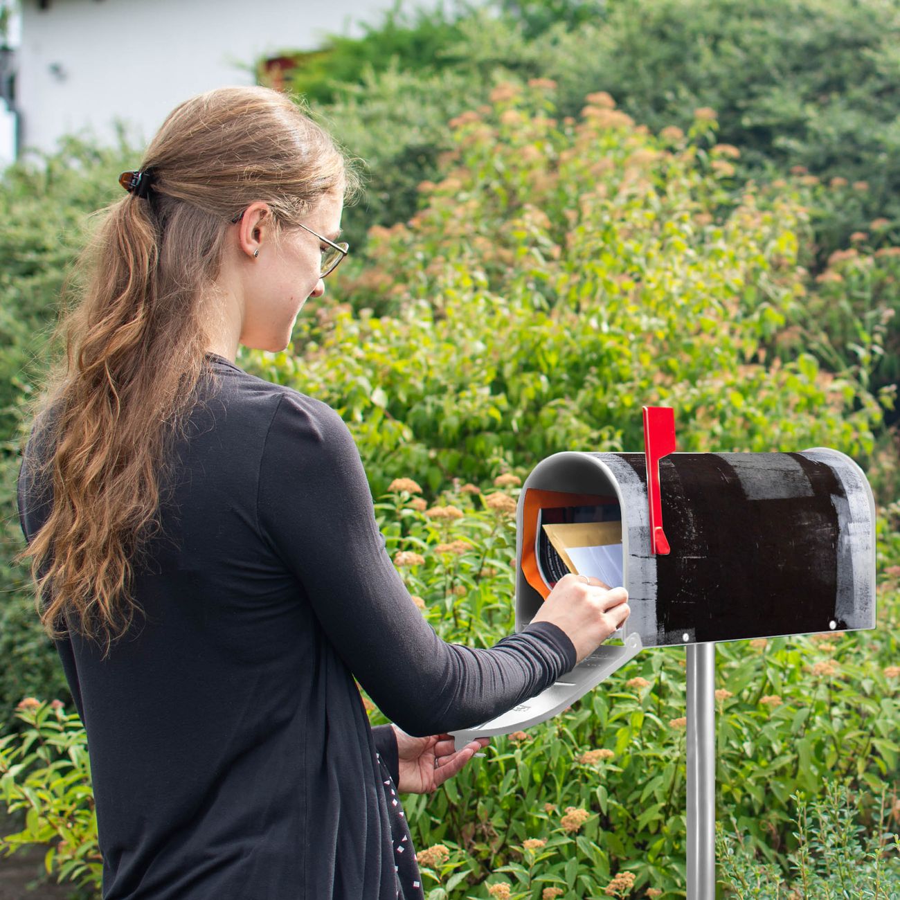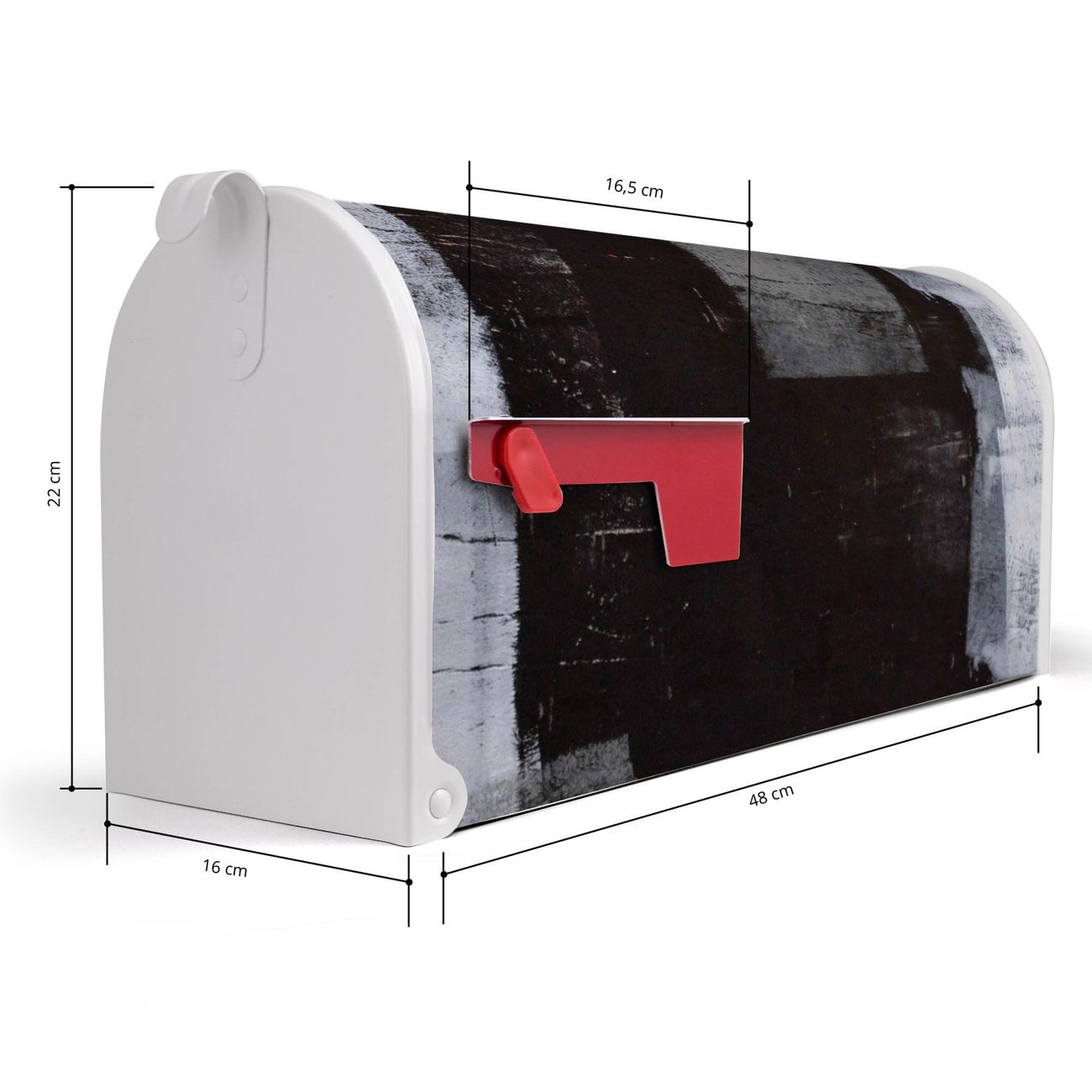 Der amerikanische Briefkasten von banjado mit Abstrakt Rot Motiv bietet Ihnen ausreichend Fassungsvermögen, um große A4 Sendungen und Zeitschriften zu empfangen. Die typisch amerikanische rote Fahne zeigt Ihnen an, wenn Sie Post erhalten haben. Die US-Mailbox besteht aus verzinktem Stahlblech welches lackiert wurde und ist 48 x 22 x 16 CM (BxHxT) groß. Die Folie mit Motiv Abstrakt Rot besteht aus einer wetter- und UV-resistenten Folie, die mit einem Schutzlaminat überzogen ist, sodass die US Mailbox zusätzlich vor Kratzern geschützt ist. An der Unterkante sind 4 Löcher je Seite um die Mailbox, typisch amerikanisch, an einem Holzpfahl oder einem Zaun zu befestigen. Auf Wunsch können Sie bei uns den passenden Standfuß oder die passende Wandhalterung kaufen um die US-Mailbox sicher zu befestigen. Wir bieten Ihnen ebenfalls Namensschilder, bereits beschriftet oder frei zu beschriften, und verschiedene selbst gestaltete Bitte-Keine-Werbung-Aufkleber.
