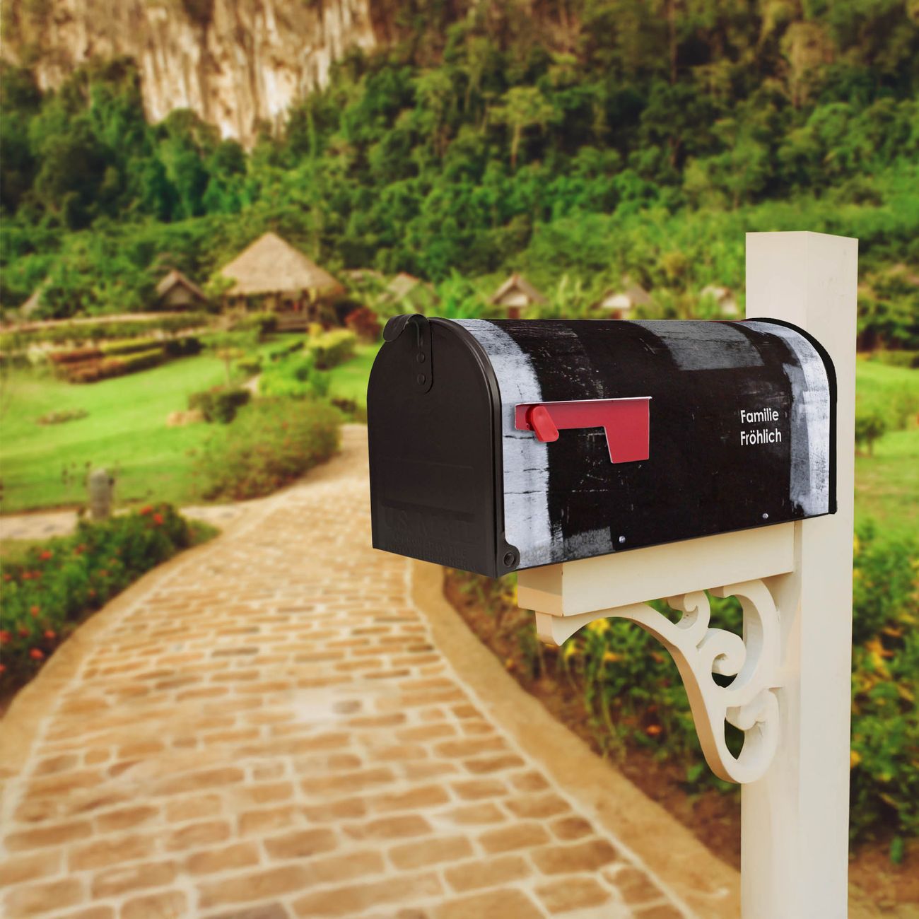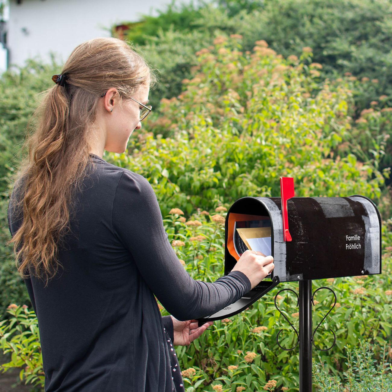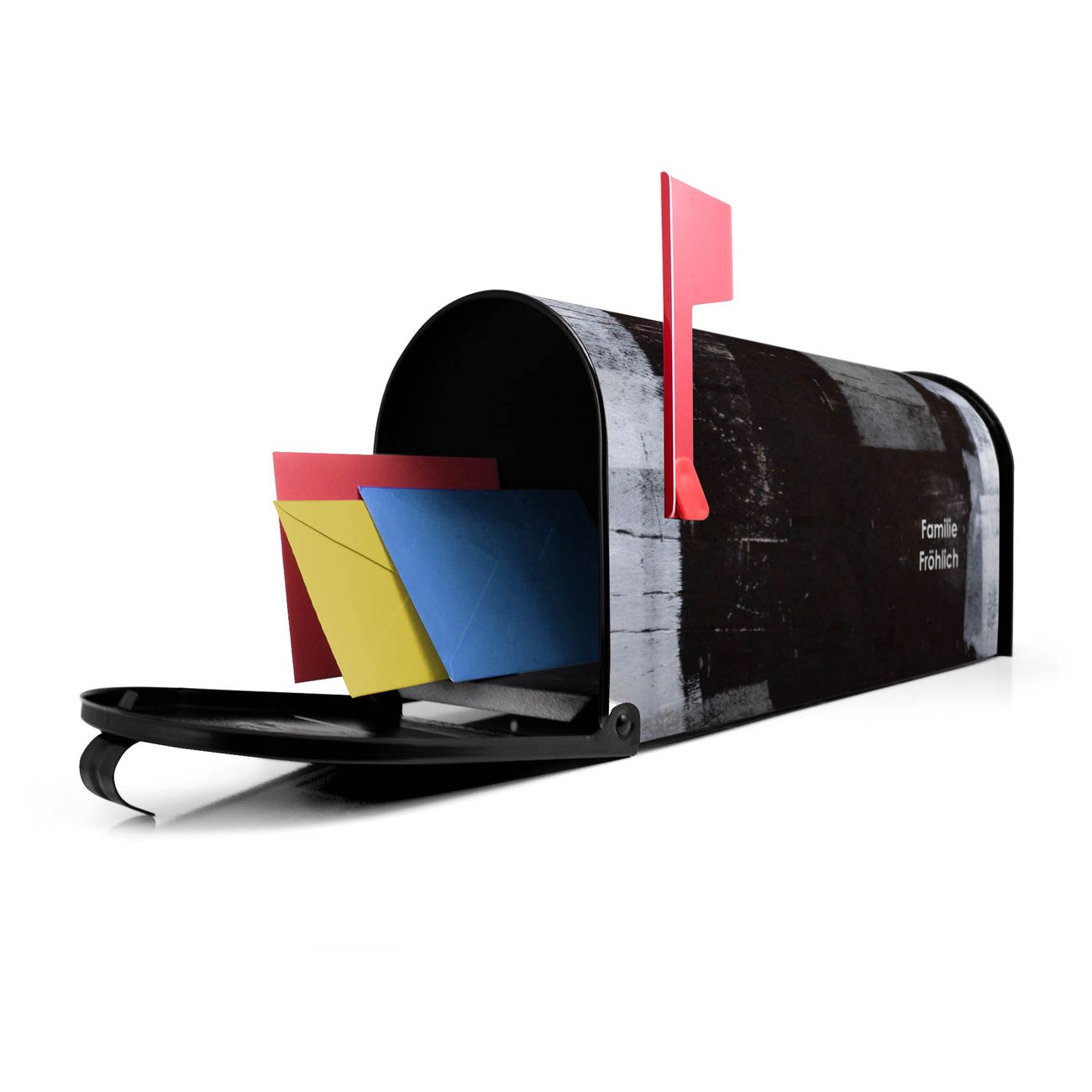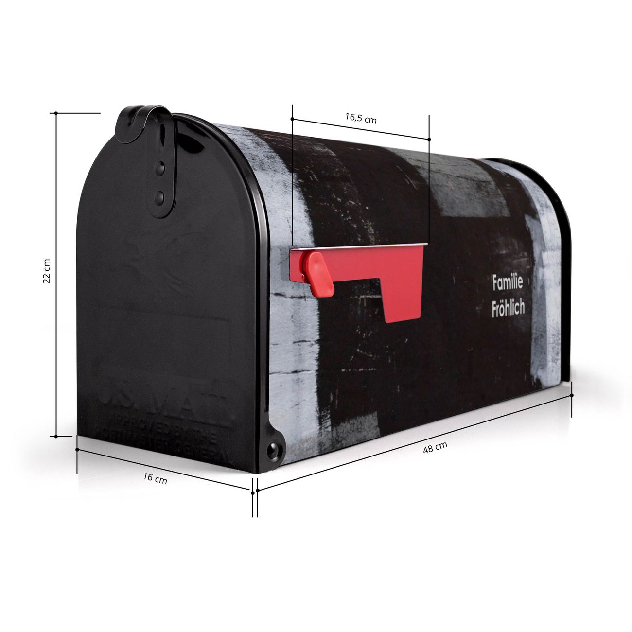 Der amerikanische Briefkasten von banjado mit Abstrakt Rot Motiv bietet Ihnen ausreichend Fassungsvermögen, um große A4 Sendungen und Zeitschriften zu empfangen. Die typisch amerikanische rote Fahne zeigt Ihnen an, wenn Sie Post erhalten haben. Die US-Mailbox besteht aus verzinktem Stahlblech welches lackiert wurde und ist 48 x 22 x 16 CM (BxHxT) groß. Die Folie mit Motiv Abstrakt Rot besteht aus einer wetter- und UV-resistenten Folie, die mit einem Schutzlaminat überzogen ist, sodass die US Mailbox zusätzlich vor Kratzern geschützt ist. An der Unterkante sind 4 Löcher je Seite um die Mailbox, typisch amerikanisch, an einem Holzpfahl oder einem Zaun zu befestigen. Auf Wunsch können Sie bei uns den passenden Standfuß oder die passende Wandhalterung kaufen um die US-Mailbox sicher zu befestigen. Wir bieten Ihnen ebenfalls Namensschilder, bereits beschriftet oder frei zu beschriften, und verschiedene selbst gestaltete Bitte-Keine-Werbung-Aufkleber.