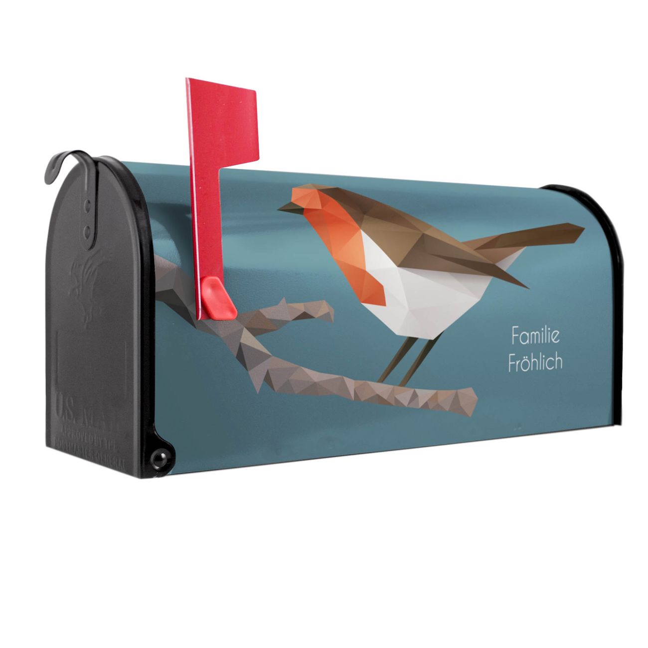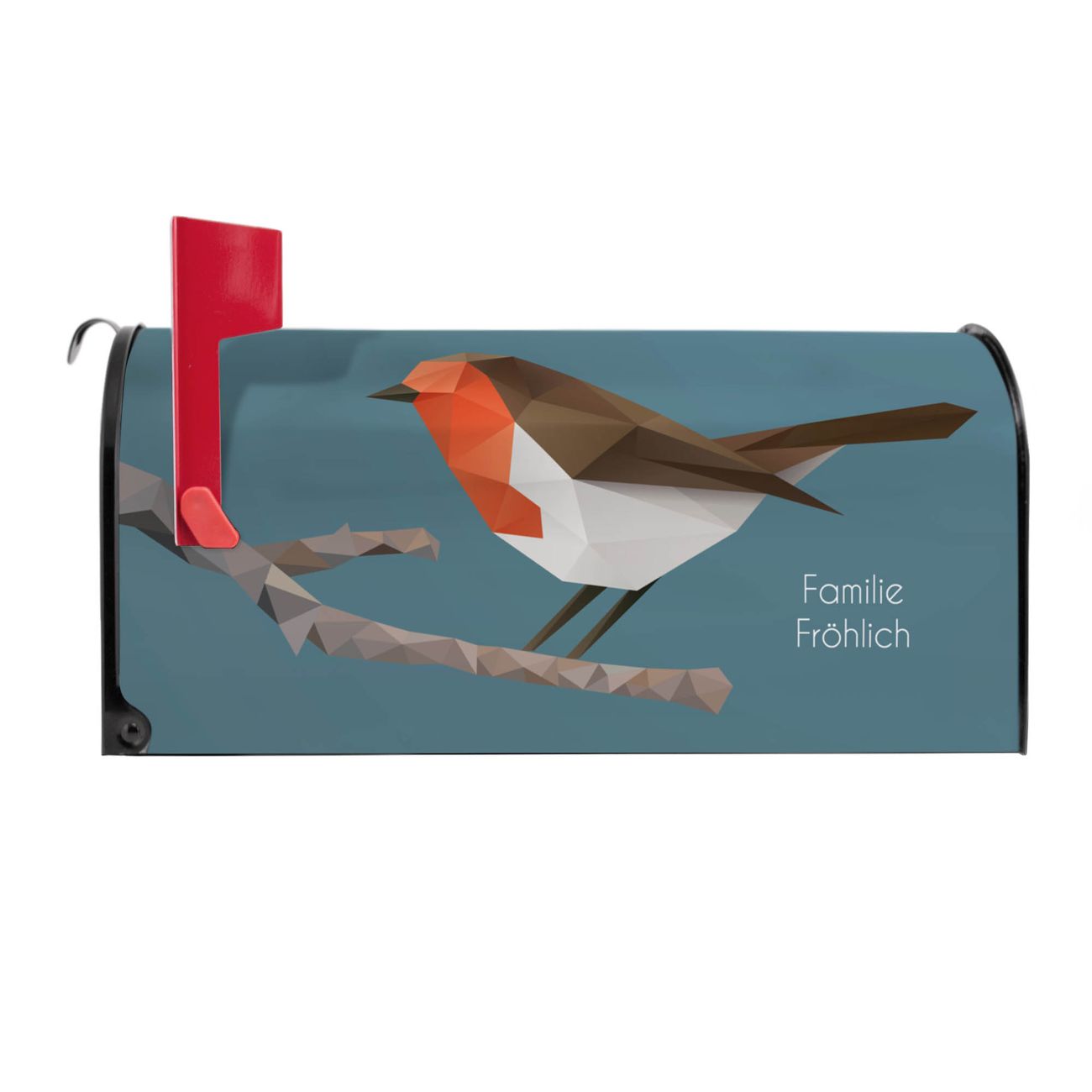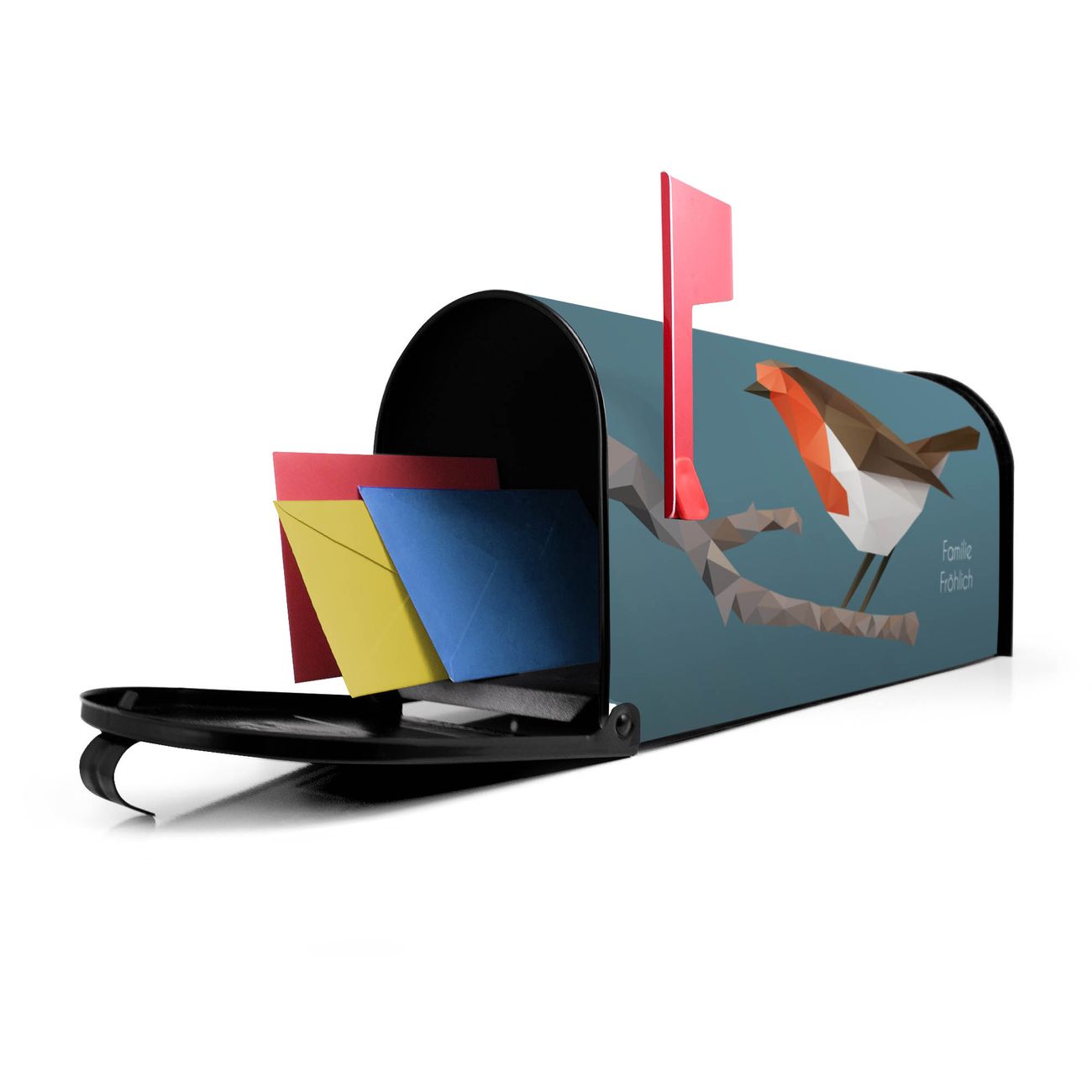 Der amerikanische Briefkasten von banjado mit abstrakter Vogel Motiv bietet Ihnen ausreichend Fassungsvermögen, um große A4 Sendungen und Zeitschriften zu empfangen. Die typisch amerikanische rote Fahne zeigt Ihnen an, wenn Sie Post erhalten haben. Die US-Mailbox besteht aus verzinktem Stahlblech welches lackiert wurde und ist 48 x 22 x 16 CM (BxHxT) groß. Die Folie mit Motiv abstrakter Vogel besteht aus einer wetter- und UV-resistenten Folie, die mit einem Schutzlaminat überzogen ist, sodass die US Mailbox zusätzlich vor Kratzern geschützt ist. An der Unterkante sind 4 Löcher je Seite um die Mailbox, typisch amerikanisch, an einem Holzpfahl oder einem Zaun zu befestigen. Auf Wunsch können Sie bei uns den passenden Standfuß oder die passende Wandhalterung kaufen um die US-Mailbox sicher zu befestigen. Wir bieten Ihnen ebenfalls Namensschilder, bereits beschriftet oder frei zu beschriften, und verschiedene selbst gestaltete Bitte-Keine-Werbung-Aufkleber.