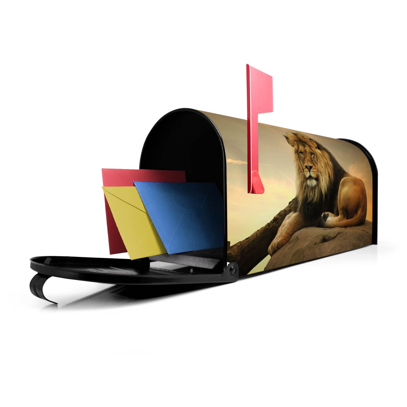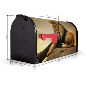 Der amerikanische Briefkasten von banjado mit Adrian Motiv bietet Ihnen ausreichend Fassungsvermögen, um große A4 Sendungen und Zeitschriften zu empfangen. Die typisch amerikanische rote Fahne zeigt Ihnen an, wenn Sie Post erhalten haben. Die US-Mailbox besteht aus verzinktem Stahlblech welches lackiert wurde und ist 48 x 22 x 16 CM (BxHxT) groß. Die Folie mit Motiv Adrian besteht aus einer wetter- und UV-resistenten Folie, die mit einem Schutzlaminat überzogen ist, sodass die US Mailbox zusätzlich vor Kratzern geschützt ist. An der Unterkante sind 4 Löcher je Seite um die Mailbox, typisch amerikanisch, an einem Holzpfahl oder einem Zaun zu befestigen. Auf Wunsch können Sie bei uns den passenden Standfuß oder die passende Wandhalterung kaufen um die US-Mailbox sicher zu befestigen. Wir bieten Ihnen ebenfalls Namensschilder, bereits beschriftet oder frei zu beschriften, und verschiedene selbst gestaltete Bitte-Keine-Werbung-Aufkleber.
