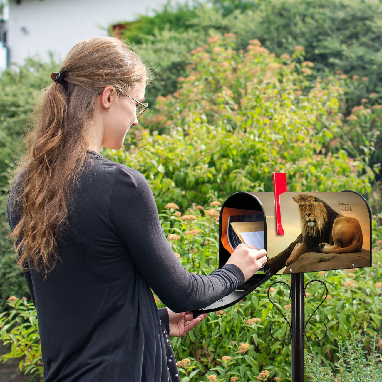 Unser amerikanischer Briefkasten mit dem Motiv Adrian hat ein sehr ansprechendes und ausgefallenes Design, ist in der Grundfarbe weiß, grün oder schwarz erhältlich. Damit entlocken Sie Ihren Nachbarn und dem Postboten immer wieder ein Lächeln. Die Mailbox ist ein Original Import aus Mississippi USA und wird von unserer kleinen Manufaktur in Sachsen von Hand veredelt. Die US-Mailbox bietet ausreichend Platz auch für große Sendungen, eine Fahne die Ihnen Post anzeigt, wetterfestes und äußerst stabiles Material - so macht Post empfangen Freude.