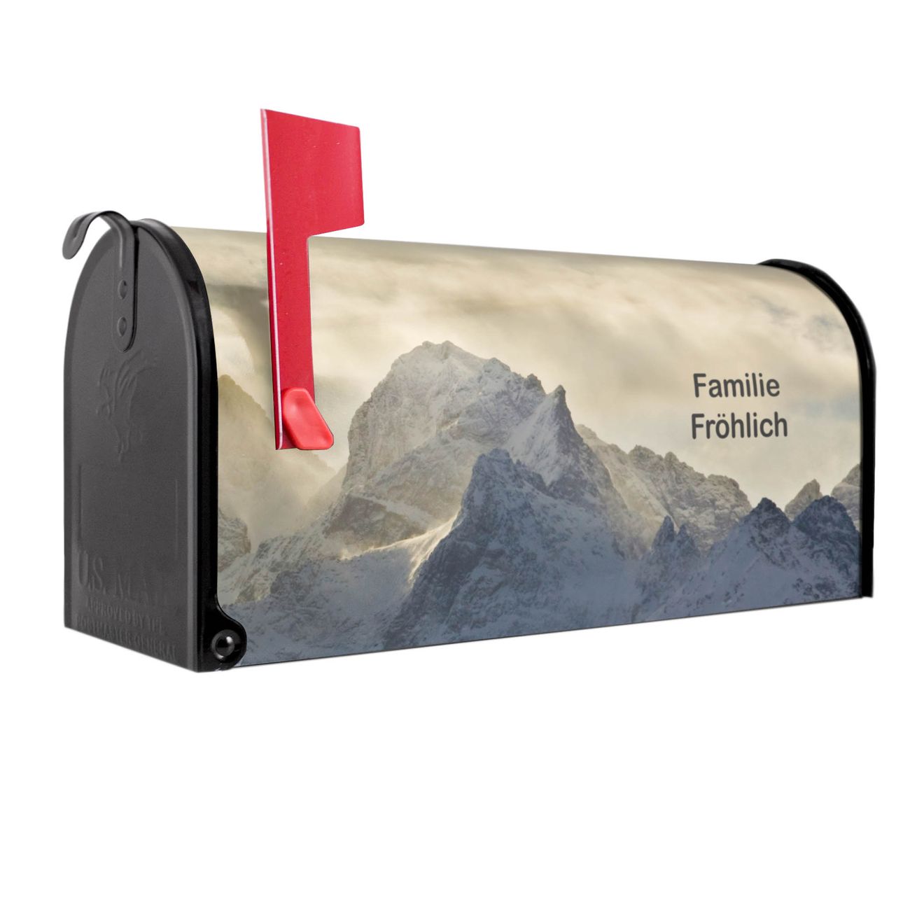 Unser amerikanischer Briefkasten mit dem Motiv Alpen im Sonnenschein hat ein sehr ansprechendes und ausgefallenes Design, ist in der Grundfarbe weiß, grün oder schwarz erhältlich. Damit entlocken Sie Ihren Nachbarn und dem Postboten immer wieder ein Lächeln. Die Mailbox ist ein Original Import aus Mississippi USA und wird von unserer kleinen Manufaktur in Sachsen von Hand veredelt. Die US-Mailbox bietet ausreichend Platz auch für große Sendungen, eine Fahne die Ihnen Post anzeigt, wetterfestes und äußerst stabiles Material - so macht Post empfangen Freude.