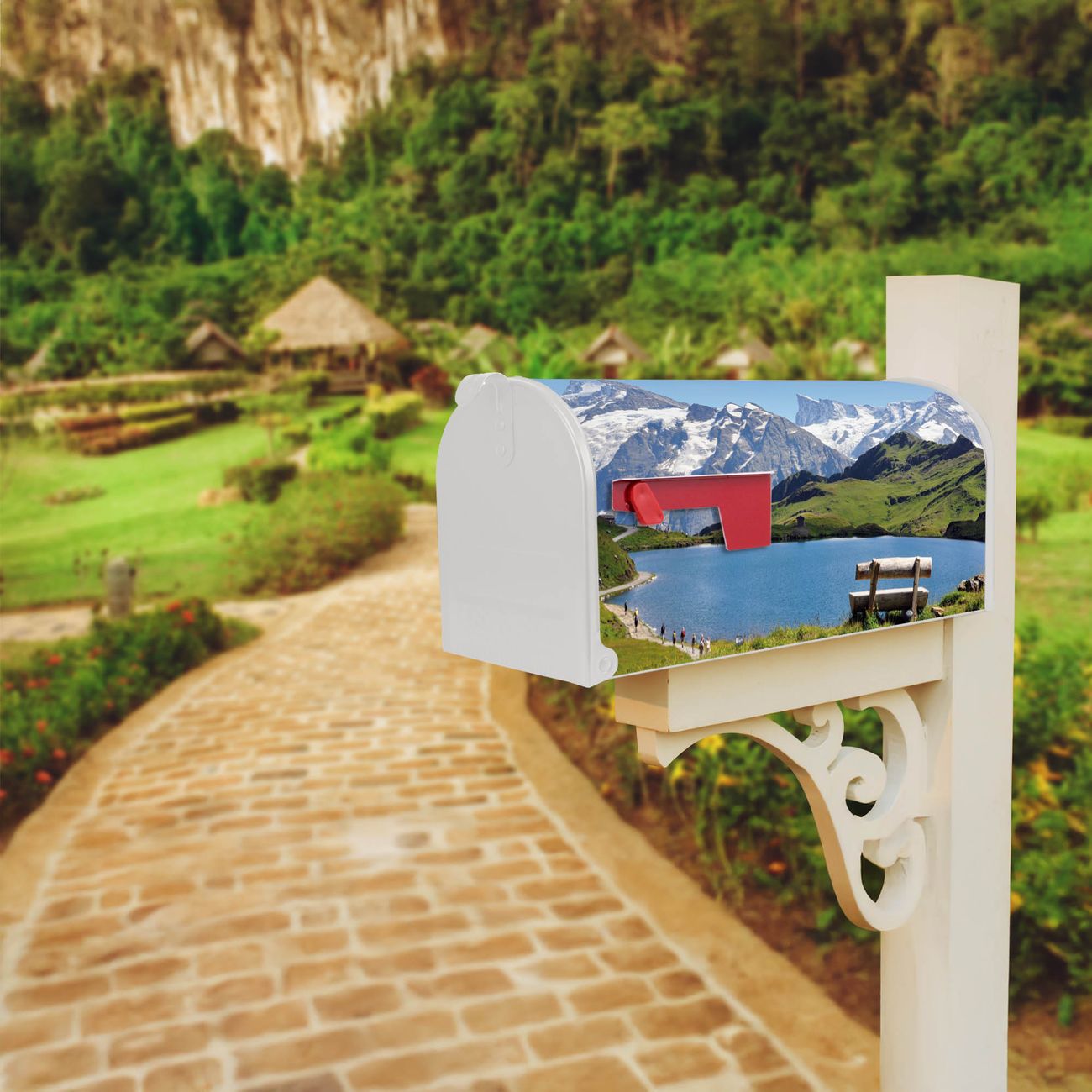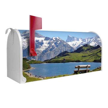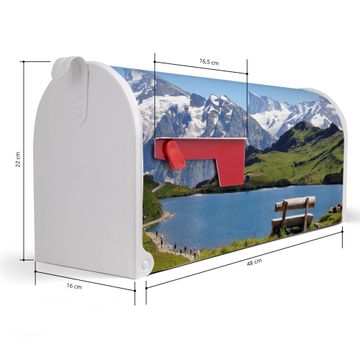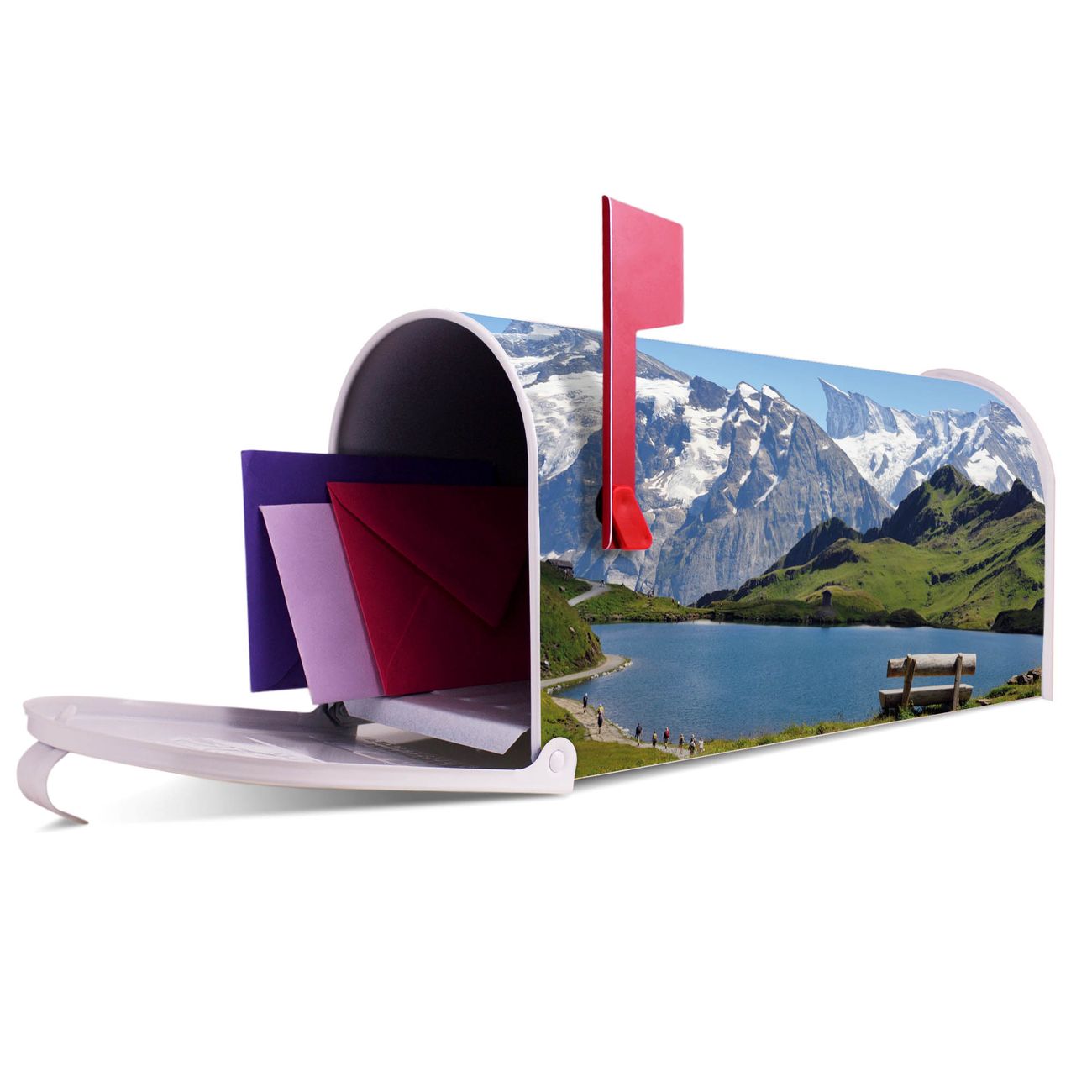 Der amerikanische Briefkasten von banjado mit Alpen Motiv bietet Ihnen ausreichend Fassungsvermögen, um große A4 Sendungen und Zeitschriften zu empfangen. Die typisch amerikanische rote Fahne zeigt Ihnen an, wenn Sie Post erhalten haben. Die US-Mailbox besteht aus verzinktem Stahlblech welches lackiert wurde und ist 48 x 22 x 16 CM (BxHxT) groß. Die Folie mit Motiv Alpen besteht aus einer wetter- und UV-resistenten Folie, die mit einem Schutzlaminat überzogen ist, sodass die US Mailbox zusätzlich vor Kratzern geschützt ist. An der Unterkante sind 4 Löcher je Seite um die Mailbox, typisch amerikanisch, an einem Holzpfahl oder einem Zaun zu befestigen. Auf Wunsch können Sie bei uns den passenden Standfuß oder die passende Wandhalterung kaufen um die US-Mailbox sicher zu befestigen. Wir bieten Ihnen ebenfalls Namensschilder, bereits beschriftet oder frei zu beschriften, und verschiedene selbst gestaltete Bitte-Keine-Werbung-Aufkleber.