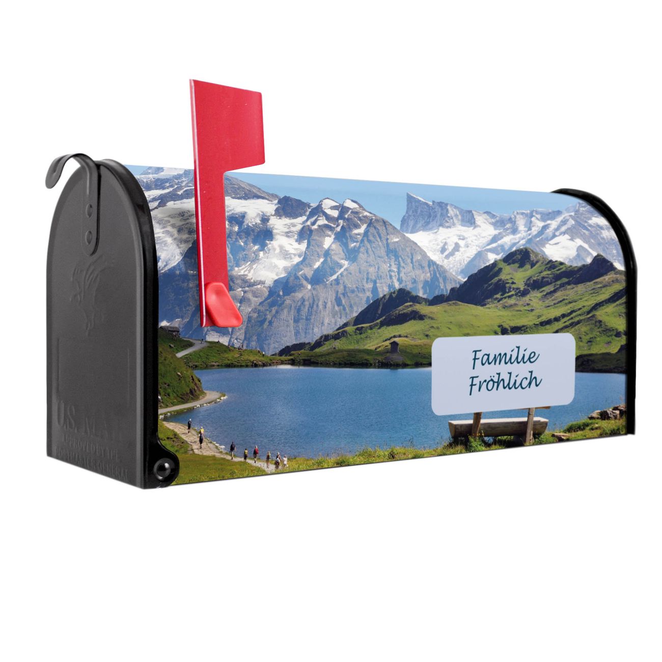 Unser amerikanischer Briefkasten mit dem Motiv Alpen hat ein sehr ansprechendes und ausgefallenes Design, ist in der Grundfarbe weiß, grün oder schwarz erhältlich. Damit entlocken Sie Ihren Nachbarn und dem Postboten immer wieder ein Lächeln. Die Mailbox ist ein Original Import aus Mississippi USA und wird von unserer kleinen Manufaktur in Sachsen von Hand veredelt. Die US-Mailbox bietet ausreichend Platz auch für große Sendungen, eine Fahne die Ihnen Post anzeigt, wetterfestes und äußerst stabiles Material - so macht Post empfangen Freude.