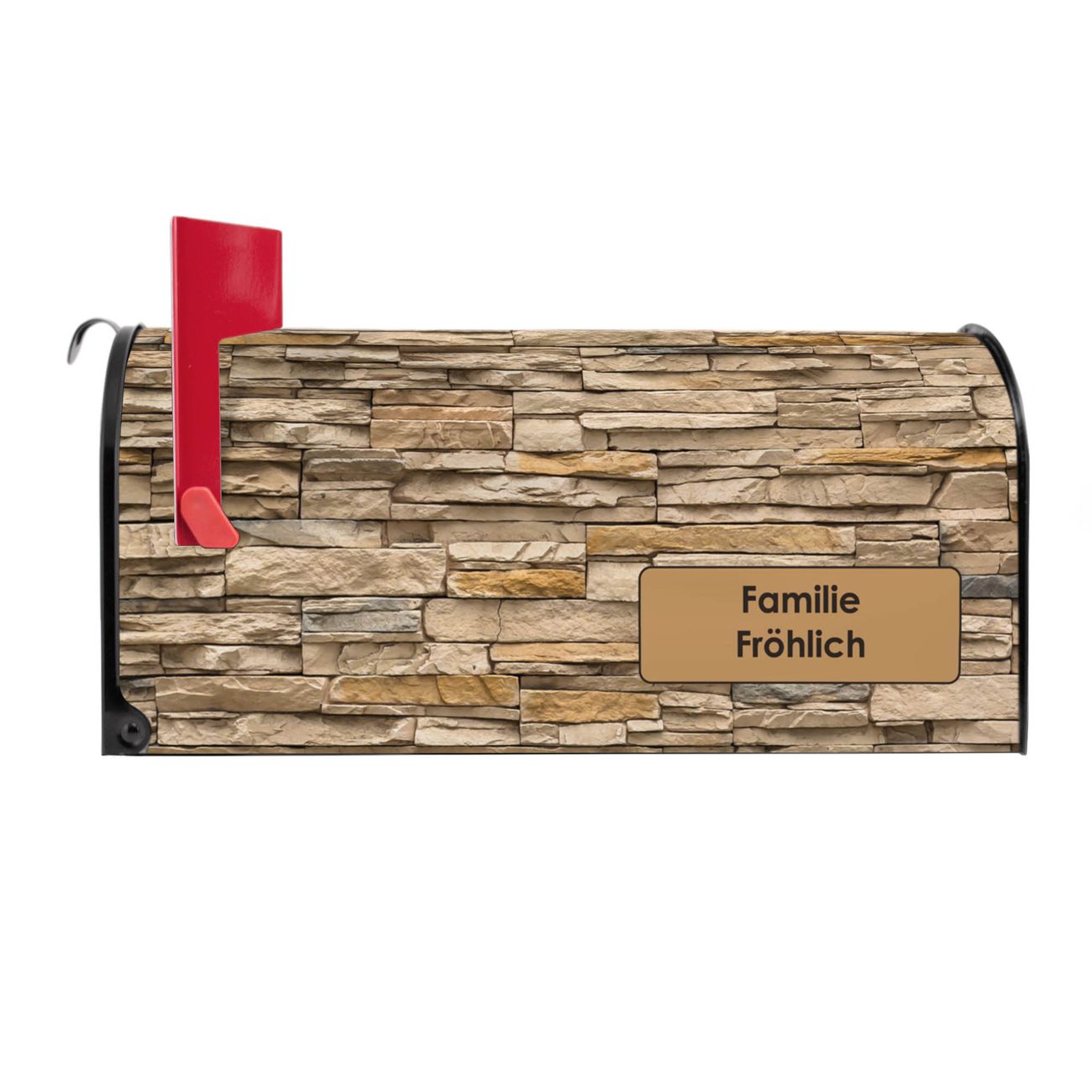 Der amerikanische Briefkasten von banjado mit Alte Mauer Motiv bietet Ihnen ausreichend Fassungsvermögen, um große A4 Sendungen und Zeitschriften zu empfangen. Die typisch amerikanische rote Fahne zeigt Ihnen an, wenn Sie Post erhalten haben. Die US-Mailbox besteht aus verzinktem Stahlblech welches lackiert wurde und ist 48 x 22 x 16 CM (BxHxT) groß. Die Folie mit Motiv Alte Mauer besteht aus einer wetter- und UV-resistenten Folie, die mit einem Schutzlaminat überzogen ist, sodass die US Mailbox zusätzlich vor Kratzern geschützt ist. An der Unterkante sind 4 Löcher je Seite um die Mailbox, typisch amerikanisch, an einem Holzpfahl oder einem Zaun zu befestigen. Auf Wunsch können Sie bei uns den passenden Standfuß oder die passende Wandhalterung kaufen um die US-Mailbox sicher zu befestigen. Wir bieten Ihnen ebenfalls Namensschilder, bereits beschriftet oder frei zu beschriften, und verschiedene selbst gestaltete Bitte-Keine-Werbung-Aufkleber.
