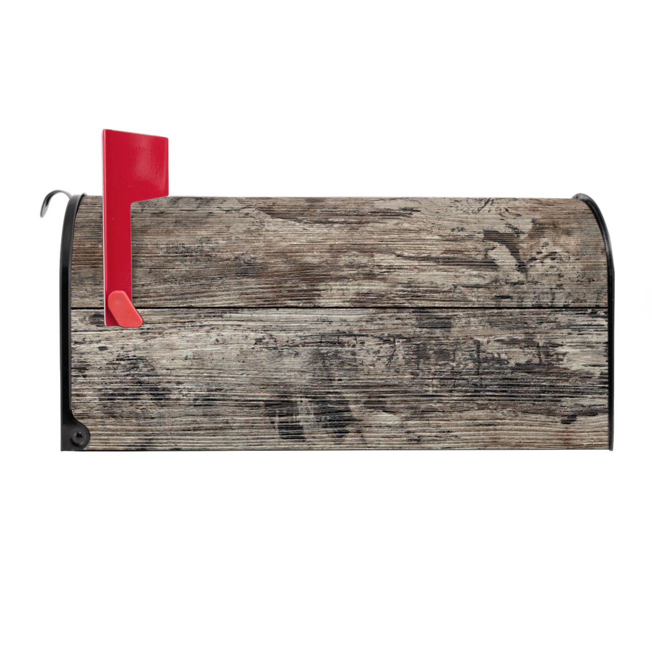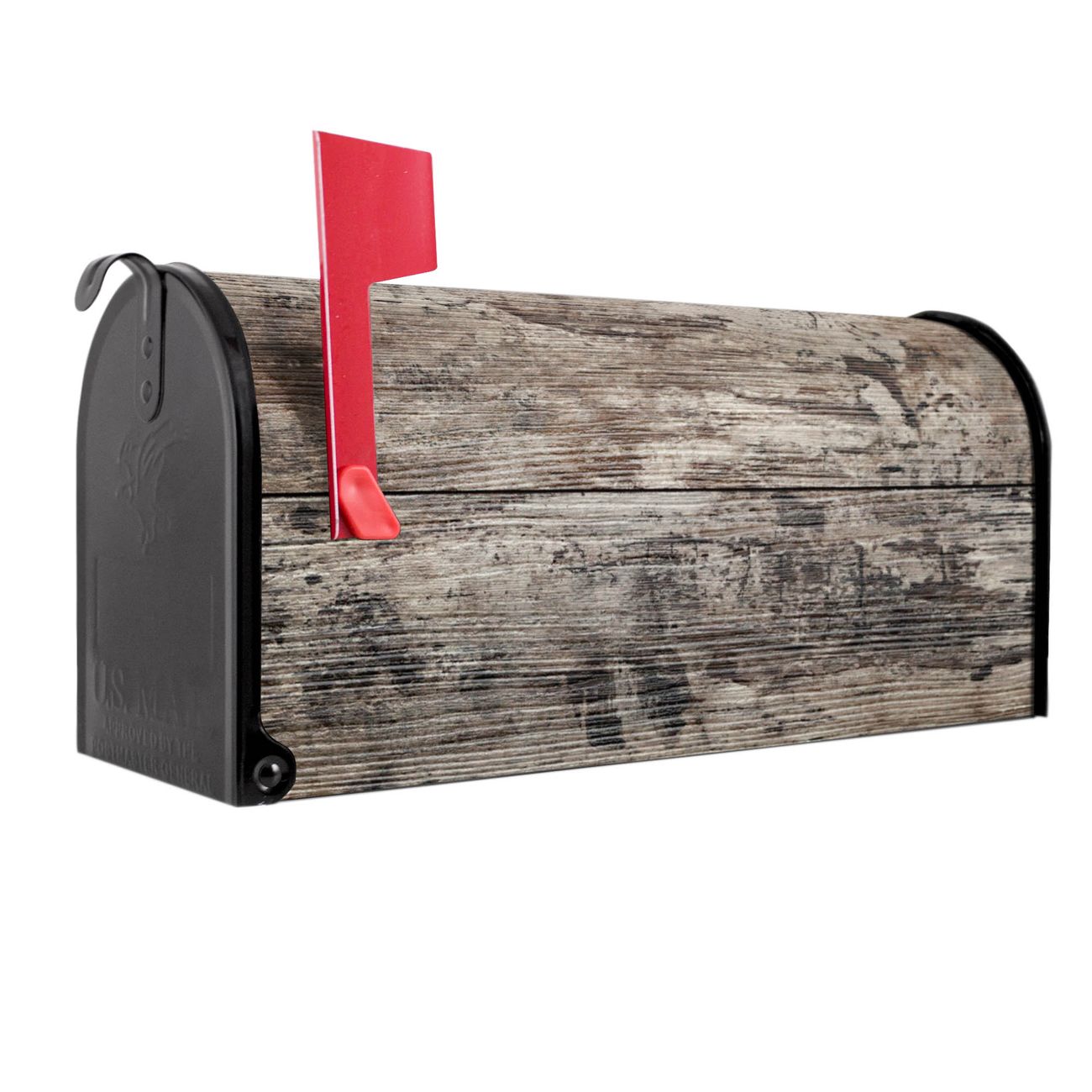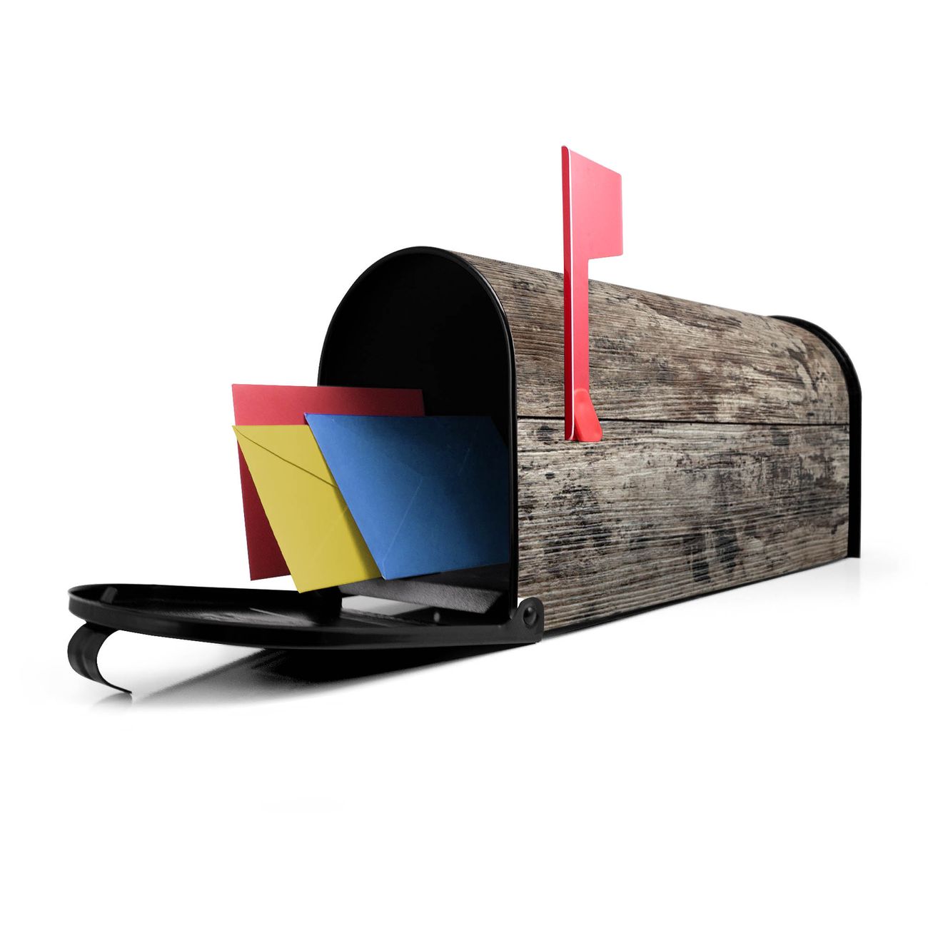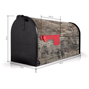 Der amerikanische Briefkasten von banjado mit Alte Planken Motiv bietet Ihnen ausreichend Fassungsvermögen, um große A4 Sendungen und Zeitschriften zu empfangen. Die typisch amerikanische rote Fahne zeigt Ihnen an, wenn Sie Post erhalten haben. Die US-Mailbox besteht aus verzinktem Stahlblech welches lackiert wurde und ist 48 x 22 x 16 CM (BxHxT) groß. Die Folie mit Motiv Alte Planken besteht aus einer wetter- und UV-resistenten Folie, die mit einem Schutzlaminat überzogen ist, sodass die US Mailbox zusätzlich vor Kratzern geschützt ist. An der Unterkante sind 4 Löcher je Seite um die Mailbox, typisch amerikanisch, an einem Holzpfahl oder einem Zaun zu befestigen. Auf Wunsch können Sie bei uns den passenden Standfuß oder die passende Wandhalterung kaufen um die US-Mailbox sicher zu befestigen. Wir bieten Ihnen ebenfalls Namensschilder, bereits beschriftet oder frei zu beschriften, und verschiedene selbst gestaltete Bitte-Keine-Werbung-Aufkleber.