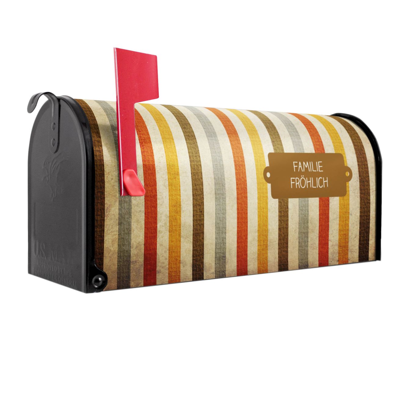 Unser amerikanischer Briefkasten mit dem Motiv Alte Streifen hat ein sehr ansprechendes und ausgefallenes Design, ist in der Grundfarbe weiß, grün oder schwarz erhältlich. Damit entlocken Sie Ihren Nachbarn und dem Postboten immer wieder ein Lächeln. Die Mailbox ist ein Original Import aus Mississippi USA und wird von unserer kleinen Manufaktur in Sachsen von Hand veredelt. Die US-Mailbox bietet ausreichend Platz auch für große Sendungen, eine Fahne die Ihnen Post anzeigt, wetterfestes und äußerst stabiles Material - so macht Post empfangen Freude.