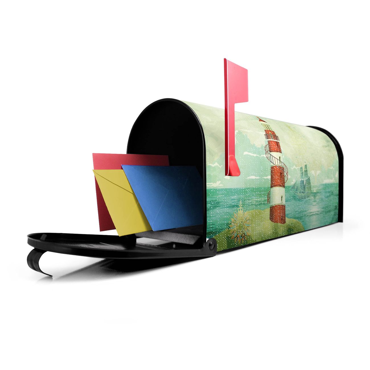 Unser amerikanischer Briefkasten mit dem Motiv Alter Leuchtturm hat ein sehr ansprechendes und ausgefallenes Design, ist in der Grundfarbe weiß, grün oder schwarz erhältlich. Damit entlocken Sie Ihren Nachbarn und dem Postboten immer wieder ein Lächeln. Die Mailbox ist ein Original Import aus Mississippi USA und wird von unserer kleinen Manufaktur in Sachsen von Hand veredelt. Die US-Mailbox bietet ausreichend Platz auch für große Sendungen, eine Fahne die Ihnen Post anzeigt, wetterfestes und äußerst stabiles Material - so macht Post empfangen Freude.