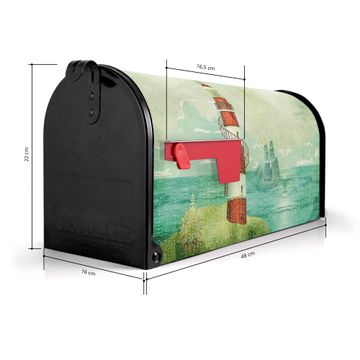 Der amerikanische Briefkasten von banjado mit Alter Leuchtturm Motiv bietet Ihnen ausreichend Fassungsvermögen, um große A4 Sendungen und Zeitschriften zu empfangen. Die typisch amerikanische rote Fahne zeigt Ihnen an, wenn Sie Post erhalten haben. Die US-Mailbox besteht aus verzinktem Stahlblech welches lackiert wurde und ist 48 x 22 x 16 CM (BxHxT) groß. Die Folie mit Motiv Alter Leuchtturm besteht aus einer wetter- und UV-resistenten Folie, die mit einem Schutzlaminat überzogen ist, sodass die US Mailbox zusätzlich vor Kratzern geschützt ist. An der Unterkante sind 4 Löcher je Seite um die Mailbox, typisch amerikanisch, an einem Holzpfahl oder einem Zaun zu befestigen. Auf Wunsch können Sie bei uns den passenden Standfuß oder die passende Wandhalterung kaufen um die US-Mailbox sicher zu befestigen. Wir bieten Ihnen ebenfalls Namensschilder, bereits beschriftet oder frei zu beschriften, und verschiedene selbst gestaltete Bitte-Keine-Werbung-Aufkleber.