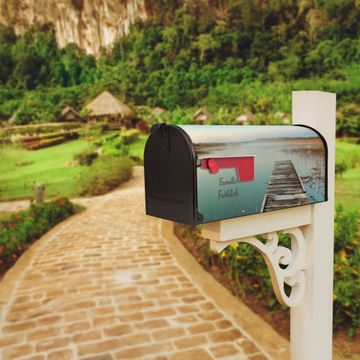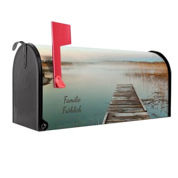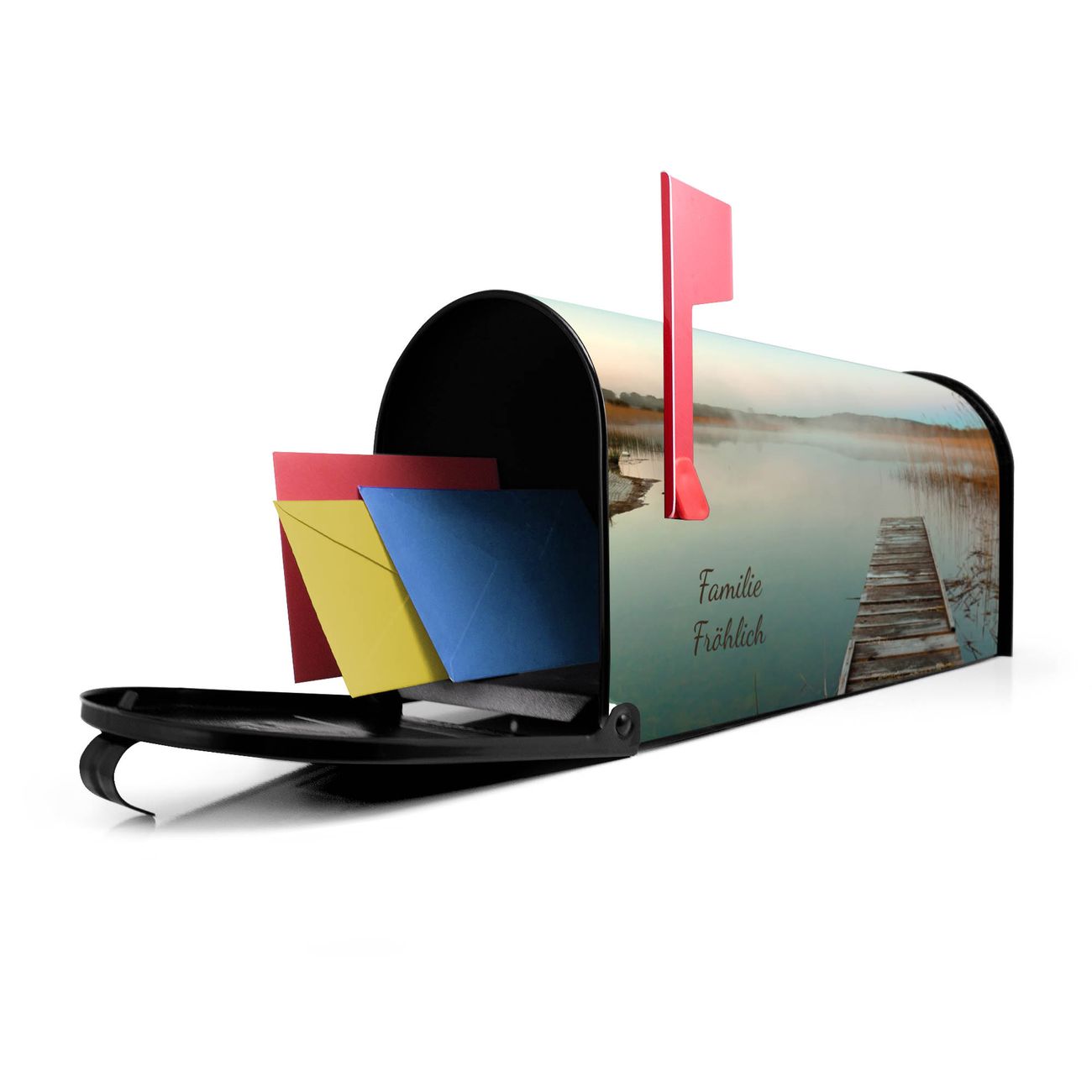 Der amerikanische Briefkasten von banjado mit Alter Steg Motiv bietet Ihnen ausreichend Fassungsvermögen, um große A4 Sendungen und Zeitschriften zu empfangen. Die typisch amerikanische rote Fahne zeigt Ihnen an, wenn Sie Post erhalten haben. Die US-Mailbox besteht aus verzinktem Stahlblech welches lackiert wurde und ist 48 x 22 x 16 CM (BxHxT) groß. Die Folie mit Motiv Alter Steg besteht aus einer wetter- und UV-resistenten Folie, die mit einem Schutzlaminat überzogen ist, sodass die US Mailbox zusätzlich vor Kratzern geschützt ist. An der Unterkante sind 4 Löcher je Seite um die Mailbox, typisch amerikanisch, an einem Holzpfahl oder einem Zaun zu befestigen. Auf Wunsch können Sie bei uns den passenden Standfuß oder die passende Wandhalterung kaufen um die US-Mailbox sicher zu befestigen. Wir bieten Ihnen ebenfalls Namensschilder, bereits beschriftet oder frei zu beschriften, und verschiedene selbst gestaltete Bitte-Keine-Werbung-Aufkleber.