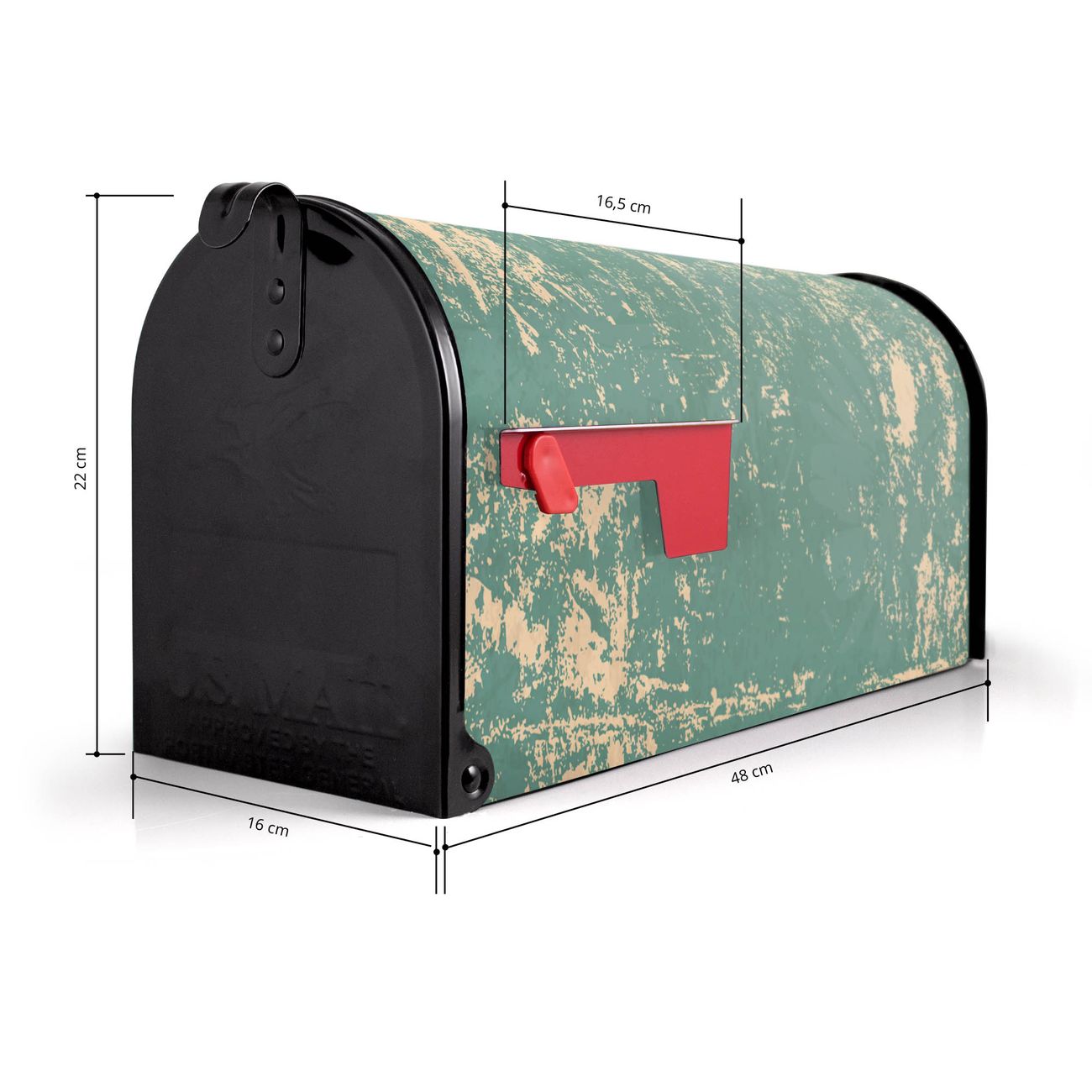 Der amerikanische Briefkasten von banjado mit Altes Papier Motiv bietet Ihnen ausreichend Fassungsvermögen, um große A4 Sendungen und Zeitschriften zu empfangen. Die typisch amerikanische rote Fahne zeigt Ihnen an, wenn Sie Post erhalten haben. Die US-Mailbox besteht aus verzinktem Stahlblech welches lackiert wurde und ist 48 x 22 x 16 CM (BxHxT) groß. Die Folie mit Motiv Altes Papier besteht aus einer wetter- und UV-resistenten Folie, die mit einem Schutzlaminat überzogen ist, sodass die US Mailbox zusätzlich vor Kratzern geschützt ist. An der Unterkante sind 4 Löcher je Seite um die Mailbox, typisch amerikanisch, an einem Holzpfahl oder einem Zaun zu befestigen. Auf Wunsch können Sie bei uns den passenden Standfuß oder die passende Wandhalterung kaufen um die US-Mailbox sicher zu befestigen. Wir bieten Ihnen ebenfalls Namensschilder, bereits beschriftet oder frei zu beschriften, und verschiedene selbst gestaltete Bitte-Keine-Werbung-Aufkleber.
