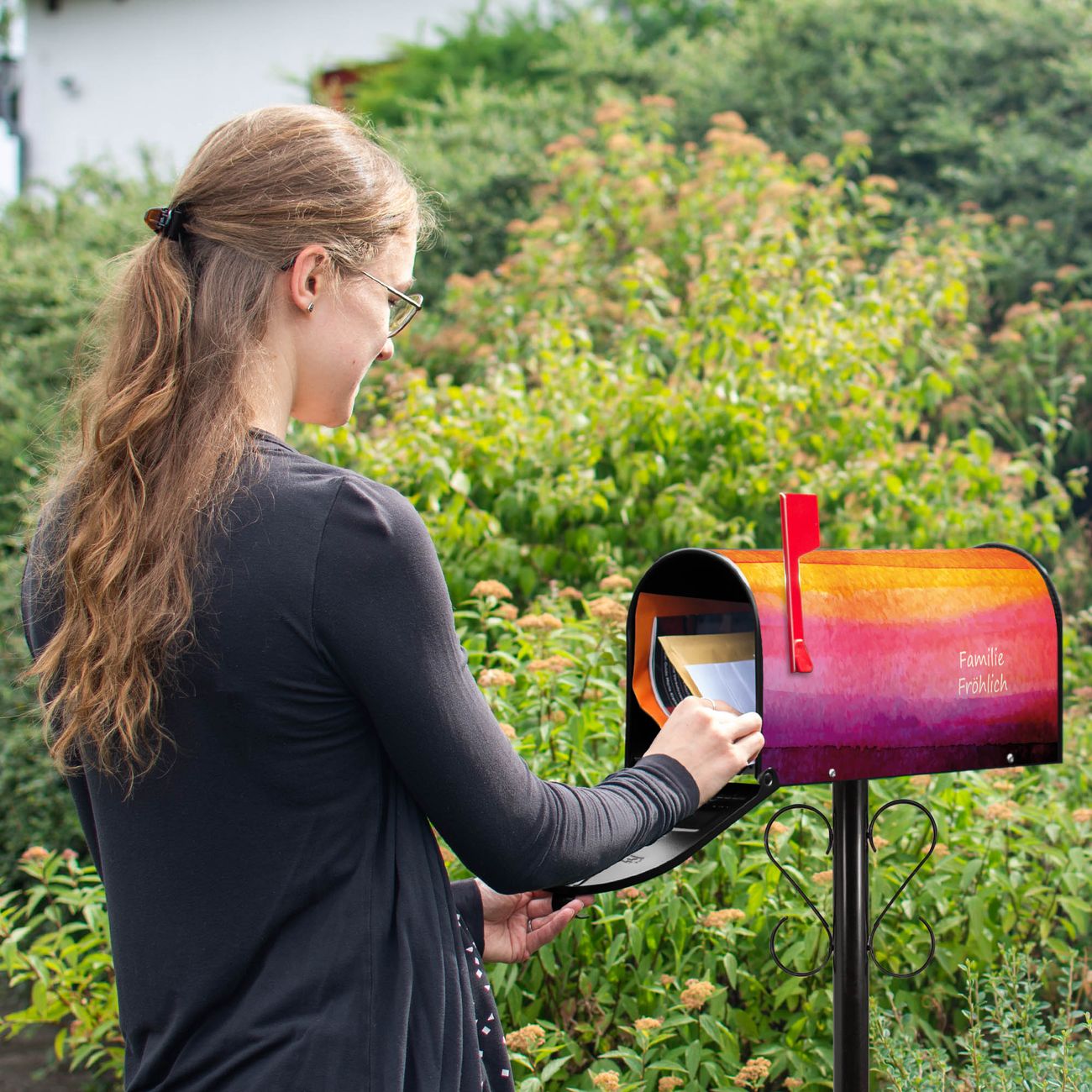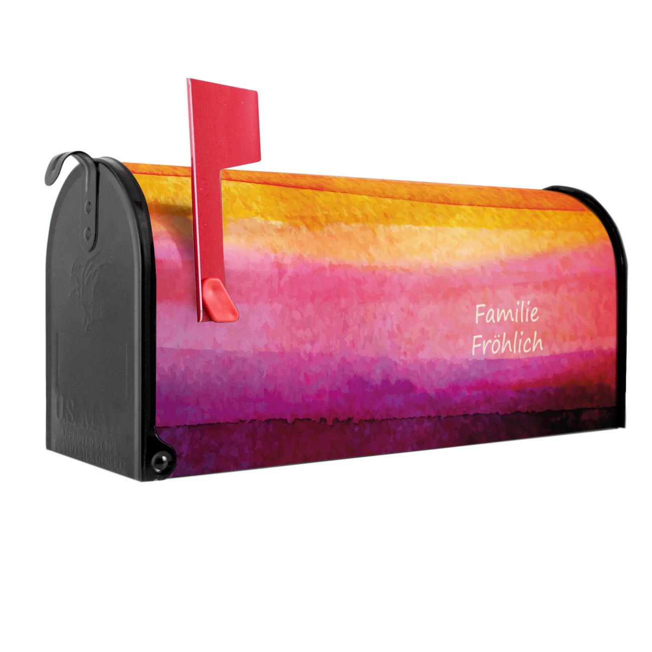 Unser amerikanischer Briefkasten mit dem Motiv Aquarell hat ein sehr ansprechendes und ausgefallenes Design, ist in der Grundfarbe weiß, grün oder schwarz erhältlich. Damit entlocken Sie Ihren Nachbarn und dem Postboten immer wieder ein Lächeln. Die Mailbox ist ein Original Import aus Mississippi USA und wird von unserer kleinen Manufaktur in Sachsen von Hand veredelt. Die US-Mailbox bietet ausreichend Platz auch für große Sendungen, eine Fahne die Ihnen Post anzeigt, wetterfestes und äußerst stabiles Material - so macht Post empfangen Freude.