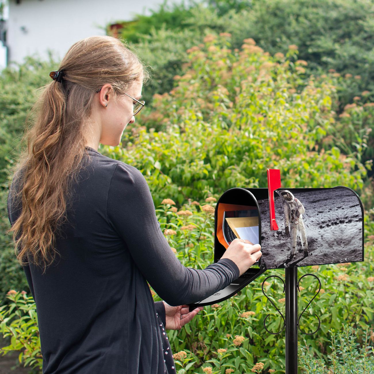 Unser amerikanischer Briefkasten mit dem Motiv Astronaut hat ein sehr ansprechendes und ausgefallenes Design, ist in der Grundfarbe weiß, grün oder schwarz erhältlich. Damit entlocken Sie Ihren Nachbarn und dem Postboten immer wieder ein Lächeln. Die Mailbox ist ein Original Import aus Mississippi USA und wird von unserer kleinen Manufaktur in Sachsen von Hand veredelt. Die US-Mailbox bietet ausreichend Platz auch für große Sendungen, eine Fahne die Ihnen Post anzeigt, wetterfestes und äußerst stabiles Material - so macht Post empfangen Freude.