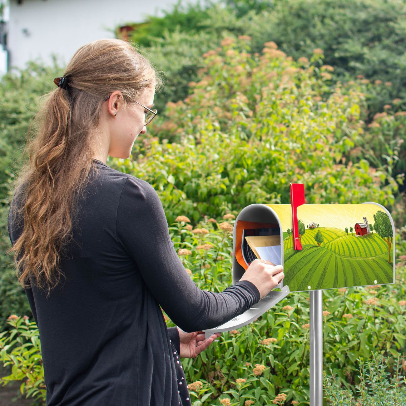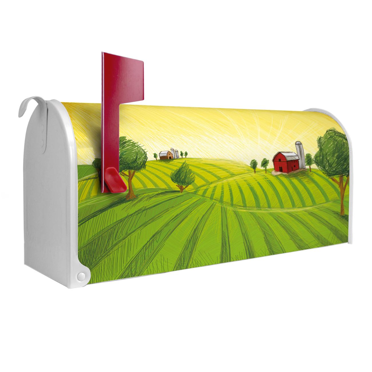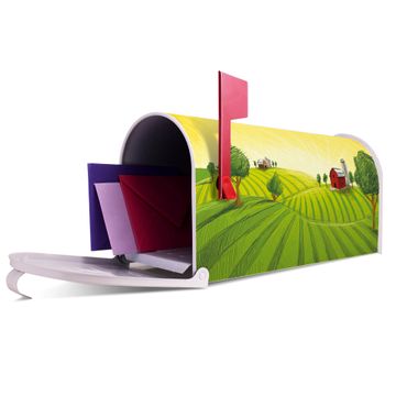 Unser amerikanischer Briefkasten mit dem Motiv Auf dem Land hat ein sehr ansprechendes und ausgefallenes Design, ist in der Grundfarbe weiß, grün oder schwarz erhältlich. Damit entlocken Sie Ihren Nachbarn und dem Postboten immer wieder ein Lächeln. Die Mailbox ist ein Original Import aus Mississippi USA und wird von unserer kleinen Manufaktur in Sachsen von Hand veredelt. Die US-Mailbox bietet ausreichend Platz auch für große Sendungen, eine Fahne die Ihnen Post anzeigt, wetterfestes und äußerst stabiles Material - so macht Post empfangen Freude.