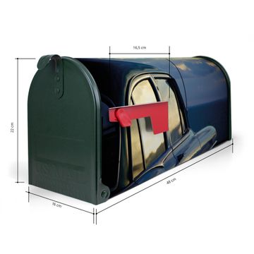 Unser amerikanischer Briefkasten mit dem Motiv Auto am Strand hat ein sehr ansprechendes und ausgefallenes Design, ist in der Grundfarbe weiß, grün oder schwarz erhältlich. Damit entlocken Sie Ihren Nachbarn und dem Postboten immer wieder ein Lächeln. Die Mailbox ist ein Original Import aus Mississippi USA und wird von unserer kleinen Manufaktur in Sachsen von Hand veredelt. Die US-Mailbox bietet ausreichend Platz auch für große Sendungen, eine Fahne die Ihnen Post anzeigt, wetterfestes und äußerst stabiles Material - so macht Post empfangen Freude.