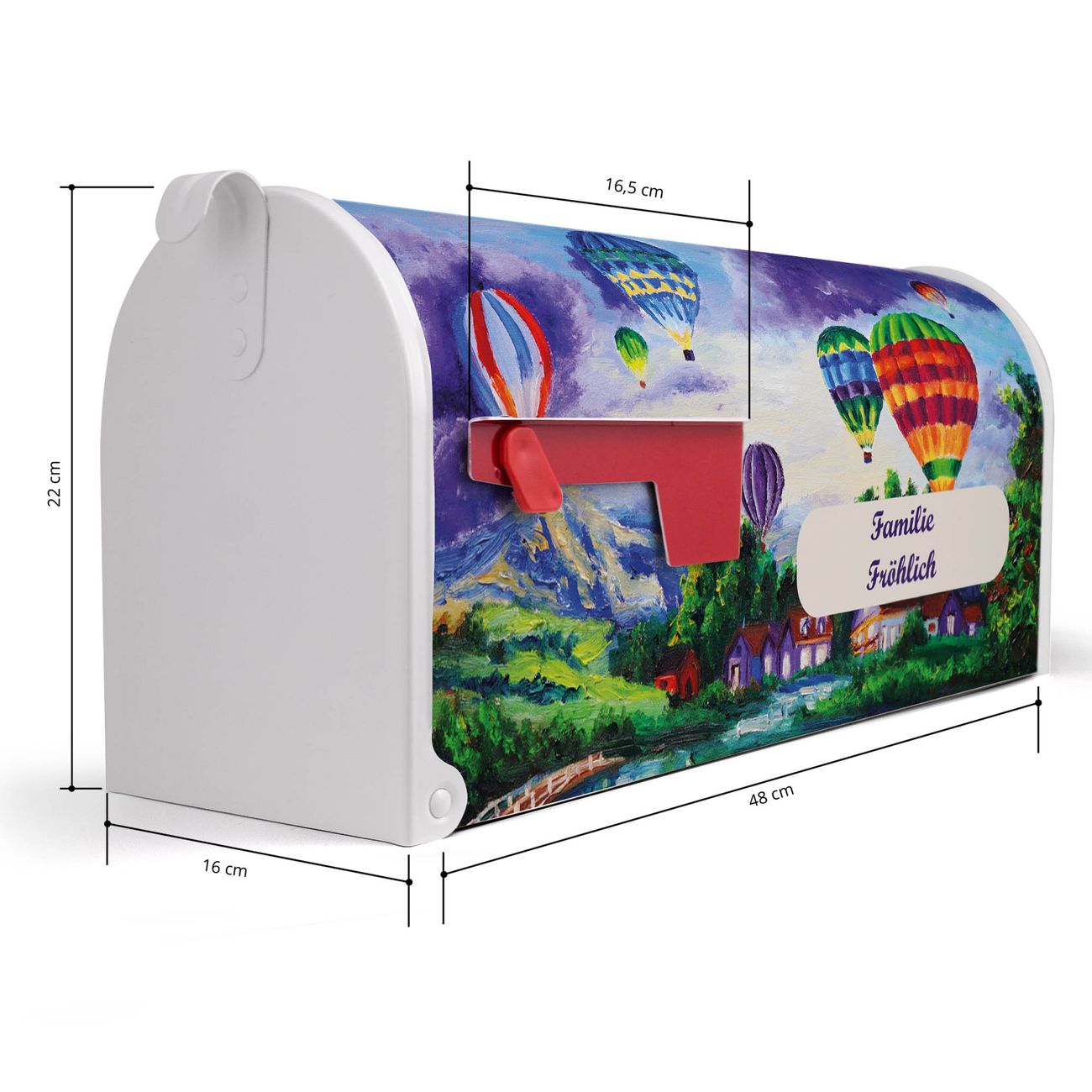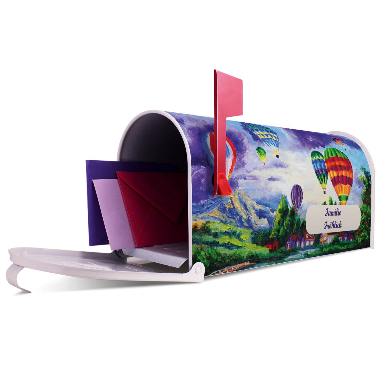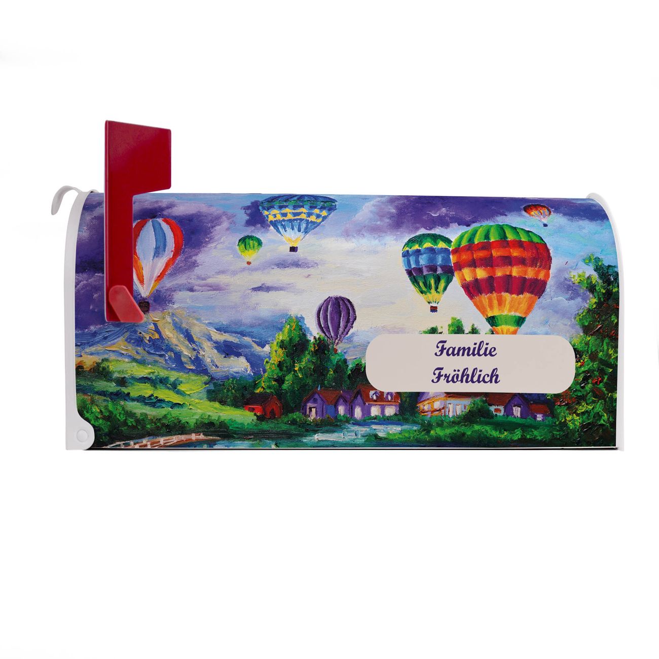 Unser amerikanischer Briefkasten mit dem Motiv Ballons In Lila Wolken hat ein sehr ansprechendes und ausgefallenes Design, ist in der Grundfarbe weiß, grün oder schwarz erhältlich. Damit entlocken Sie Ihren Nachbarn und dem Postboten immer wieder ein Lächeln. Die Mailbox ist ein Original Import aus Mississippi USA und wird von unserer kleinen Manufaktur in Sachsen von Hand veredelt. Die US-Mailbox bietet ausreichend Platz auch für große Sendungen, eine Fahne die Ihnen Post anzeigt, wetterfestes und äußerst stabiles Material - so macht Post empfangen Freude.