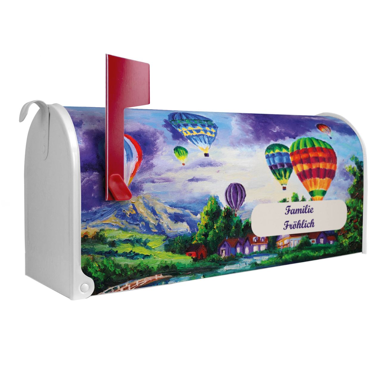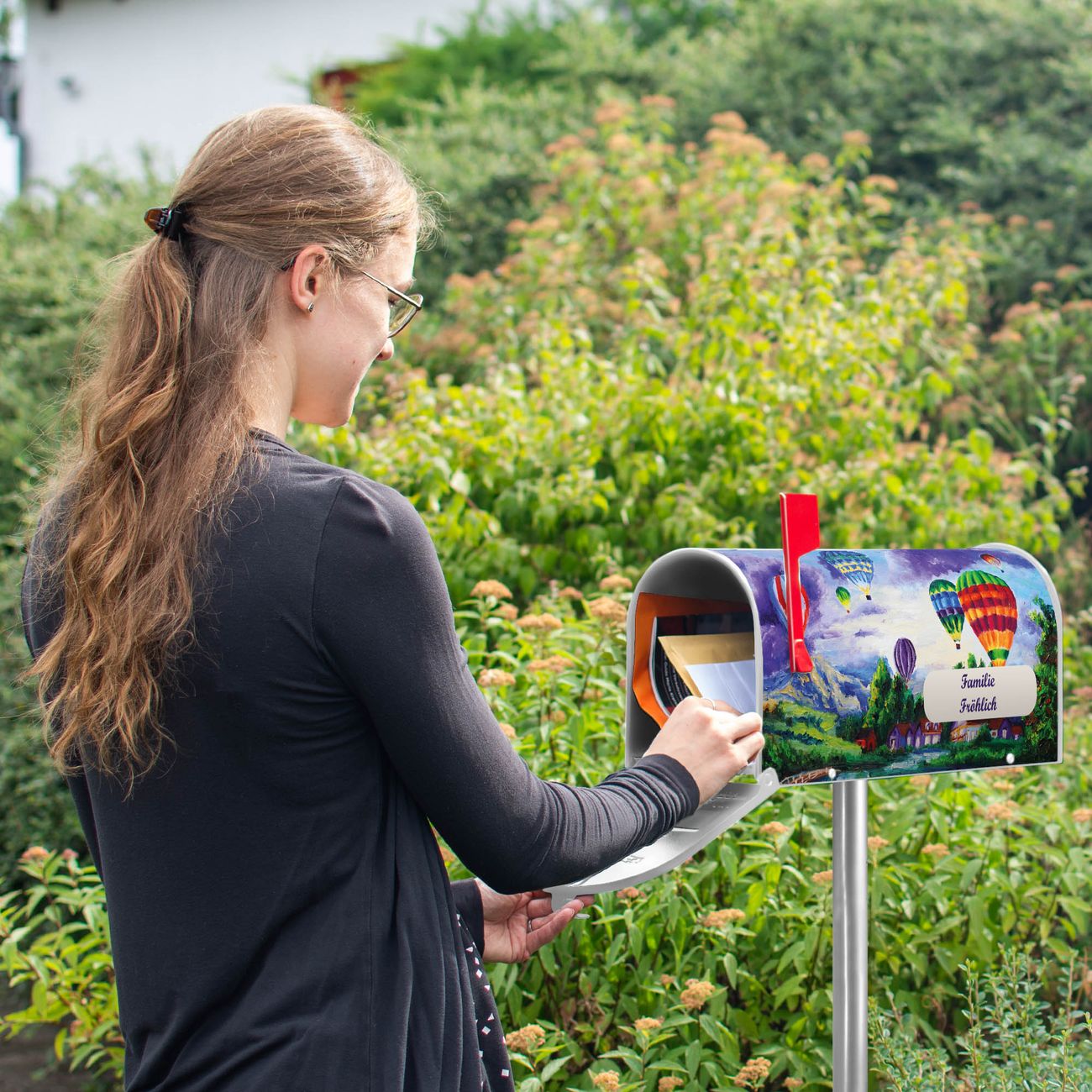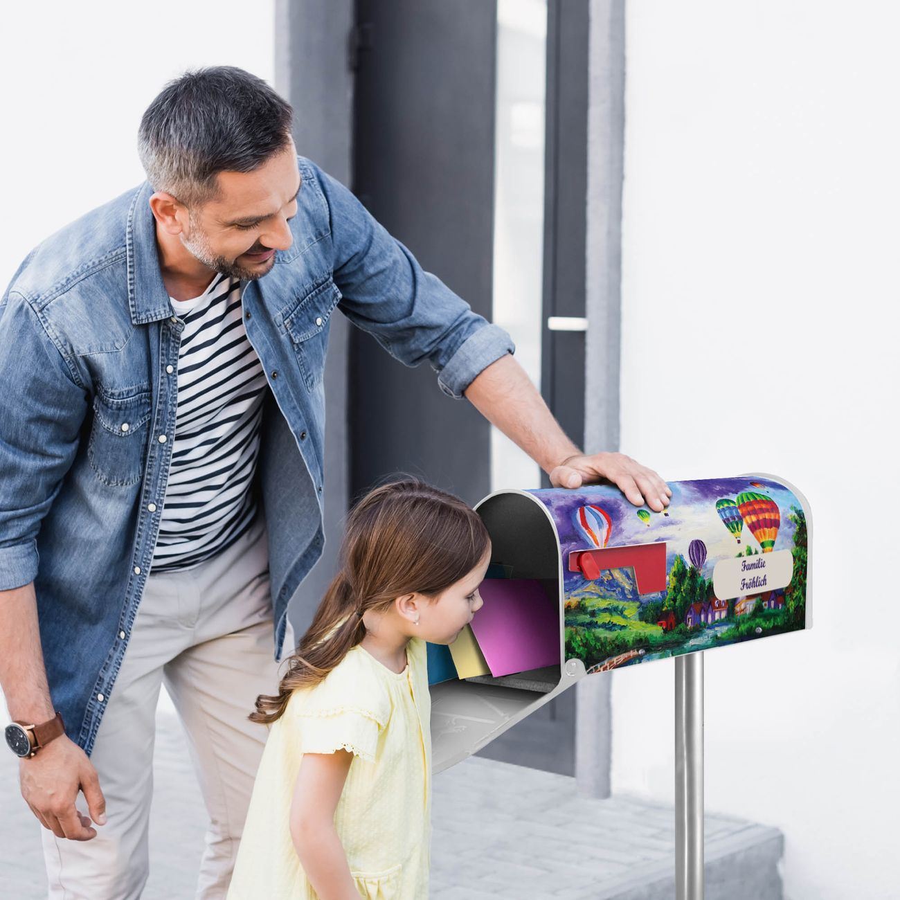 Unser amerikanischer Briefkasten mit dem Motiv Ballons In Lila Wolken hat ein sehr ansprechendes und ausgefallenes Design, ist in der Grundfarbe weiß, grün oder schwarz erhältlich. Damit entlocken Sie Ihren Nachbarn und dem Postboten immer wieder ein Lächeln. Die Mailbox ist ein Original Import aus Mississippi USA und wird von unserer kleinen Manufaktur in Sachsen von Hand veredelt. Die US-Mailbox bietet ausreichend Platz auch für große Sendungen, eine Fahne die Ihnen Post anzeigt, wetterfestes und äußerst stabiles Material - so macht Post empfangen Freude.