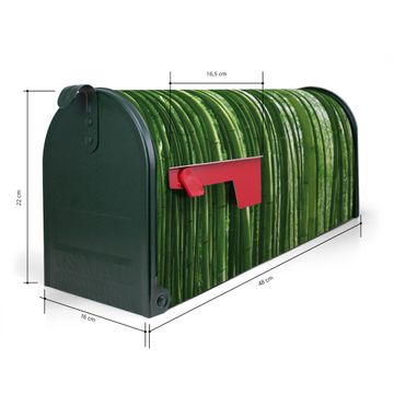 Der amerikanische Briefkasten von banjado mit Bambus Motiv bietet Ihnen ausreichend Fassungsvermögen, um große A4 Sendungen und Zeitschriften zu empfangen. Die typisch amerikanische rote Fahne zeigt Ihnen an, wenn Sie Post erhalten haben. Die US-Mailbox besteht aus verzinktem Stahlblech welches lackiert wurde und ist 48 x 22 x 16 CM (BxHxT) groß. Die Folie mit Motiv Bambus besteht aus einer wetter- und UV-resistenten Folie, die mit einem Schutzlaminat überzogen ist, sodass die US Mailbox zusätzlich vor Kratzern geschützt ist. An der Unterkante sind 4 Löcher je Seite um die Mailbox, typisch amerikanisch, an einem Holzpfahl oder einem Zaun zu befestigen. Auf Wunsch können Sie bei uns den passenden Standfuß oder die passende Wandhalterung kaufen um die US-Mailbox sicher zu befestigen. Wir bieten Ihnen ebenfalls Namensschilder, bereits beschriftet oder frei zu beschriften, und verschiedene selbst gestaltete Bitte-Keine-Werbung-Aufkleber.