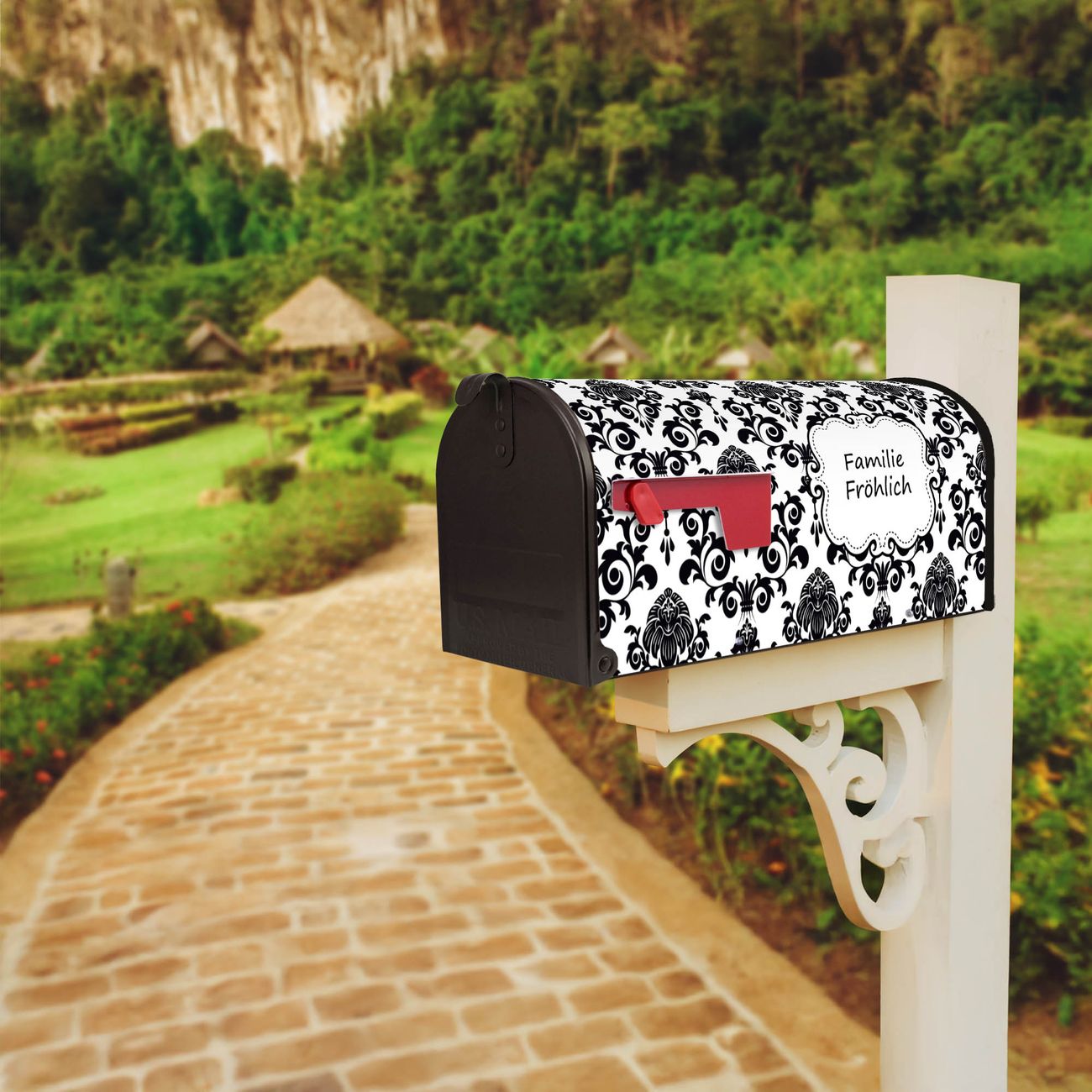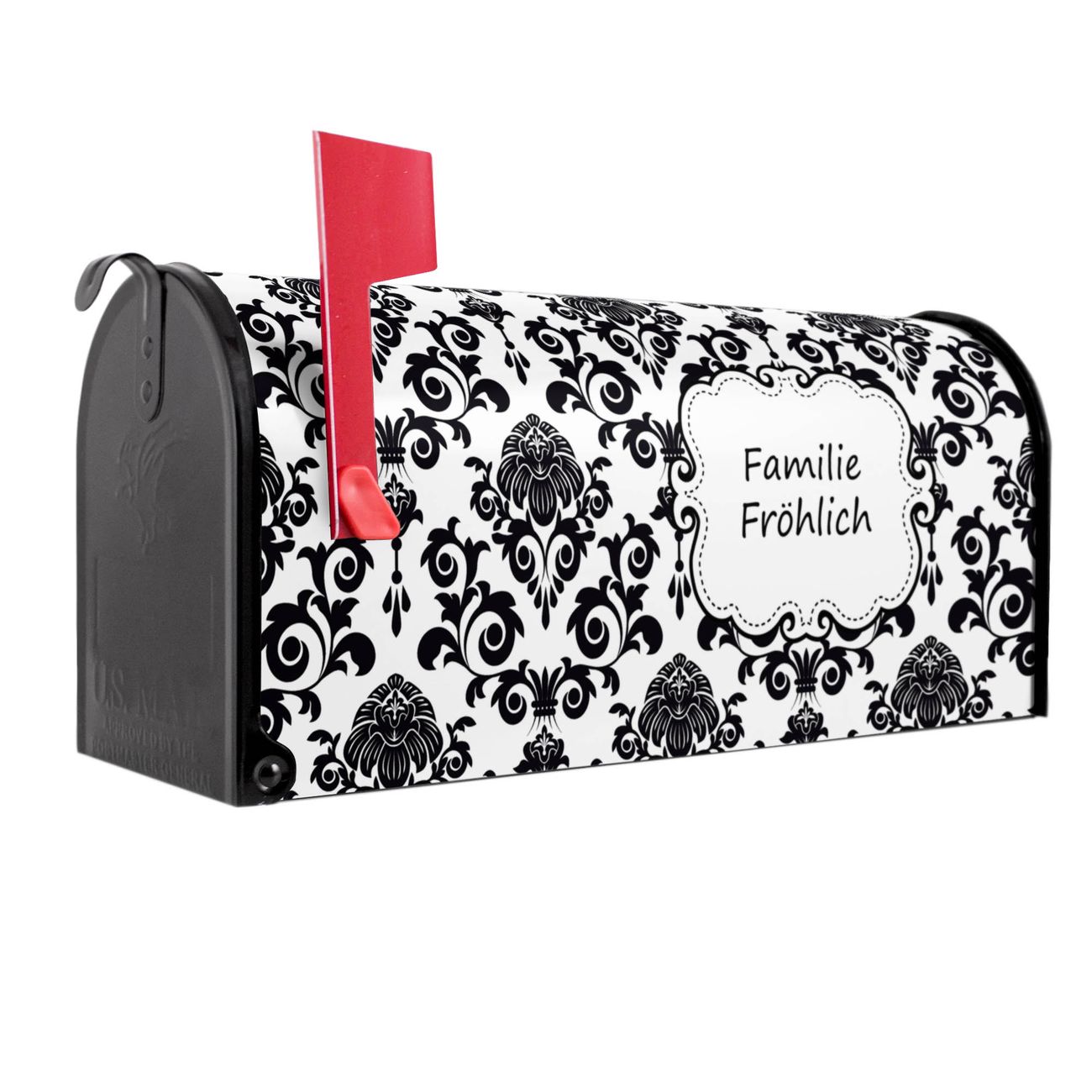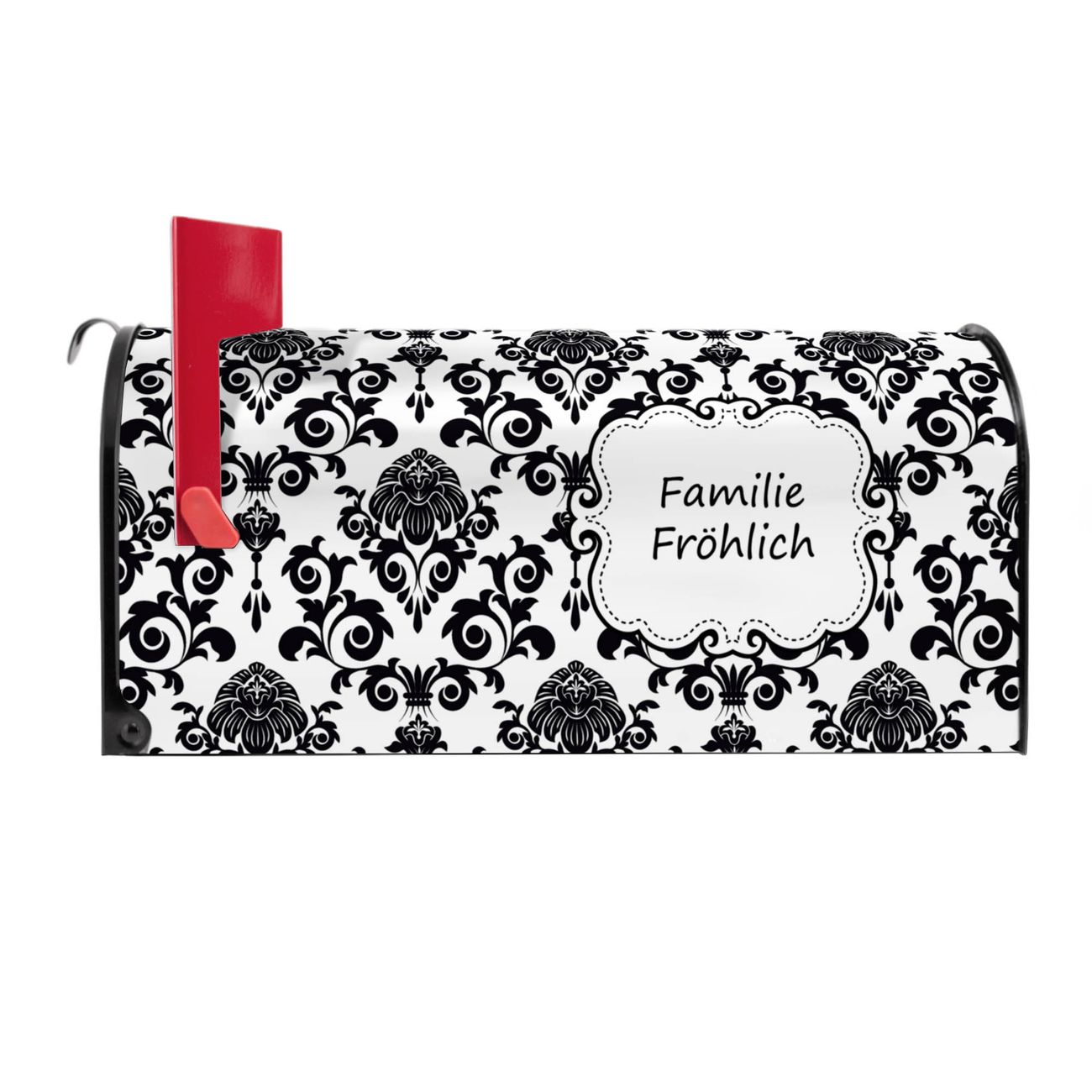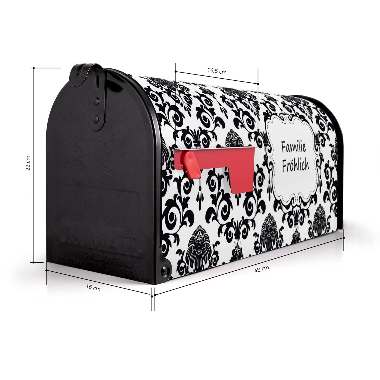 Der amerikanische Briefkasten von banjado mit Barock Motiv bietet Ihnen ausreichend Fassungsvermögen, um große A4 Sendungen und Zeitschriften zu empfangen. Die typisch amerikanische rote Fahne zeigt Ihnen an, wenn Sie Post erhalten haben. Die US-Mailbox besteht aus verzinktem Stahlblech welches lackiert wurde und ist 48 x 22 x 16 CM (BxHxT) groß. Die Folie mit Motiv Barock besteht aus einer wetter- und UV-resistenten Folie, die mit einem Schutzlaminat überzogen ist, sodass die US Mailbox zusätzlich vor Kratzern geschützt ist. An der Unterkante sind 4 Löcher je Seite um die Mailbox, typisch amerikanisch, an einem Holzpfahl oder einem Zaun zu befestigen. Auf Wunsch können Sie bei uns den passenden Standfuß oder die passende Wandhalterung kaufen um die US-Mailbox sicher zu befestigen. Wir bieten Ihnen ebenfalls Namensschilder, bereits beschriftet oder frei zu beschriften, und verschiedene selbst gestaltete Bitte-Keine-Werbung-Aufkleber.
