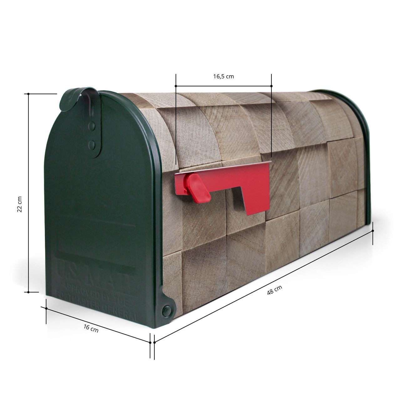 Der amerikanische Briefkasten von banjado mit Bauklötze Relief Motiv bietet Ihnen ausreichend Fassungsvermögen, um große A4 Sendungen und Zeitschriften zu empfangen. Die typisch amerikanische rote Fahne zeigt Ihnen an, wenn Sie Post erhalten haben. Die US-Mailbox besteht aus verzinktem Stahlblech welches lackiert wurde und ist 48 x 22 x 16 CM (BxHxT) groß. Die Folie mit Motiv Bauklötze Relief besteht aus einer wetter- und UV-resistenten Folie, die mit einem Schutzlaminat überzogen ist, sodass die US Mailbox zusätzlich vor Kratzern geschützt ist. An der Unterkante sind 4 Löcher je Seite um die Mailbox, typisch amerikanisch, an einem Holzpfahl oder einem Zaun zu befestigen. Auf Wunsch können Sie bei uns den passenden Standfuß oder die passende Wandhalterung kaufen um die US-Mailbox sicher zu befestigen. Wir bieten Ihnen ebenfalls Namensschilder, bereits beschriftet oder frei zu beschriften, und verschiedene selbst gestaltete Bitte-Keine-Werbung-Aufkleber.
