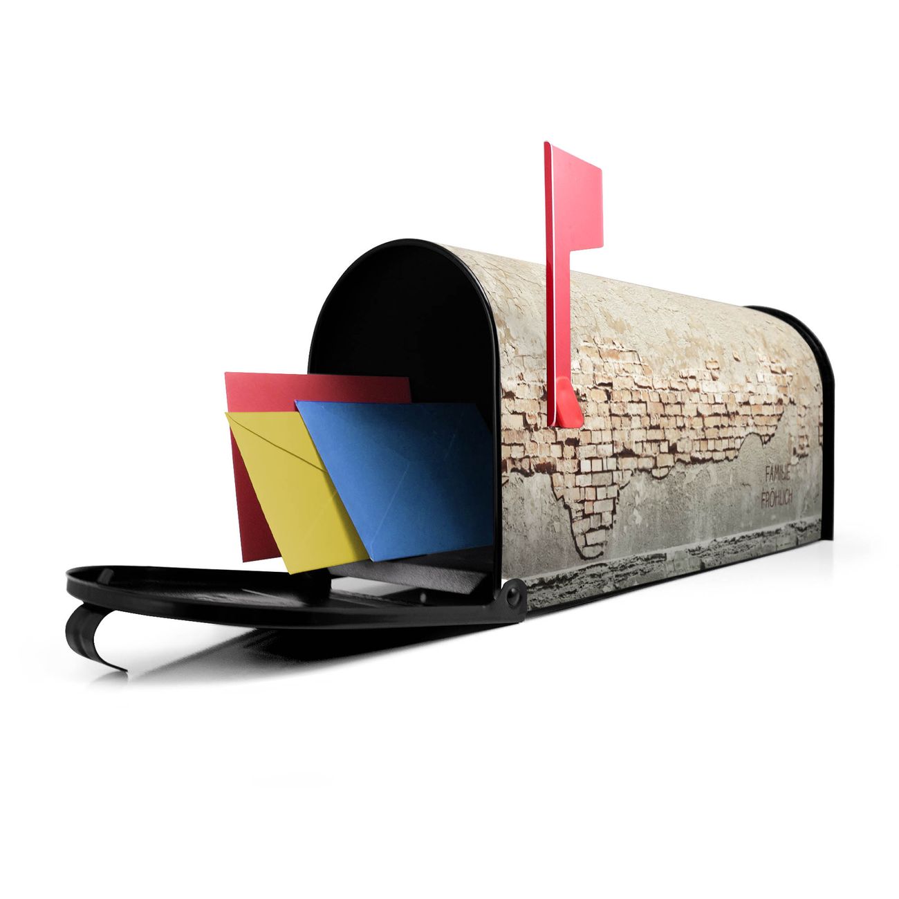 Unser amerikanischer Briefkasten mit dem Motiv Baulücke hat ein sehr ansprechendes und ausgefallenes Design, ist in der Grundfarbe weiß, grün oder schwarz erhältlich. Damit entlocken Sie Ihren Nachbarn und dem Postboten immer wieder ein Lächeln. Die Mailbox ist ein Original Import aus Mississippi USA und wird von unserer kleinen Manufaktur in Sachsen von Hand veredelt. Die US-Mailbox bietet ausreichend Platz auch für große Sendungen, eine Fahne die Ihnen Post anzeigt, wetterfestes und äußerst stabiles Material - so macht Post empfangen Freude.
