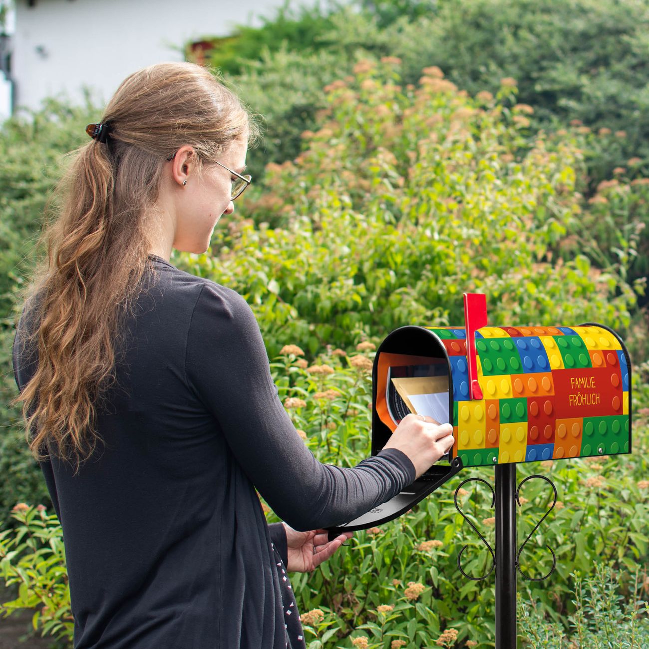 Unser amerikanischer Briefkasten mit dem Motiv Bausteine hat ein sehr ansprechendes und ausgefallenes Design, ist in der Grundfarbe weiß, grün oder schwarz erhältlich. Damit entlocken Sie Ihren Nachbarn und dem Postboten immer wieder ein Lächeln. Die Mailbox ist ein Original Import aus Mississippi USA und wird von unserer kleinen Manufaktur in Sachsen von Hand veredelt. Die US-Mailbox bietet ausreichend Platz auch für große Sendungen, eine Fahne die Ihnen Post anzeigt, wetterfestes und äußerst stabiles Material - so macht Post empfangen Freude.