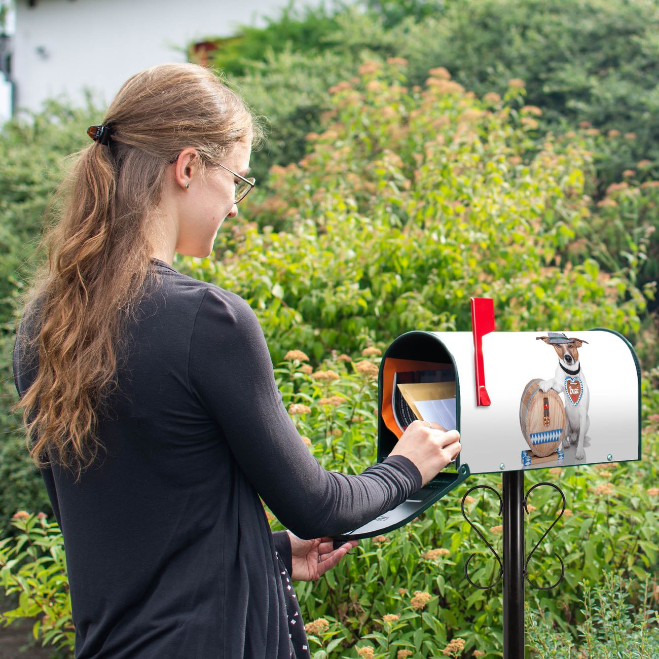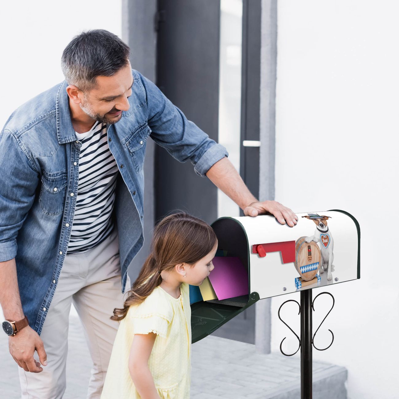 Unser amerikanischer Briefkasten mit dem Motiv Bayer Jack Russel hat ein sehr ansprechendes und ausgefallenes Design, ist in der Grundfarbe weiß, grün oder schwarz erhältlich. Damit entlocken Sie Ihren Nachbarn und dem Postboten immer wieder ein Lächeln. Die Mailbox ist ein Original Import aus Mississippi USA und wird von unserer kleinen Manufaktur in Sachsen von Hand veredelt. Die US-Mailbox bietet ausreichend Platz auch für große Sendungen, eine Fahne die Ihnen Post anzeigt, wetterfestes und äußerst stabiles Material - so macht Post empfangen Freude.