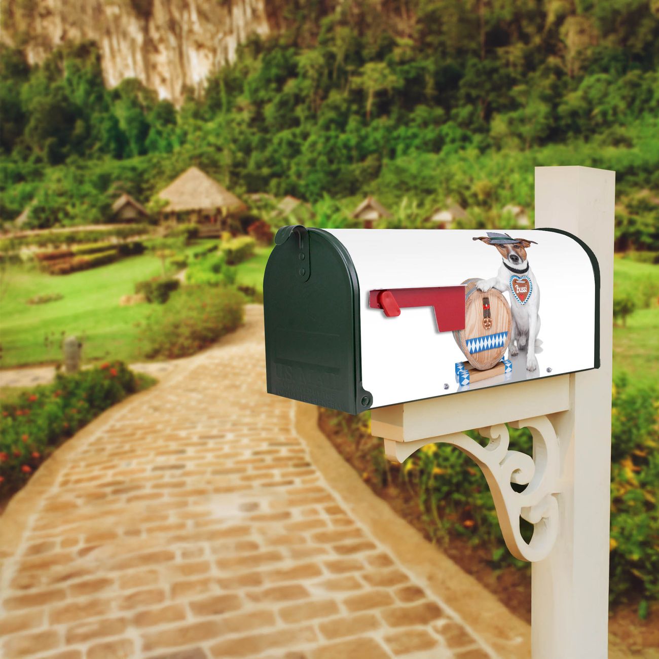 Der amerikanische Briefkasten von banjado mit Bayer Jack Russel Motiv bietet Ihnen ausreichend Fassungsvermögen, um große A4 Sendungen und Zeitschriften zu empfangen. Die typisch amerikanische rote Fahne zeigt Ihnen an, wenn Sie Post erhalten haben. Die US-Mailbox besteht aus verzinktem Stahlblech welches lackiert wurde und ist 48 x 22 x 16 CM (BxHxT) groß. Die Folie mit Motiv Bayer Jack Russel besteht aus einer wetter- und UV-resistenten Folie, die mit einem Schutzlaminat überzogen ist, sodass die US Mailbox zusätzlich vor Kratzern geschützt ist. An der Unterkante sind 4 Löcher je Seite um die Mailbox, typisch amerikanisch, an einem Holzpfahl oder einem Zaun zu befestigen. Auf Wunsch können Sie bei uns den passenden Standfuß oder die passende Wandhalterung kaufen um die US-Mailbox sicher zu befestigen. Wir bieten Ihnen ebenfalls Namensschilder, bereits beschriftet oder frei zu beschriften, und verschiedene selbst gestaltete Bitte-Keine-Werbung-Aufkleber.