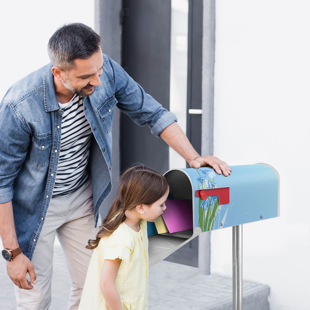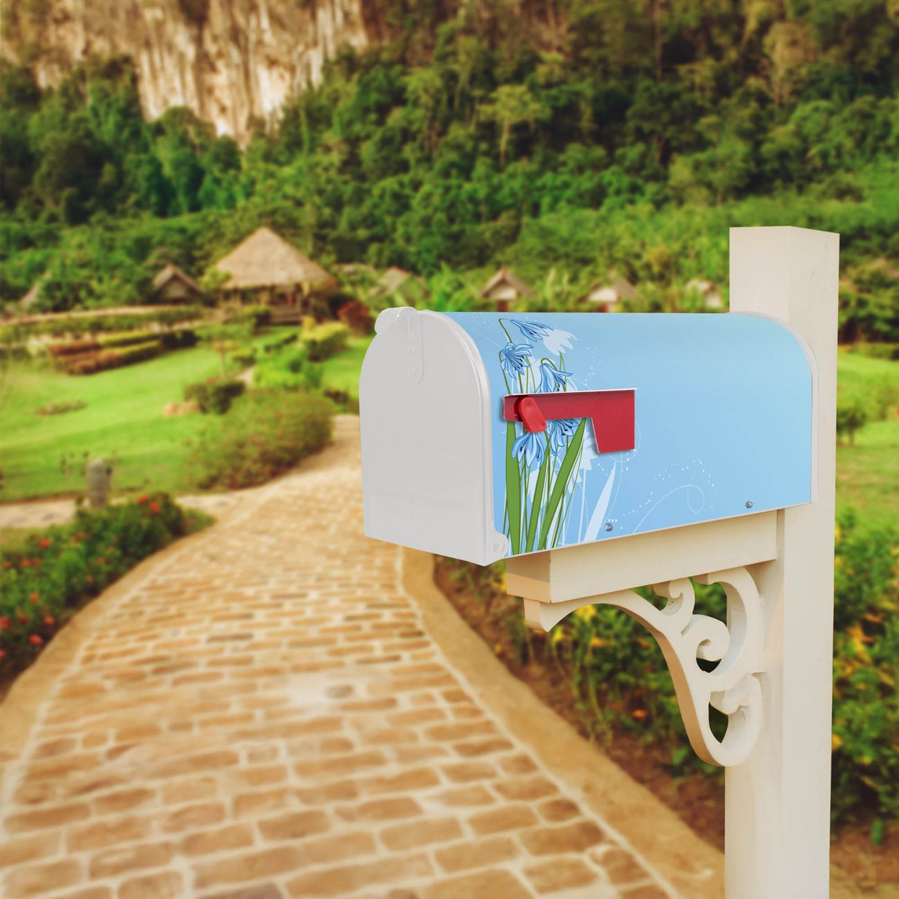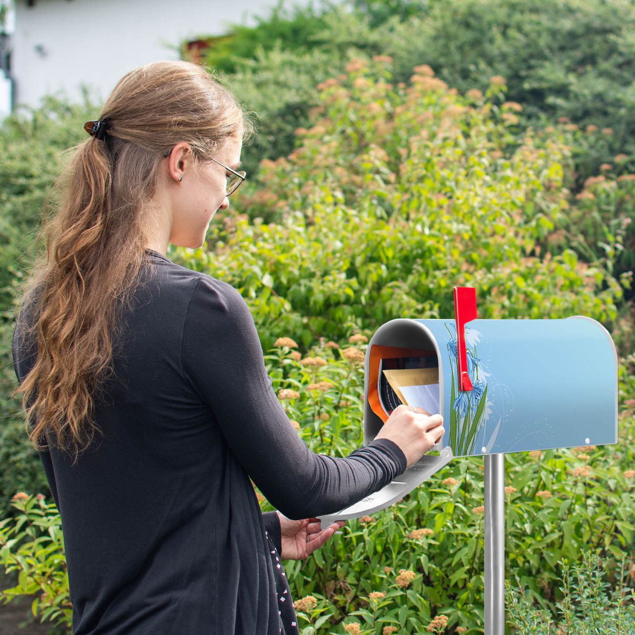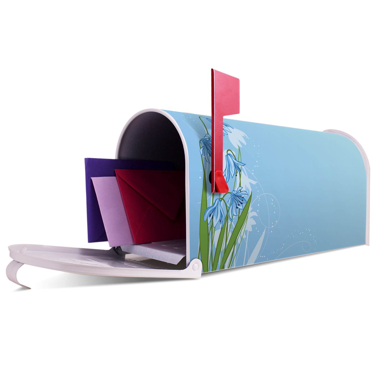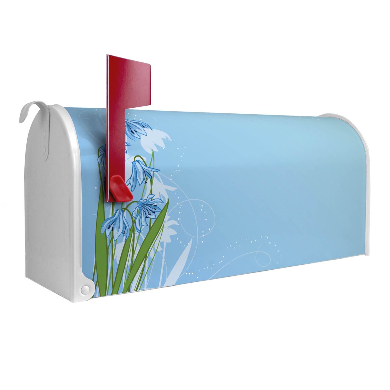 Unser amerikanischer Briefkasten mit dem Motiv Bergblaulilie hat ein sehr ansprechendes und ausgefallenes Design, ist in der Grundfarbe weiß, grün oder schwarz erhältlich. Damit entlocken Sie Ihren Nachbarn und dem Postboten immer wieder ein Lächeln. Die Mailbox ist ein Original Import aus Mississippi USA und wird von unserer kleinen Manufaktur in Sachsen von Hand veredelt. Die US-Mailbox bietet ausreichend Platz auch für große Sendungen, eine Fahne die Ihnen Post anzeigt, wetterfestes und äußerst stabiles Material - so macht Post empfangen Freude.
