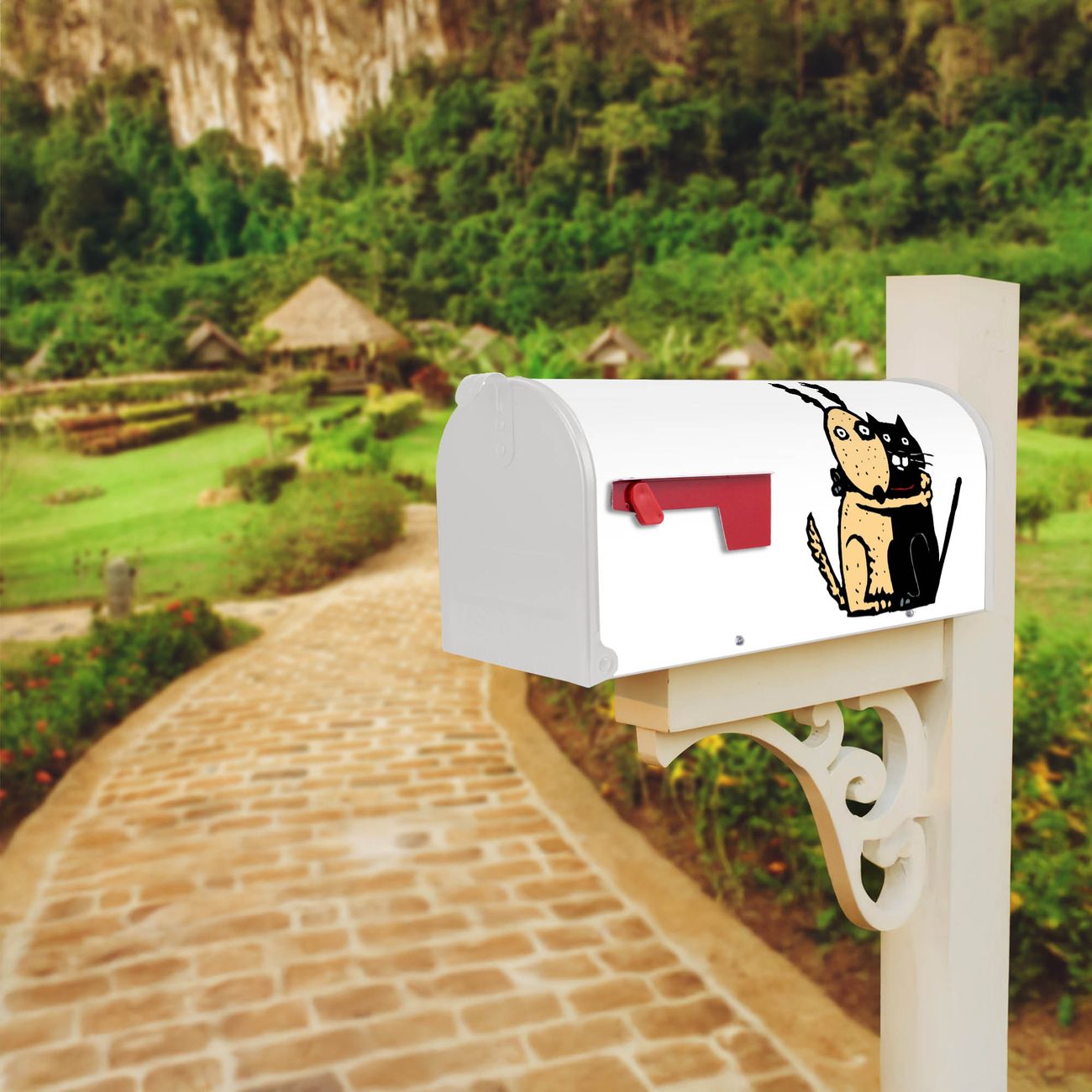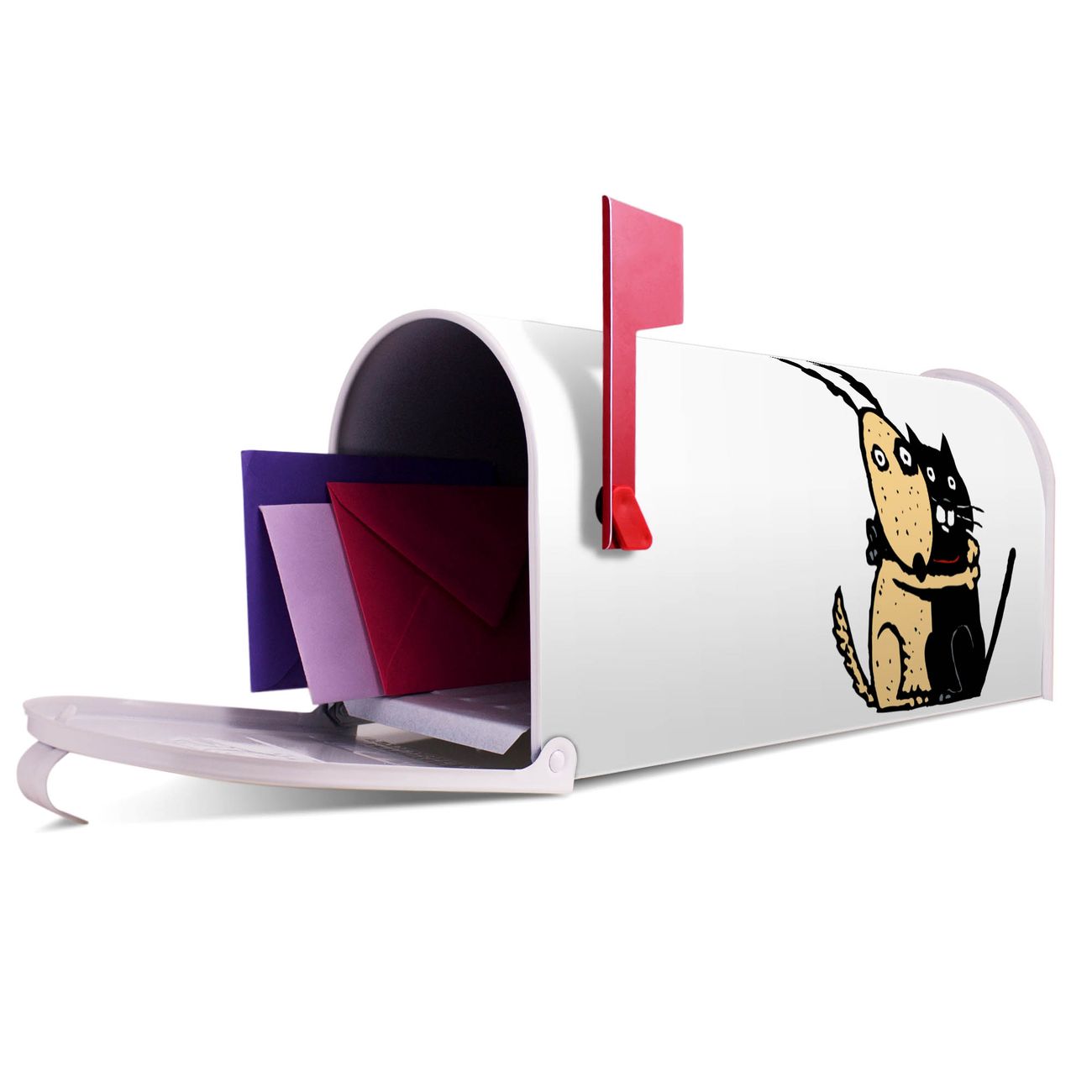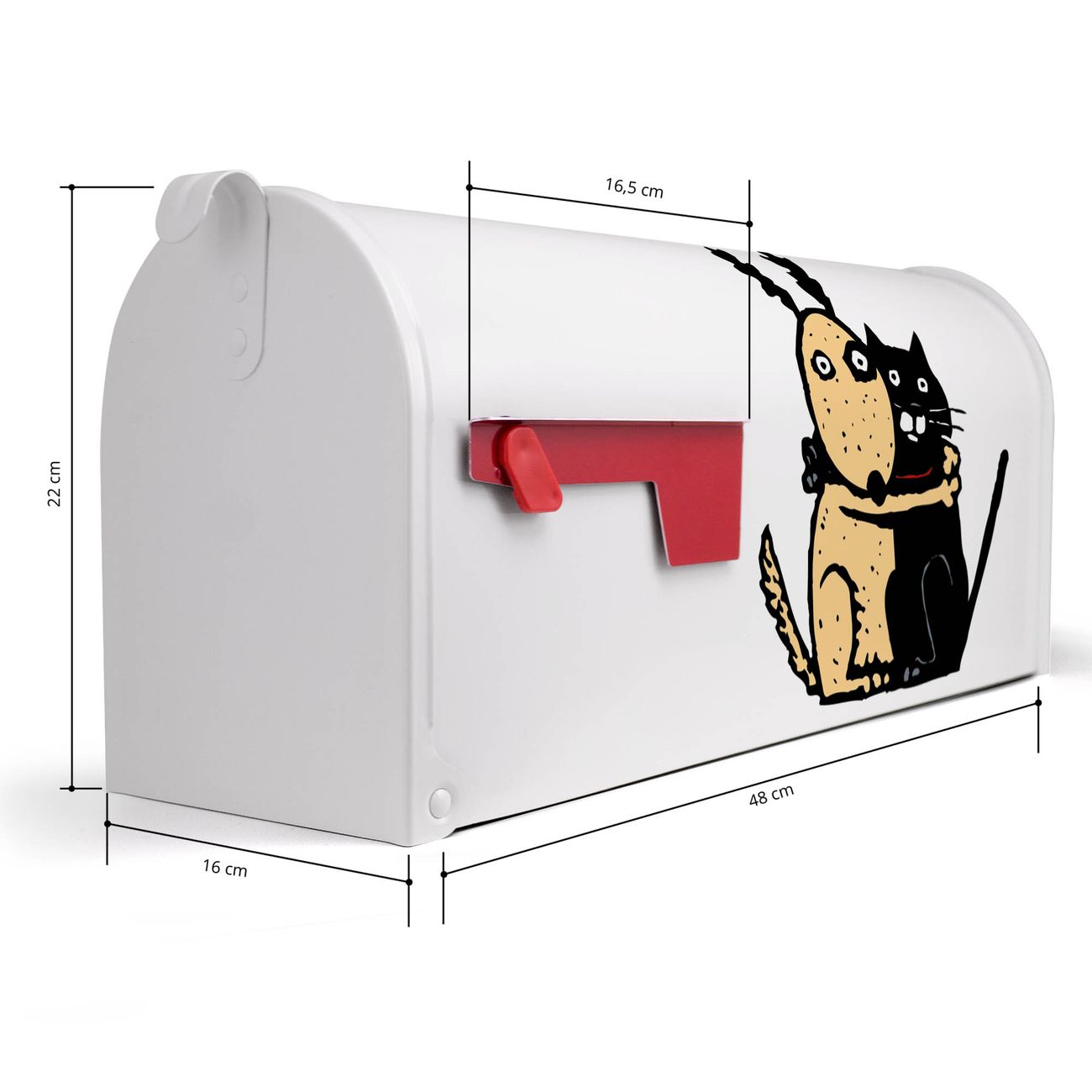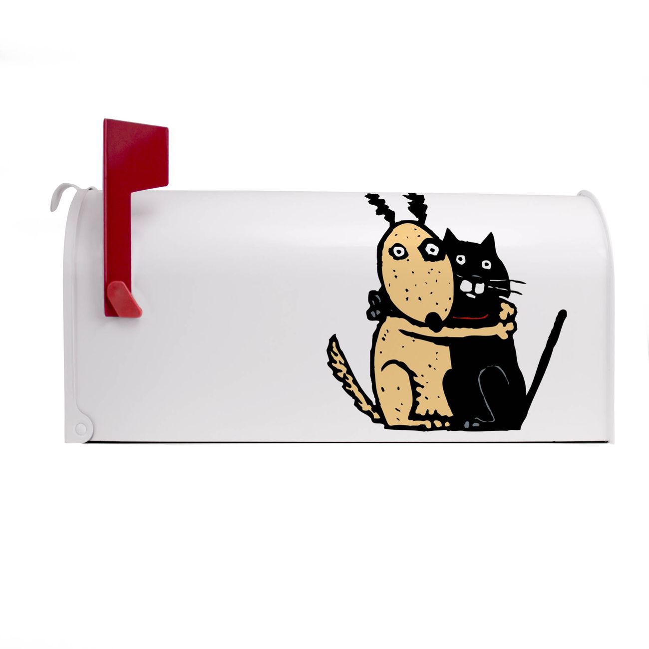 Unser amerikanischer Briefkasten mit dem Motiv Beste Freunde Immer hat ein sehr ansprechendes und ausgefallenes Design, ist in der Grundfarbe weiß, grün oder schwarz erhältlich. Damit entlocken Sie Ihren Nachbarn und dem Postboten immer wieder ein Lächeln. Die Mailbox ist ein Original Import aus Mississippi USA und wird von unserer kleinen Manufaktur in Sachsen von Hand veredelt. Die US-Mailbox bietet ausreichend Platz auch für große Sendungen, eine Fahne die Ihnen Post anzeigt, wetterfestes und äußerst stabiles Material - so macht Post empfangen Freude.