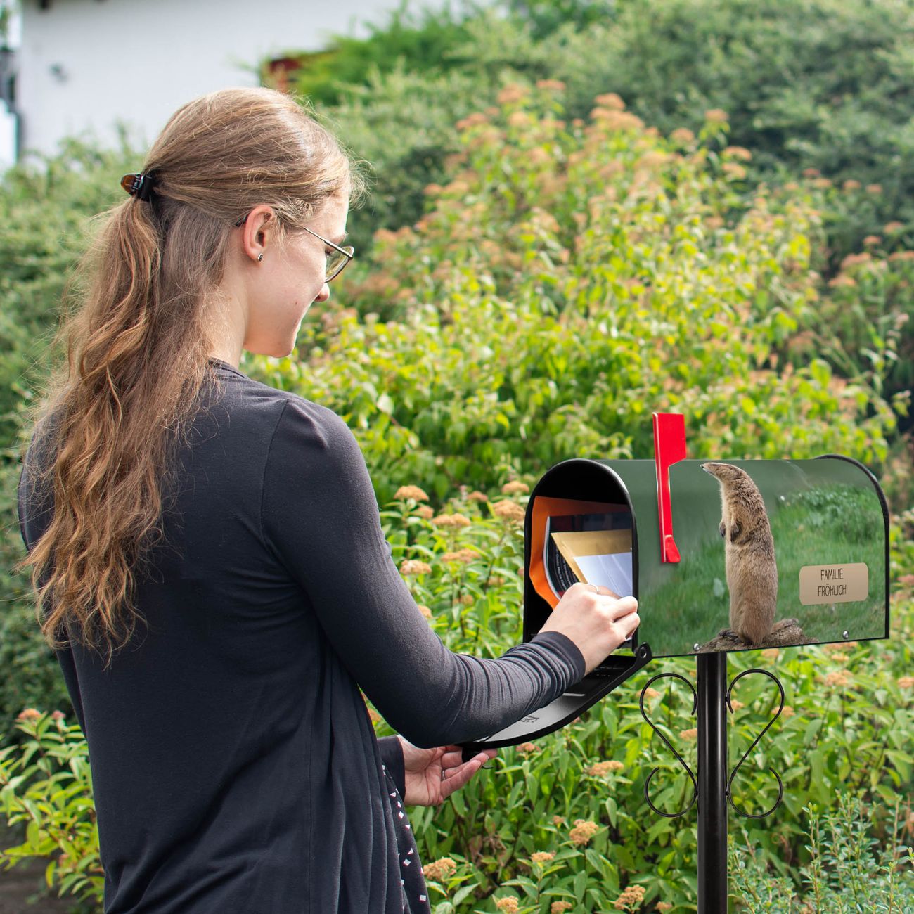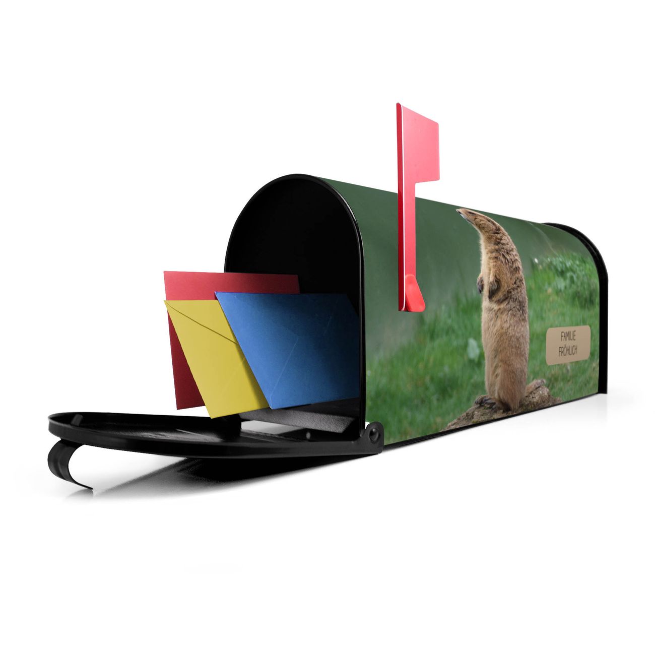 Der amerikanische Briefkasten von banjado mit Biber Motiv bietet Ihnen ausreichend Fassungsvermögen, um große A4 Sendungen und Zeitschriften zu empfangen. Die typisch amerikanische rote Fahne zeigt Ihnen an, wenn Sie Post erhalten haben. Die US-Mailbox besteht aus verzinktem Stahlblech welches lackiert wurde und ist 48 x 22 x 16 CM (BxHxT) groß. Die Folie mit Motiv Biber besteht aus einer wetter- und UV-resistenten Folie, die mit einem Schutzlaminat überzogen ist, sodass die US Mailbox zusätzlich vor Kratzern geschützt ist. An der Unterkante sind 4 Löcher je Seite um die Mailbox, typisch amerikanisch, an einem Holzpfahl oder einem Zaun zu befestigen. Auf Wunsch können Sie bei uns den passenden Standfuß oder die passende Wandhalterung kaufen um die US-Mailbox sicher zu befestigen. Wir bieten Ihnen ebenfalls Namensschilder, bereits beschriftet oder frei zu beschriften, und verschiedene selbst gestaltete Bitte-Keine-Werbung-Aufkleber.