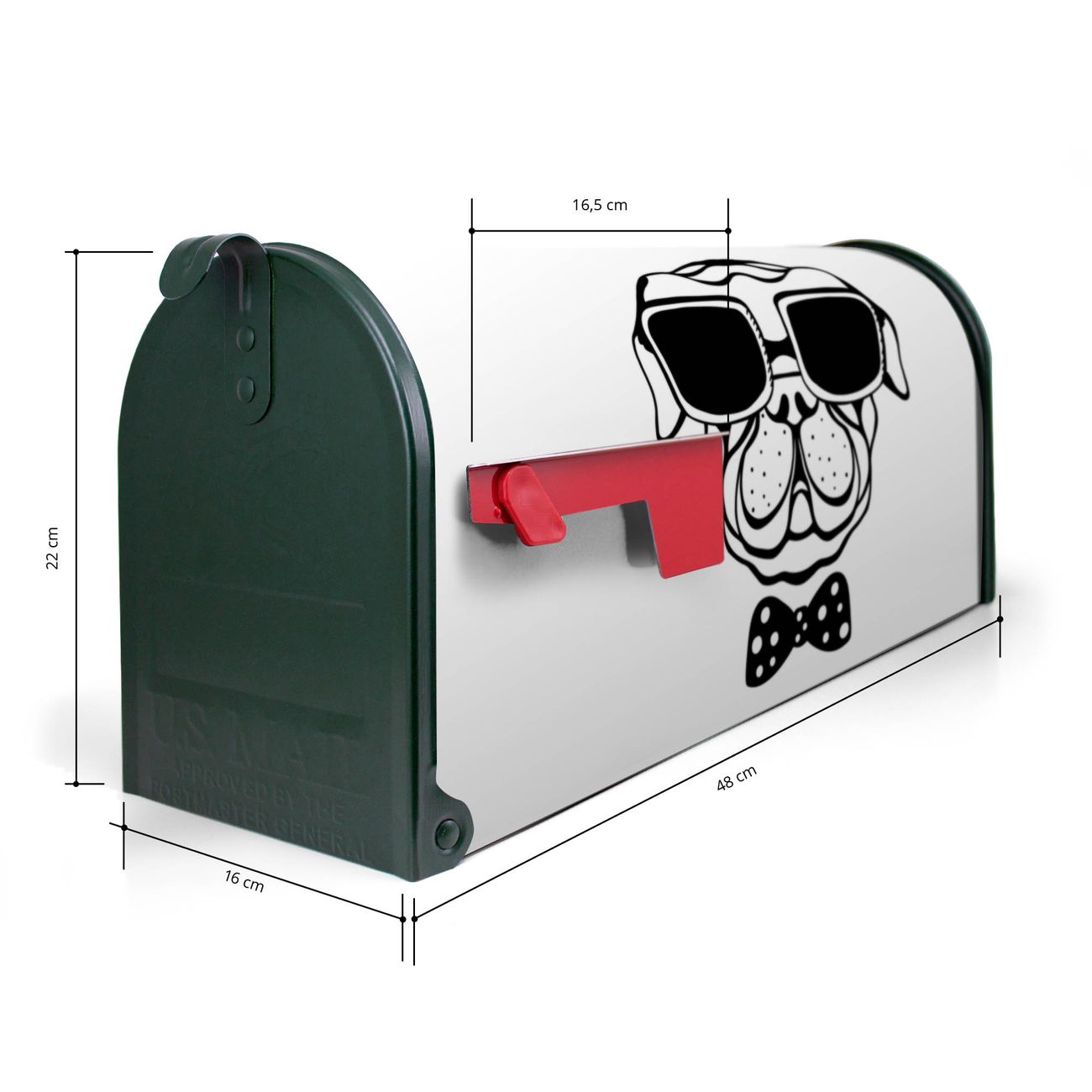 Der amerikanische Briefkasten von banjado mit Big Boss Motiv bietet Ihnen ausreichend Fassungsvermögen, um große A4 Sendungen und Zeitschriften zu empfangen. Die typisch amerikanische rote Fahne zeigt Ihnen an, wenn Sie Post erhalten haben. Die US-Mailbox besteht aus verzinktem Stahlblech welches lackiert wurde und ist 48 x 22 x 16 CM (BxHxT) groß. Die Folie mit Motiv Big Boss besteht aus einer wetter- und UV-resistenten Folie, die mit einem Schutzlaminat überzogen ist, sodass die US Mailbox zusätzlich vor Kratzern geschützt ist. An der Unterkante sind 4 Löcher je Seite um die Mailbox, typisch amerikanisch, an einem Holzpfahl oder einem Zaun zu befestigen. Auf Wunsch können Sie bei uns den passenden Standfuß oder die passende Wandhalterung kaufen um die US-Mailbox sicher zu befestigen. Wir bieten Ihnen ebenfalls Namensschilder, bereits beschriftet oder frei zu beschriften, und verschiedene selbst gestaltete Bitte-Keine-Werbung-Aufkleber.