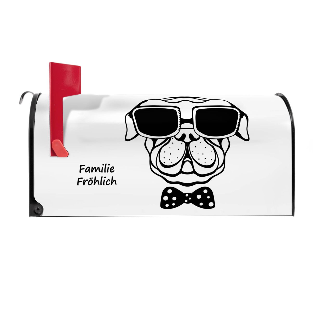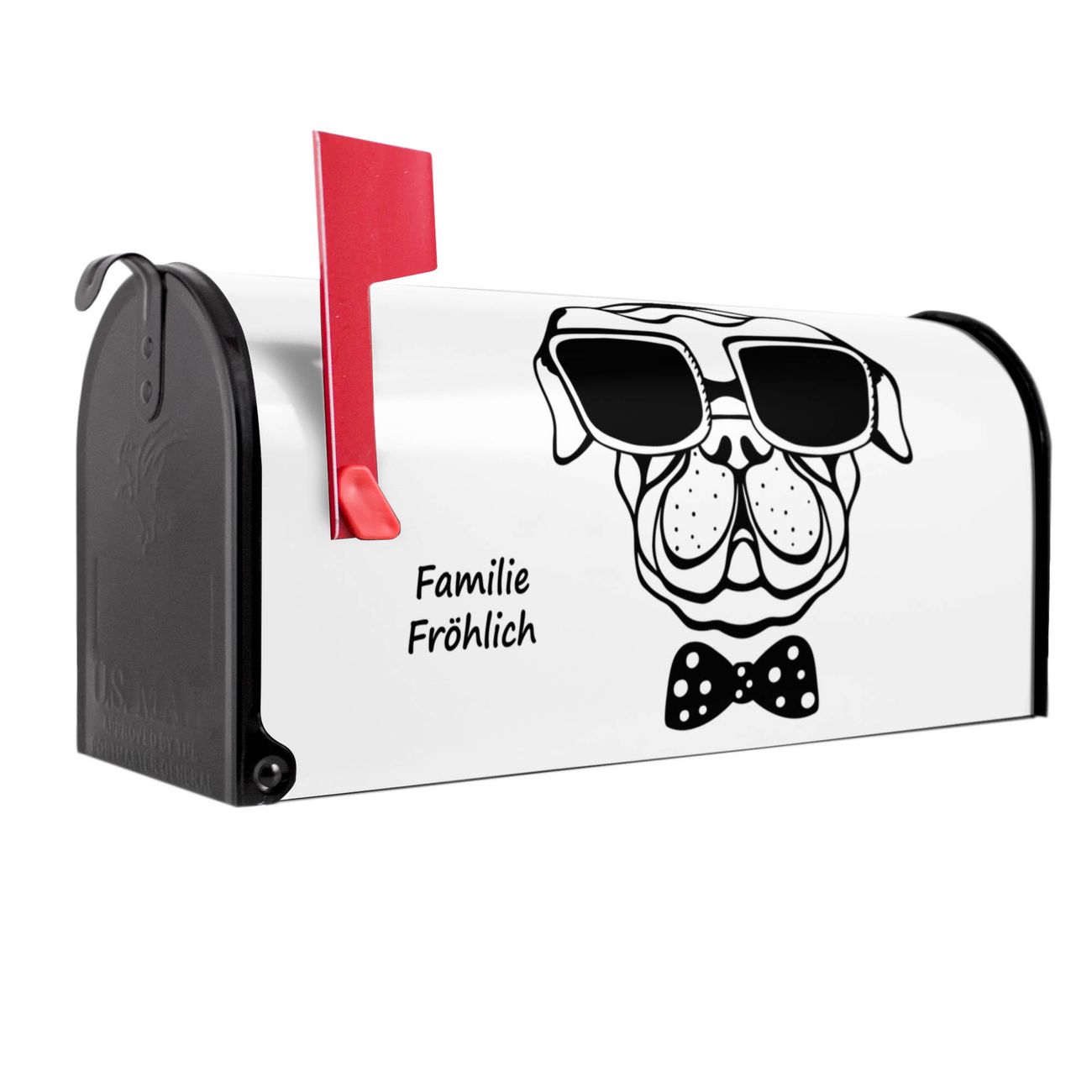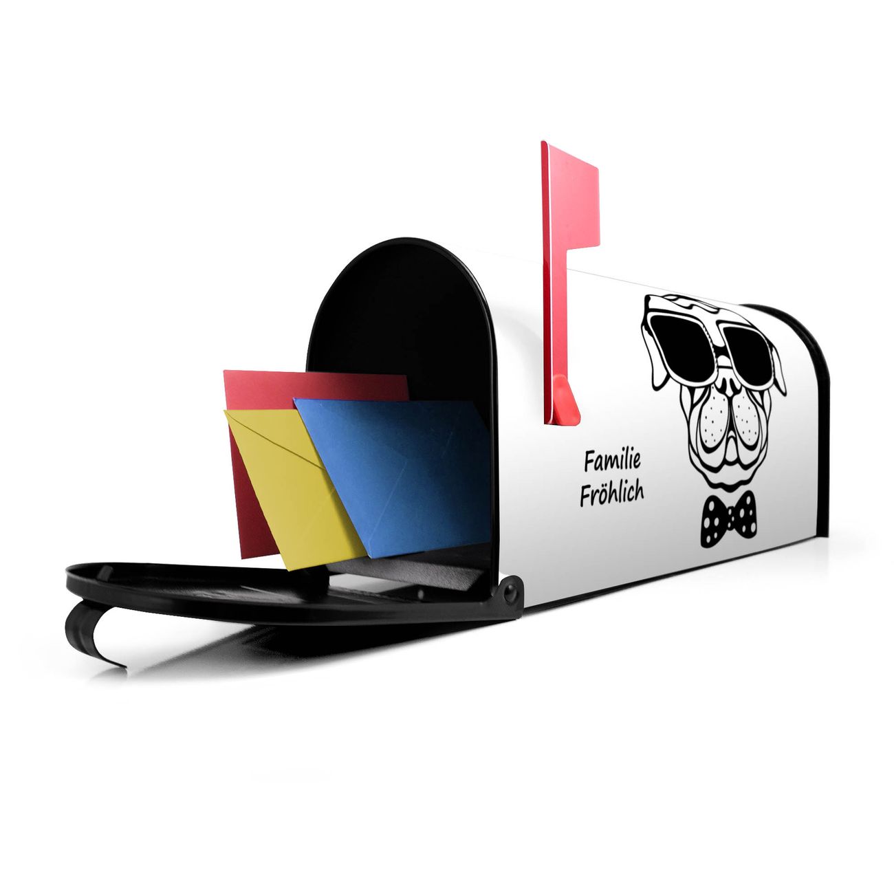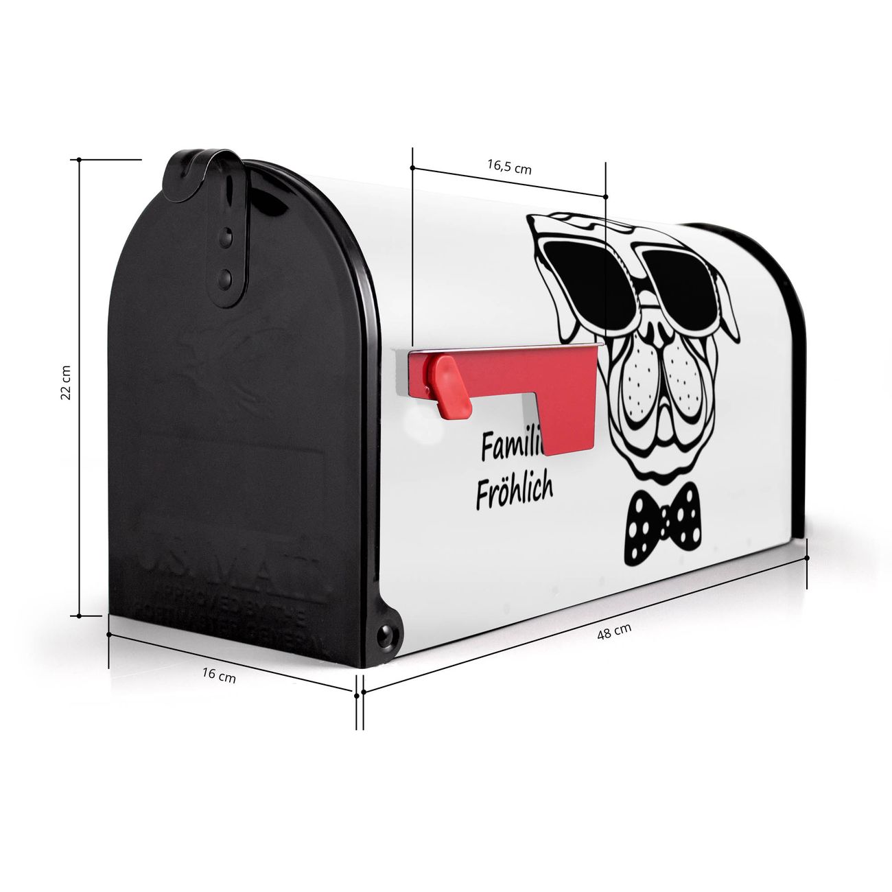 Der amerikanische Briefkasten von banjado mit Big Boss Motiv bietet Ihnen ausreichend Fassungsvermögen, um große A4 Sendungen und Zeitschriften zu empfangen. Die typisch amerikanische rote Fahne zeigt Ihnen an, wenn Sie Post erhalten haben. Die US-Mailbox besteht aus verzinktem Stahlblech welches lackiert wurde und ist 48 x 22 x 16 CM (BxHxT) groß. Die Folie mit Motiv Big Boss besteht aus einer wetter- und UV-resistenten Folie, die mit einem Schutzlaminat überzogen ist, sodass die US Mailbox zusätzlich vor Kratzern geschützt ist. An der Unterkante sind 4 Löcher je Seite um die Mailbox, typisch amerikanisch, an einem Holzpfahl oder einem Zaun zu befestigen. Auf Wunsch können Sie bei uns den passenden Standfuß oder die passende Wandhalterung kaufen um die US-Mailbox sicher zu befestigen. Wir bieten Ihnen ebenfalls Namensschilder, bereits beschriftet oder frei zu beschriften, und verschiedene selbst gestaltete Bitte-Keine-Werbung-Aufkleber.
