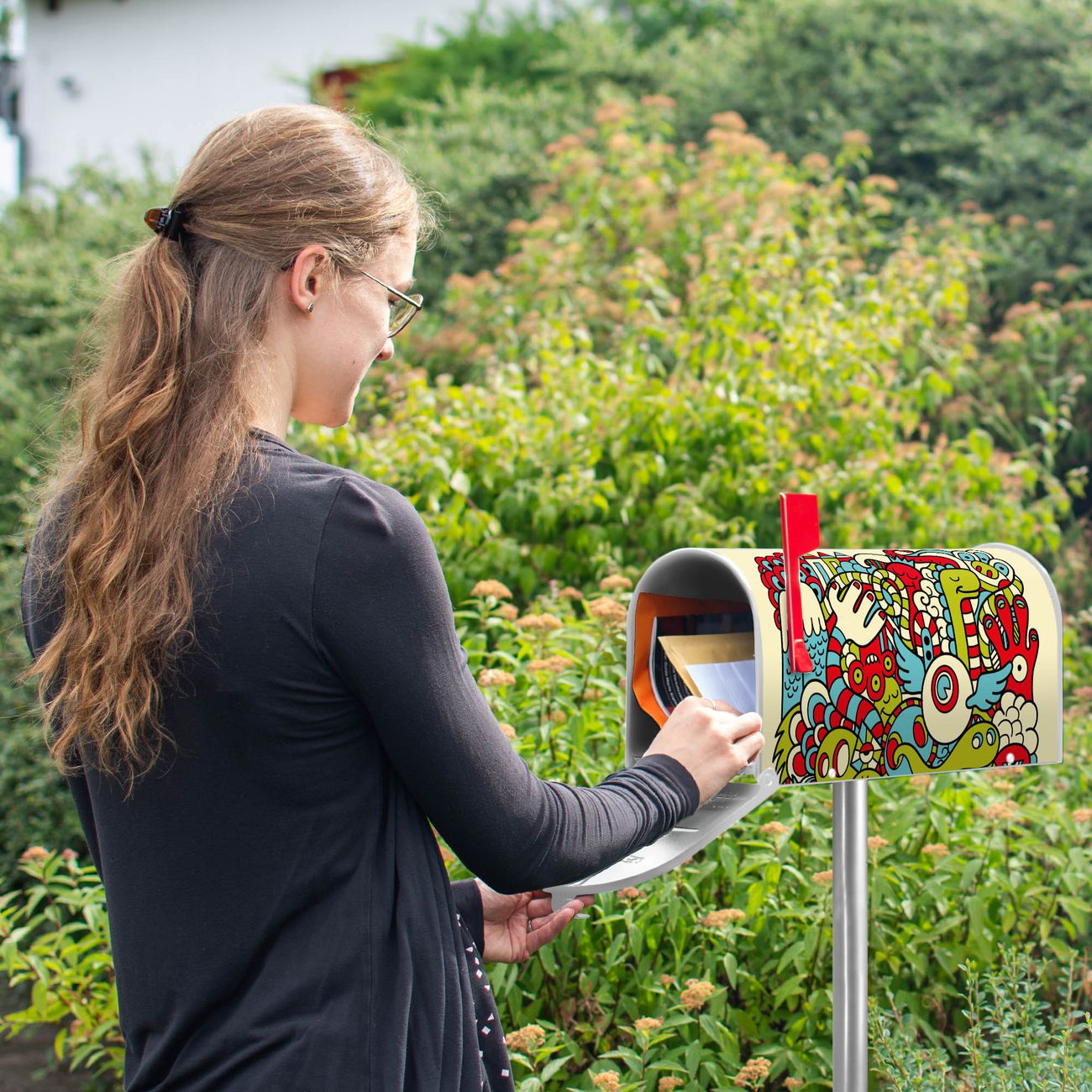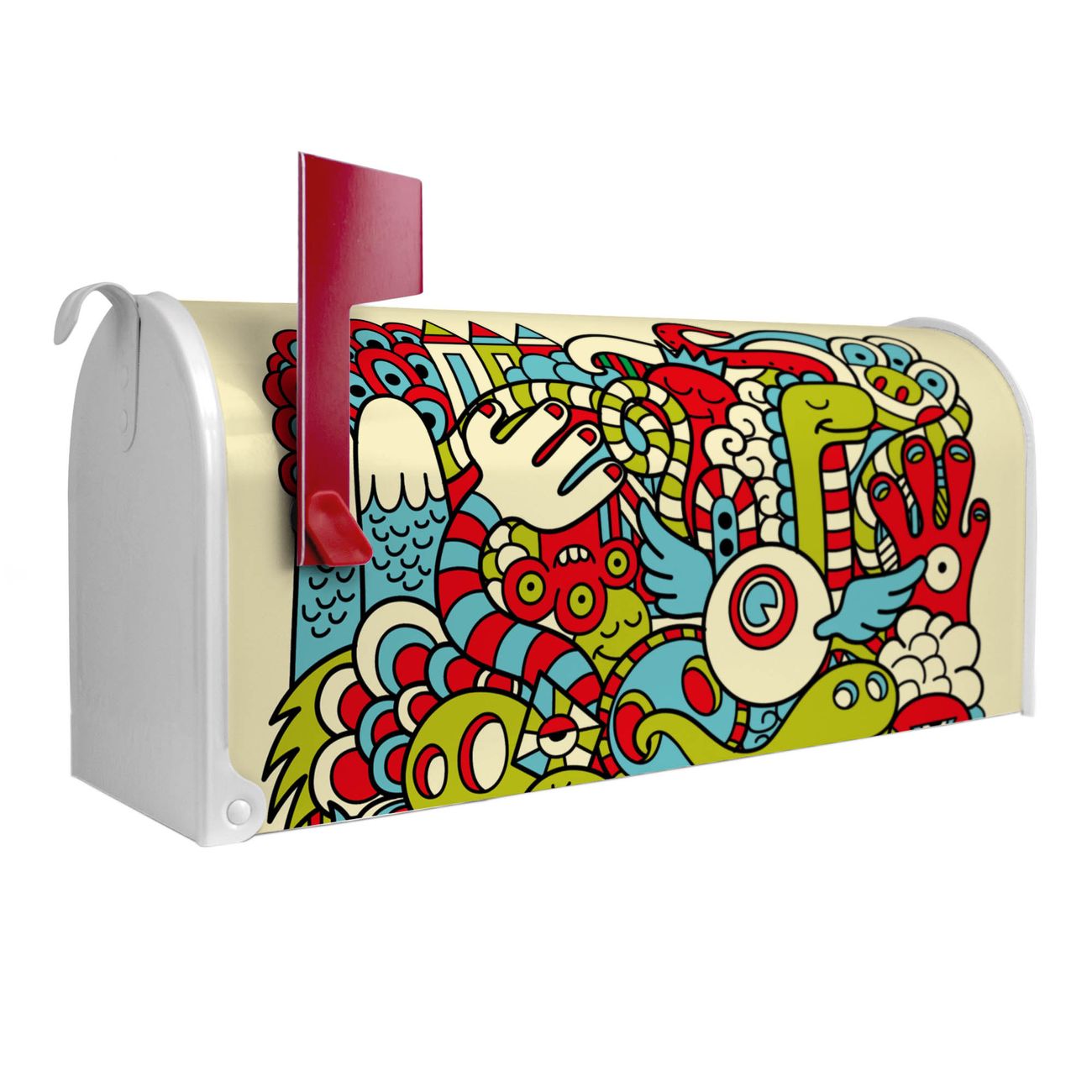Unser amerikanischer Briefkasten mit dem Motiv Birds Worms Freaks hat ein sehr ansprechendes und ausgefallenes Design, ist in der Grundfarbe weiß, grün oder schwarz erhältlich. Damit entlocken Sie Ihren Nachbarn und dem Postboten immer wieder ein Lächeln. Die Mailbox ist ein Original Import aus Mississippi USA und wird von unserer kleinen Manufaktur in Sachsen von Hand veredelt. Die US-Mailbox bietet ausreichend Platz auch für große Sendungen, eine Fahne die Ihnen Post anzeigt, wetterfestes und äußerst stabiles Material - so macht Post empfangen Freude.