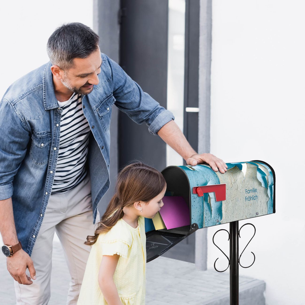 Unser amerikanischer Briefkasten mit dem Motiv Blätternde Farbe hat ein sehr ansprechendes und ausgefallenes Design, ist in der Grundfarbe weiß, grün oder schwarz erhältlich. Damit entlocken Sie Ihren Nachbarn und dem Postboten immer wieder ein Lächeln. Die Mailbox ist ein Original Import aus Mississippi USA und wird von unserer kleinen Manufaktur in Sachsen von Hand veredelt. Die US-Mailbox bietet ausreichend Platz auch für große Sendungen, eine Fahne die Ihnen Post anzeigt, wetterfestes und äußerst stabiles Material - so macht Post empfangen Freude.