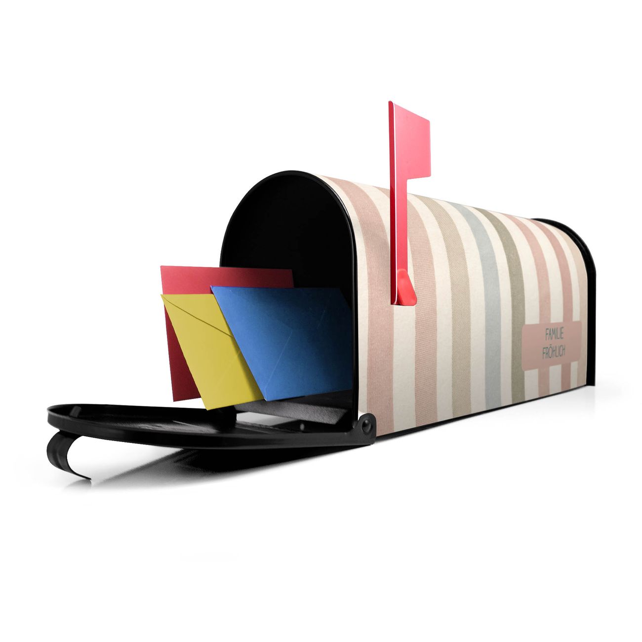 Unser amerikanischer Briefkasten mit dem Motiv Blasse Streifen hat ein sehr ansprechendes und ausgefallenes Design, ist in der Grundfarbe weiß, grün oder schwarz erhältlich. Damit entlocken Sie Ihren Nachbarn und dem Postboten immer wieder ein Lächeln. Die Mailbox ist ein Original Import aus Mississippi USA und wird von unserer kleinen Manufaktur in Sachsen von Hand veredelt. Die US-Mailbox bietet ausreichend Platz auch für große Sendungen, eine Fahne die Ihnen Post anzeigt, wetterfestes und äußerst stabiles Material - so macht Post empfangen Freude.