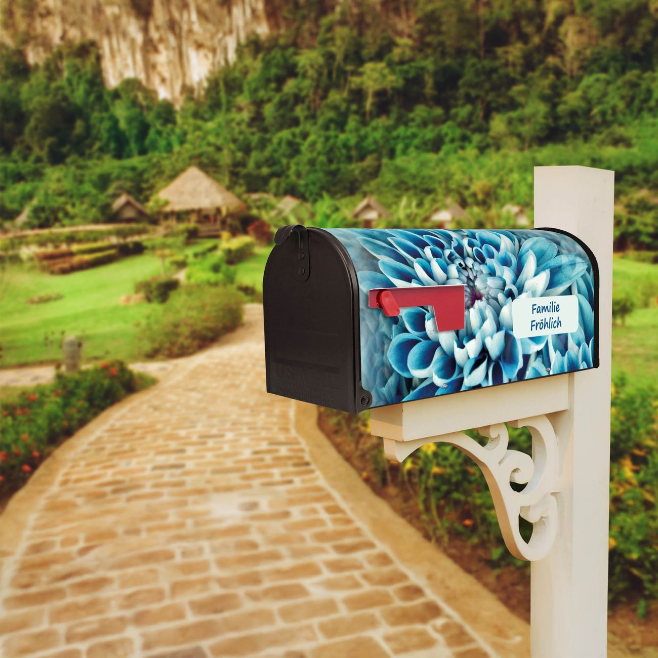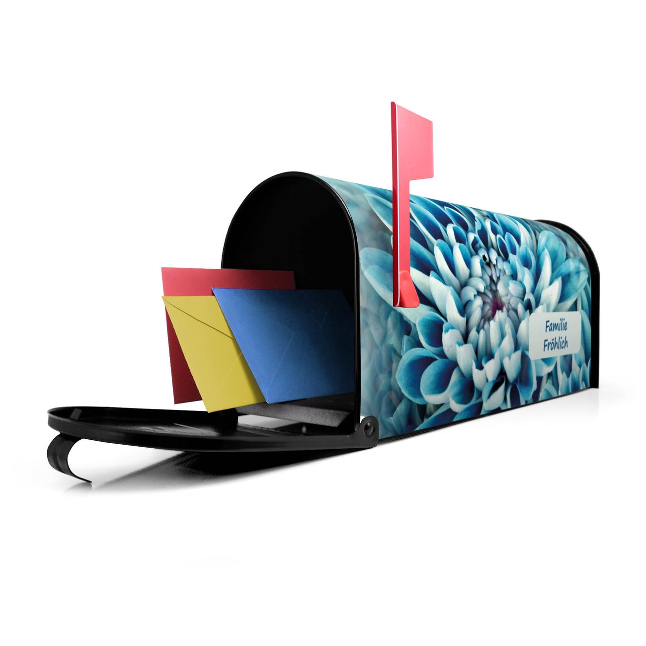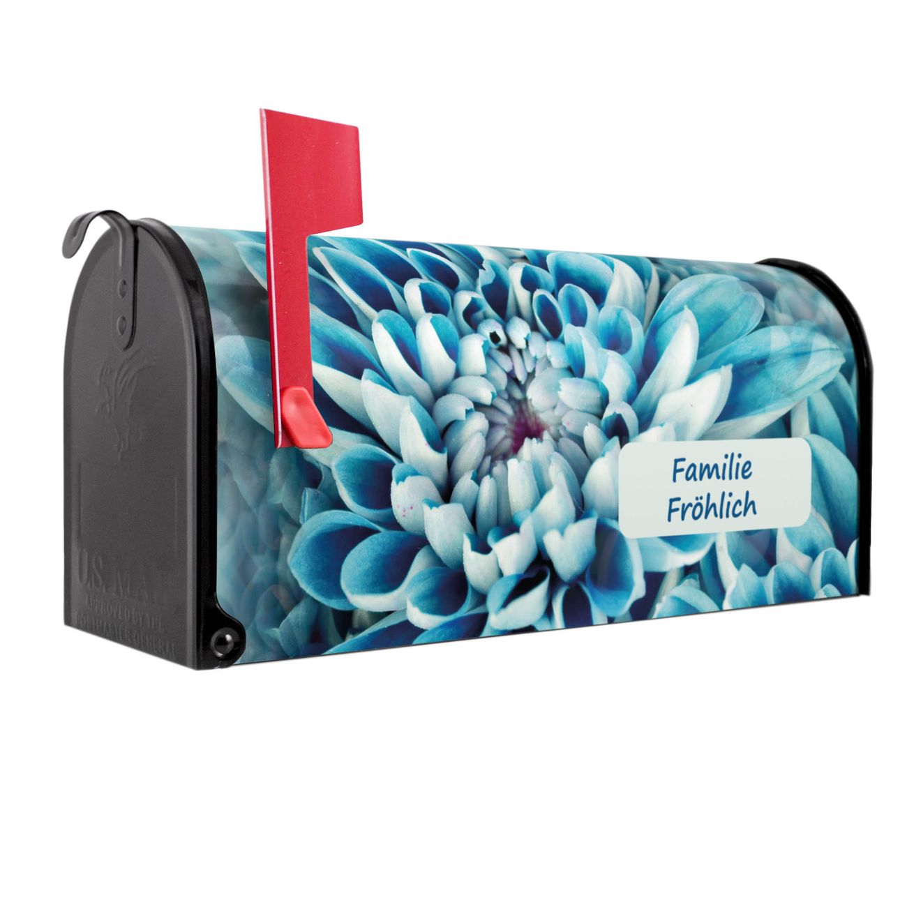 Unser amerikanischer Briefkasten mit dem Motiv Blaue Blüten hat ein sehr ansprechendes und ausgefallenes Design, ist in der Grundfarbe weiß, grün oder schwarz erhältlich. Damit entlocken Sie Ihren Nachbarn und dem Postboten immer wieder ein Lächeln. Die Mailbox ist ein Original Import aus Mississippi USA und wird von unserer kleinen Manufaktur in Sachsen von Hand veredelt. Die US-Mailbox bietet ausreichend Platz auch für große Sendungen, eine Fahne die Ihnen Post anzeigt, wetterfestes und äußerst stabiles Material - so macht Post empfangen Freude.