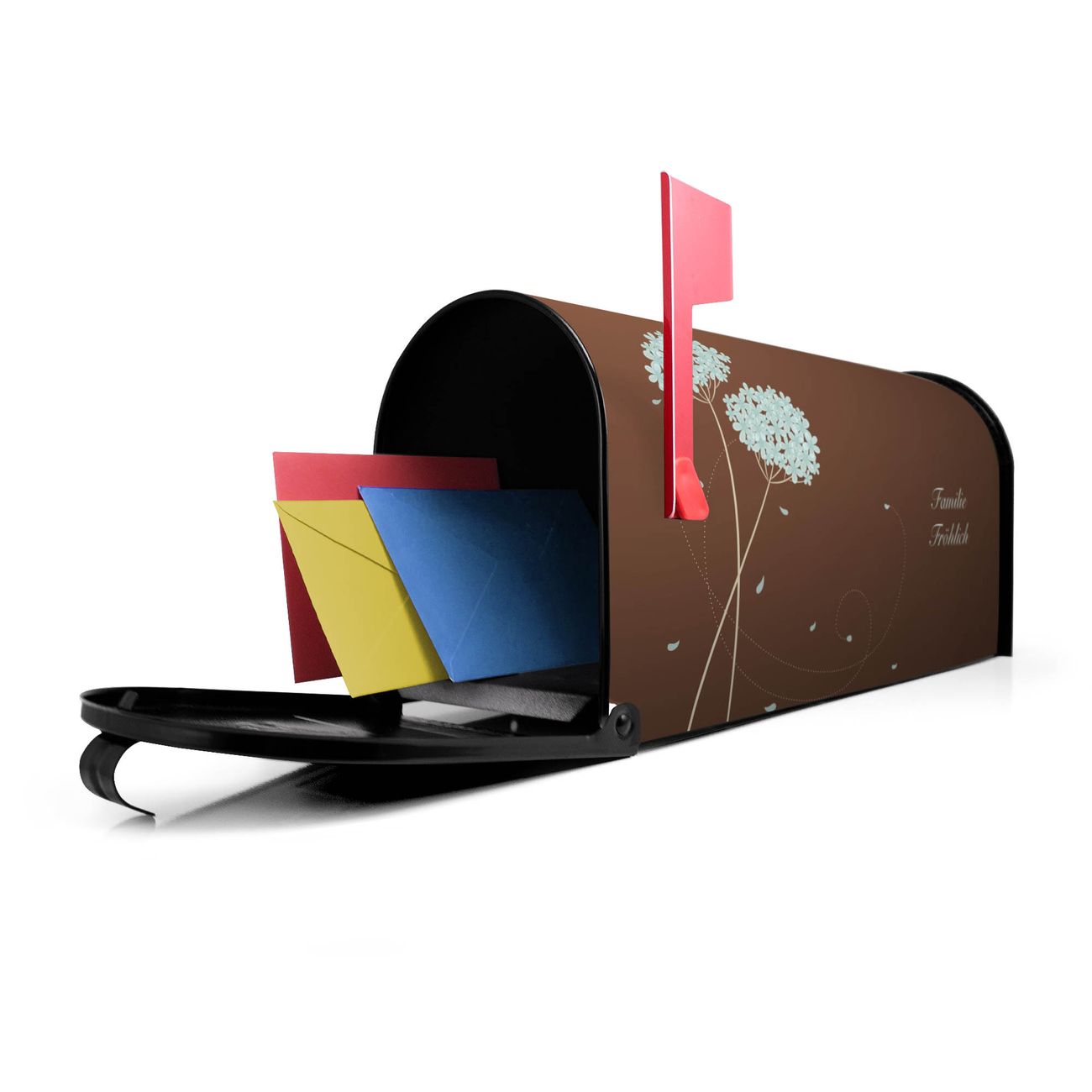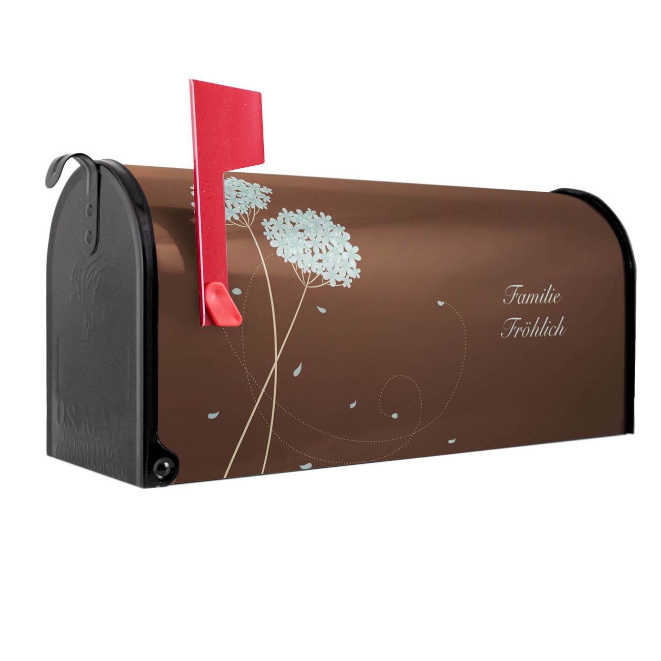 Unser amerikanischer Briefkasten mit dem Motiv WT Blaue Hortensie hat ein sehr ansprechendes und ausgefallenes Design, ist in der Grundfarbe weiß, grün oder schwarz erhältlich. Damit entlocken Sie Ihren Nachbarn und dem Postboten immer wieder ein Lächeln. Die Mailbox ist ein Original Import aus Mississippi USA und wird von unserer kleinen Manufaktur in Sachsen von Hand veredelt. Die US-Mailbox bietet ausreichend Platz auch für große Sendungen, eine Fahne die Ihnen Post anzeigt, wetterfestes und äußerst stabiles Material - so macht Post empfangen Freude.