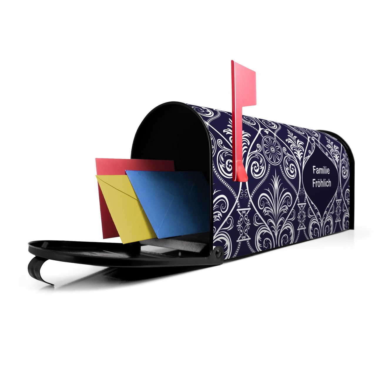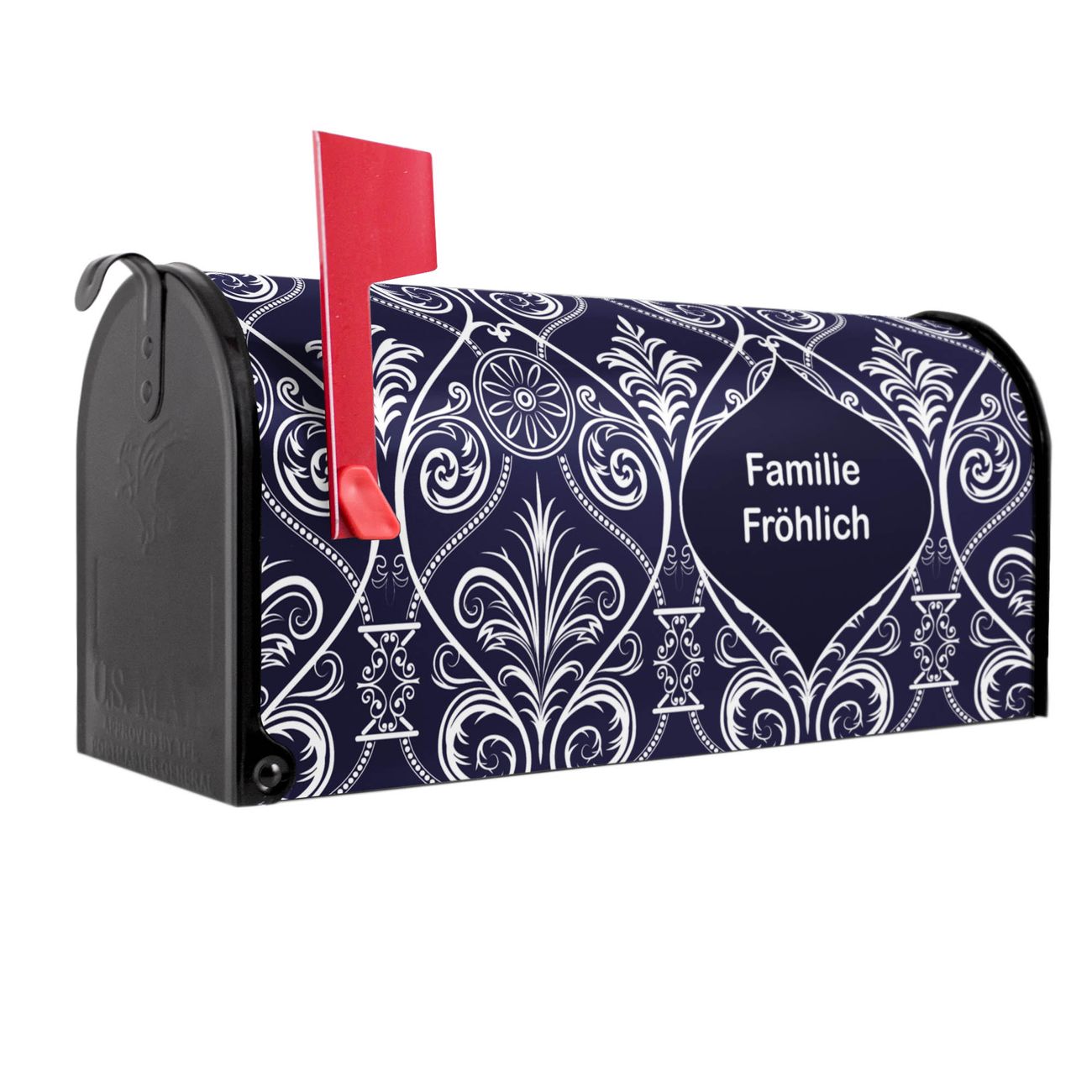 Unser amerikanischer Briefkasten mit dem Motiv Blaue Tapete hat ein sehr ansprechendes und ausgefallenes Design, ist in der Grundfarbe weiß, grün oder schwarz erhältlich. Damit entlocken Sie Ihren Nachbarn und dem Postboten immer wieder ein Lächeln. Die Mailbox ist ein Original Import aus Mississippi USA und wird von unserer kleinen Manufaktur in Sachsen von Hand veredelt. Die US-Mailbox bietet ausreichend Platz auch für große Sendungen, eine Fahne die Ihnen Post anzeigt, wetterfestes und äußerst stabiles Material - so macht Post empfangen Freude.