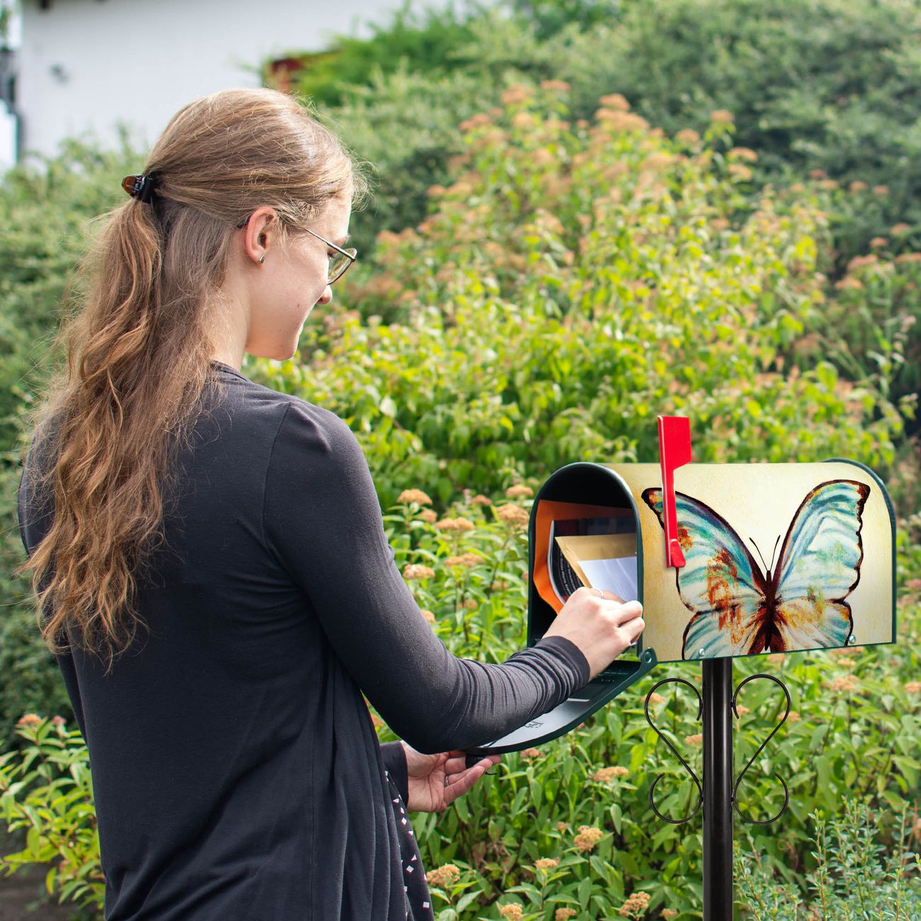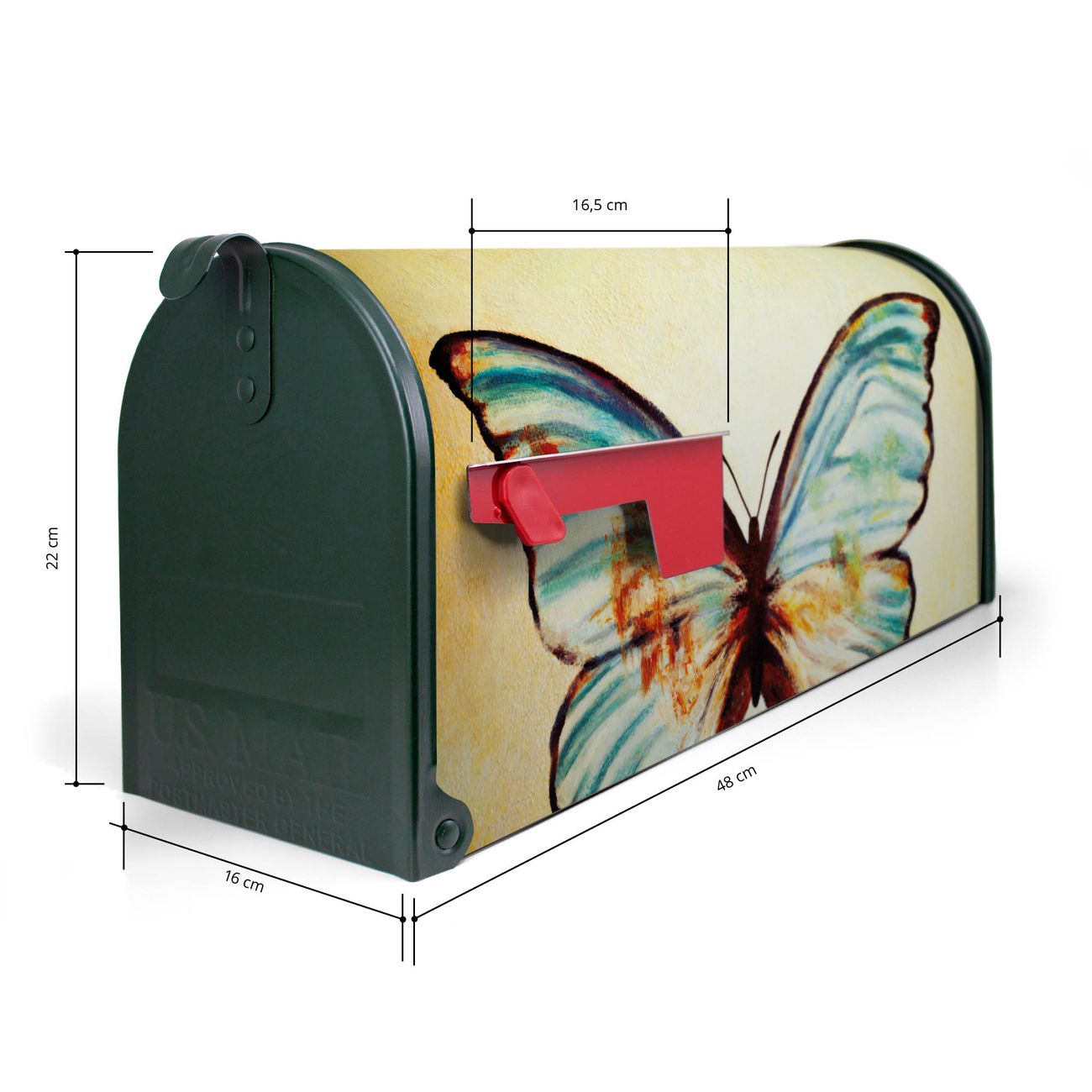 Unser amerikanischer Briefkasten mit dem Motiv Blauer Falter hat ein sehr ansprechendes und ausgefallenes Design, ist in der Grundfarbe weiß, grün oder schwarz erhältlich. Damit entlocken Sie Ihren Nachbarn und dem Postboten immer wieder ein Lächeln. Die Mailbox ist ein Original Import aus Mississippi USA und wird von unserer kleinen Manufaktur in Sachsen von Hand veredelt. Die US-Mailbox bietet ausreichend Platz auch für große Sendungen, eine Fahne die Ihnen Post anzeigt, wetterfestes und äußerst stabiles Material - so macht Post empfangen Freude.