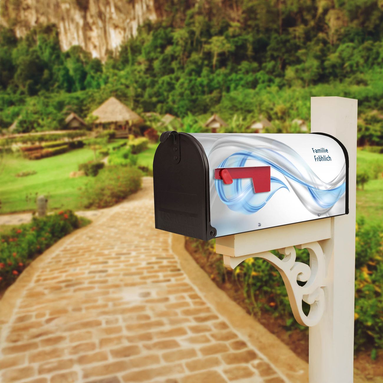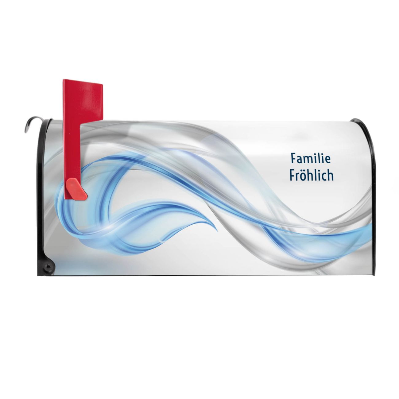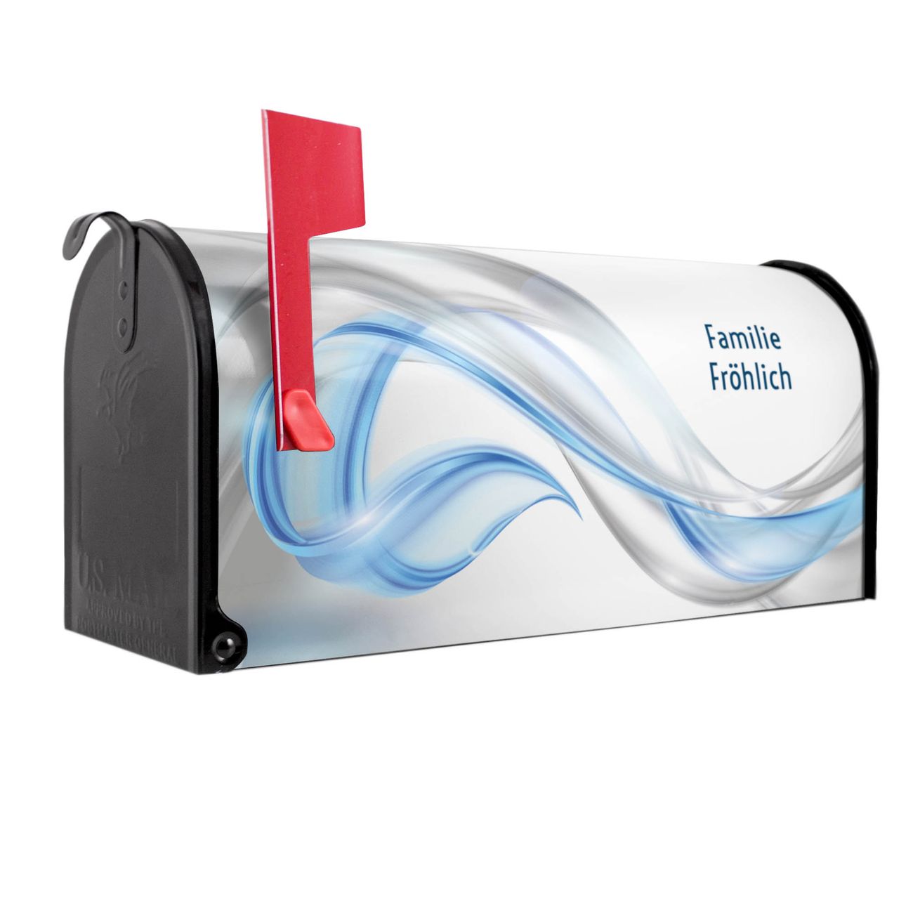 Der amerikanische Briefkasten von banjado mit Blauer Schleier Motiv bietet Ihnen ausreichend Fassungsvermögen, um große A4 Sendungen und Zeitschriften zu empfangen. Die typisch amerikanische rote Fahne zeigt Ihnen an, wenn Sie Post erhalten haben. Die US-Mailbox besteht aus verzinktem Stahlblech welches lackiert wurde und ist 48 x 22 x 16 CM (BxHxT) groß. Die Folie mit Motiv Blauer Schleier besteht aus einer wetter- und UV-resistenten Folie, die mit einem Schutzlaminat überzogen ist, sodass die US Mailbox zusätzlich vor Kratzern geschützt ist. An der Unterkante sind 4 Löcher je Seite um die Mailbox, typisch amerikanisch, an einem Holzpfahl oder einem Zaun zu befestigen. Auf Wunsch können Sie bei uns den passenden Standfuß oder die passende Wandhalterung kaufen um die US-Mailbox sicher zu befestigen. Wir bieten Ihnen ebenfalls Namensschilder, bereits beschriftet oder frei zu beschriften, und verschiedene selbst gestaltete Bitte-Keine-Werbung-Aufkleber.