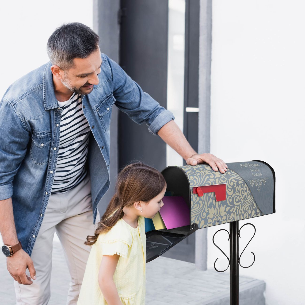 Unser amerikanischer Briefkasten mit dem Motiv Blaues Ornament hat ein sehr ansprechendes und ausgefallenes Design, ist in der Grundfarbe weiß, grün oder schwarz erhältlich. Damit entlocken Sie Ihren Nachbarn und dem Postboten immer wieder ein Lächeln. Die Mailbox ist ein Original Import aus Mississippi USA und wird von unserer kleinen Manufaktur in Sachsen von Hand veredelt. Die US-Mailbox bietet ausreichend Platz auch für große Sendungen, eine Fahne die Ihnen Post anzeigt, wetterfestes und äußerst stabiles Material - so macht Post empfangen Freude.