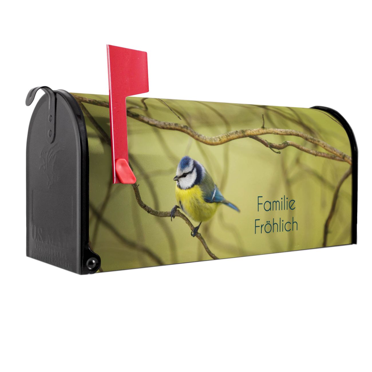 Unser amerikanischer Briefkasten mit dem Motiv Blaumeise im Baum hat ein sehr ansprechendes und ausgefallenes Design, ist in der Grundfarbe weiß, grün oder schwarz erhältlich. Damit entlocken Sie Ihren Nachbarn und dem Postboten immer wieder ein Lächeln. Die Mailbox ist ein Original Import aus Mississippi USA und wird von unserer kleinen Manufaktur in Sachsen von Hand veredelt. Die US-Mailbox bietet ausreichend Platz auch für große Sendungen, eine Fahne die Ihnen Post anzeigt, wetterfestes und äußerst stabiles Material - so macht Post empfangen Freude.